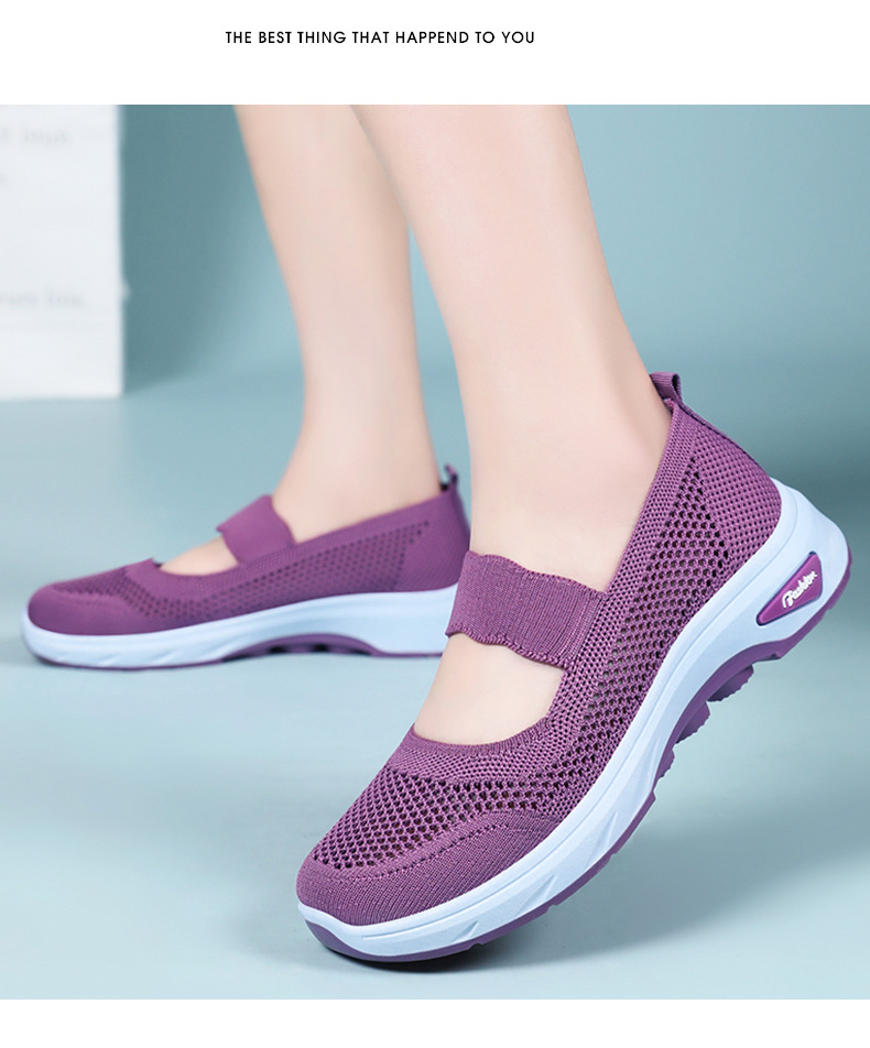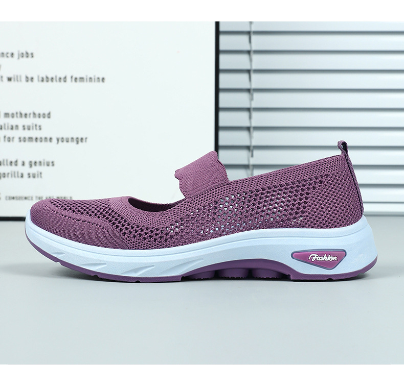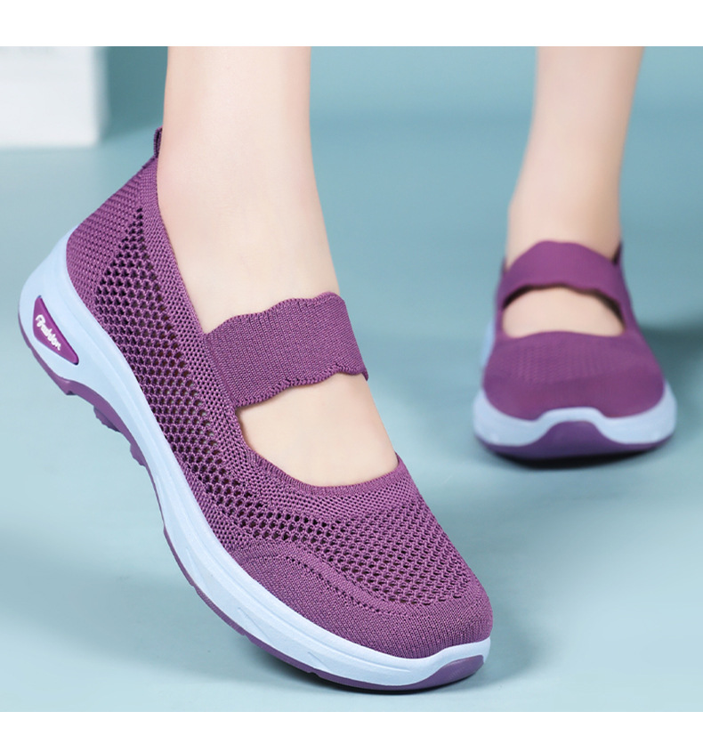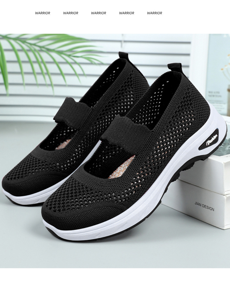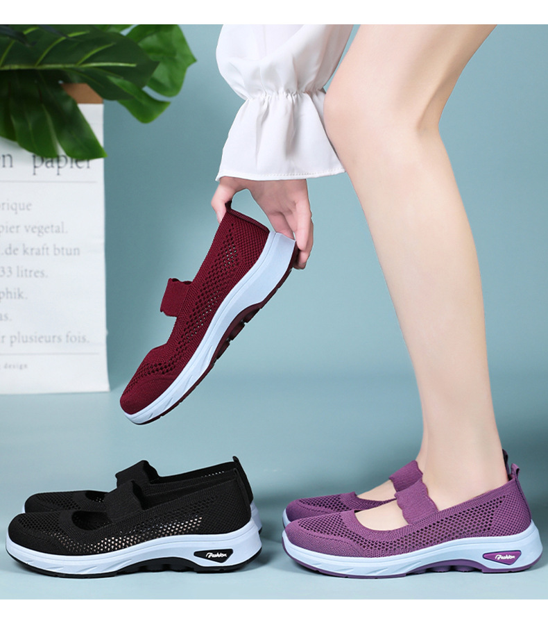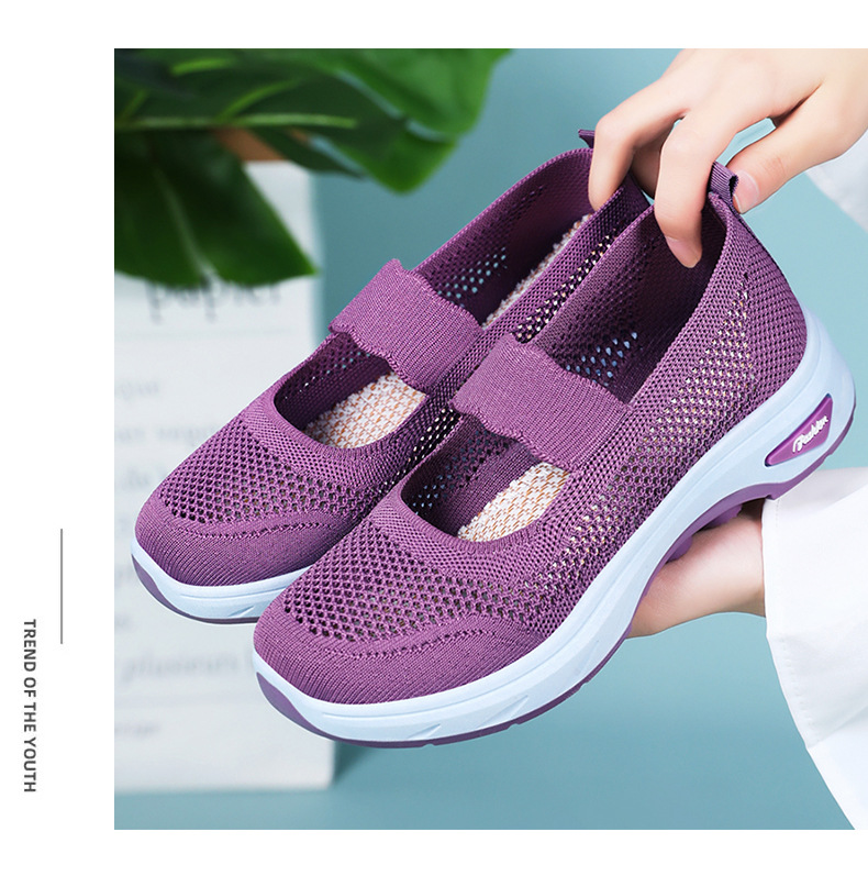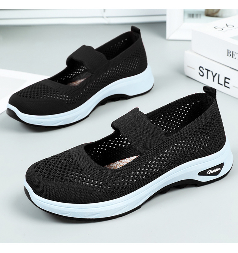 여성용 여름 신발, 얕은 입구 플라이 니트 신발, 통기성이 좋은 슬립온 플랫 슈즈, 중노년 어머니 신발, 올드 베이징 천 신발스토어 가기