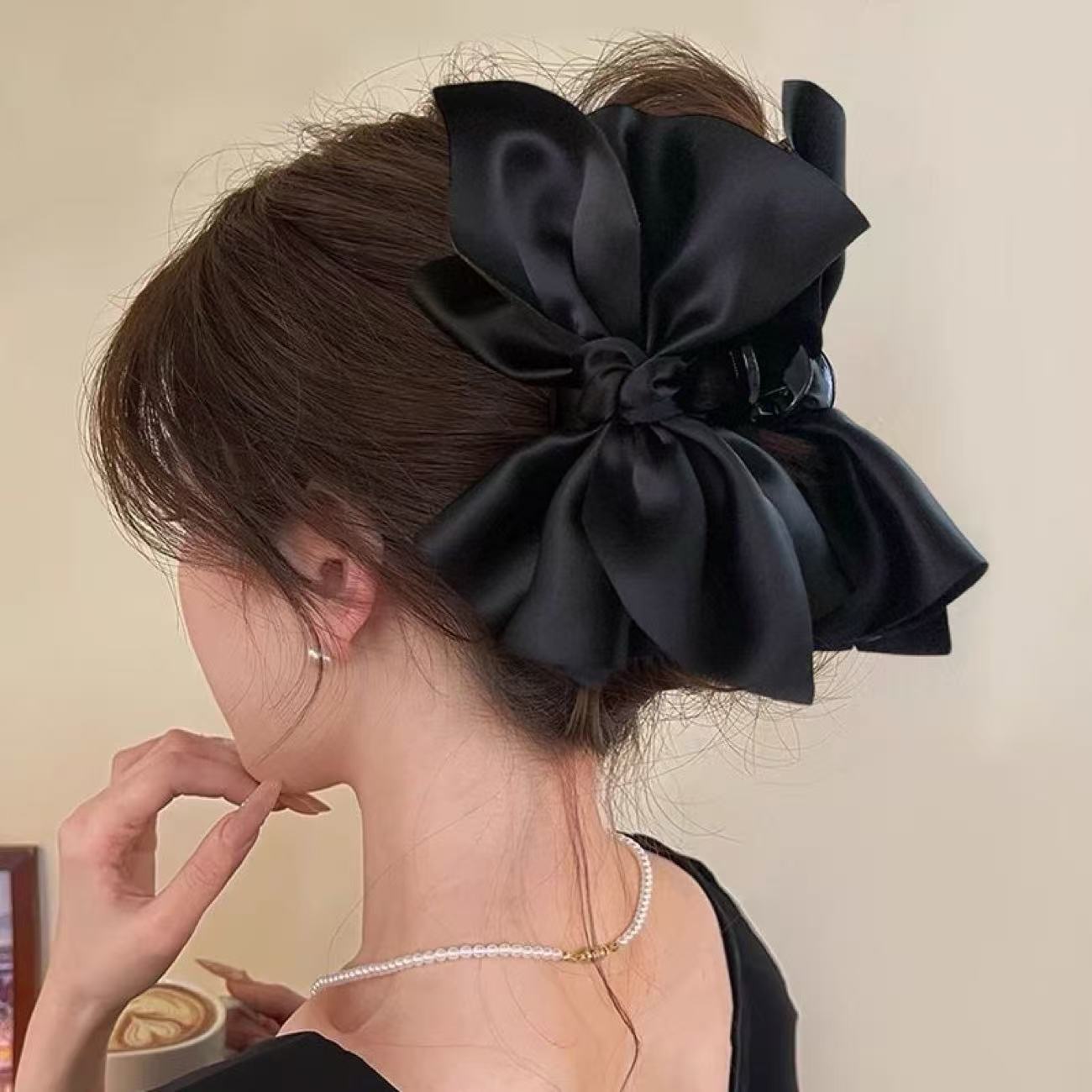 • 더블 보우 새틴 블랙