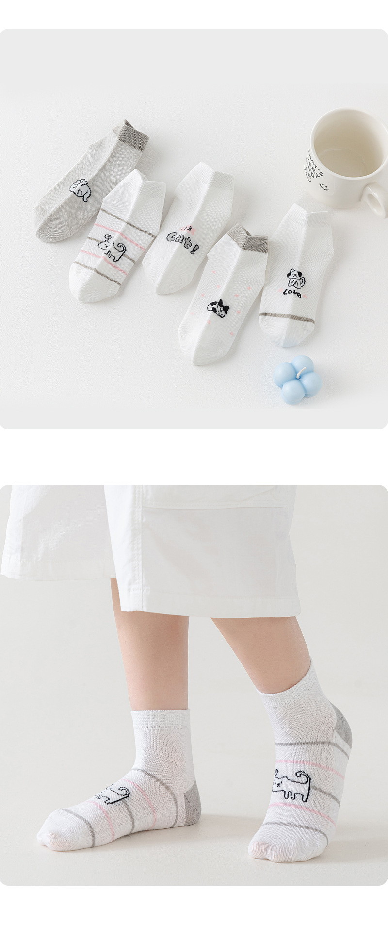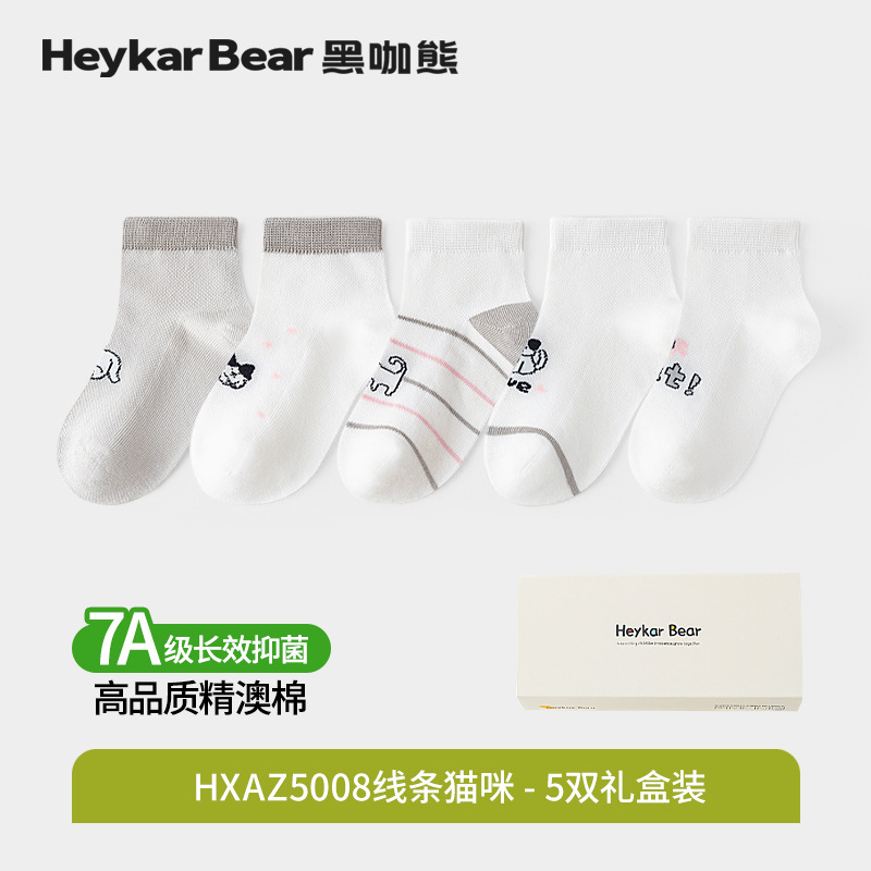 블랙 커피 베어 5 쌍 박스 7A 항균 어린이 양말 여름 뼈없는 학생 중 튜브 소년 소녀 스포츠 양말스토어 가기