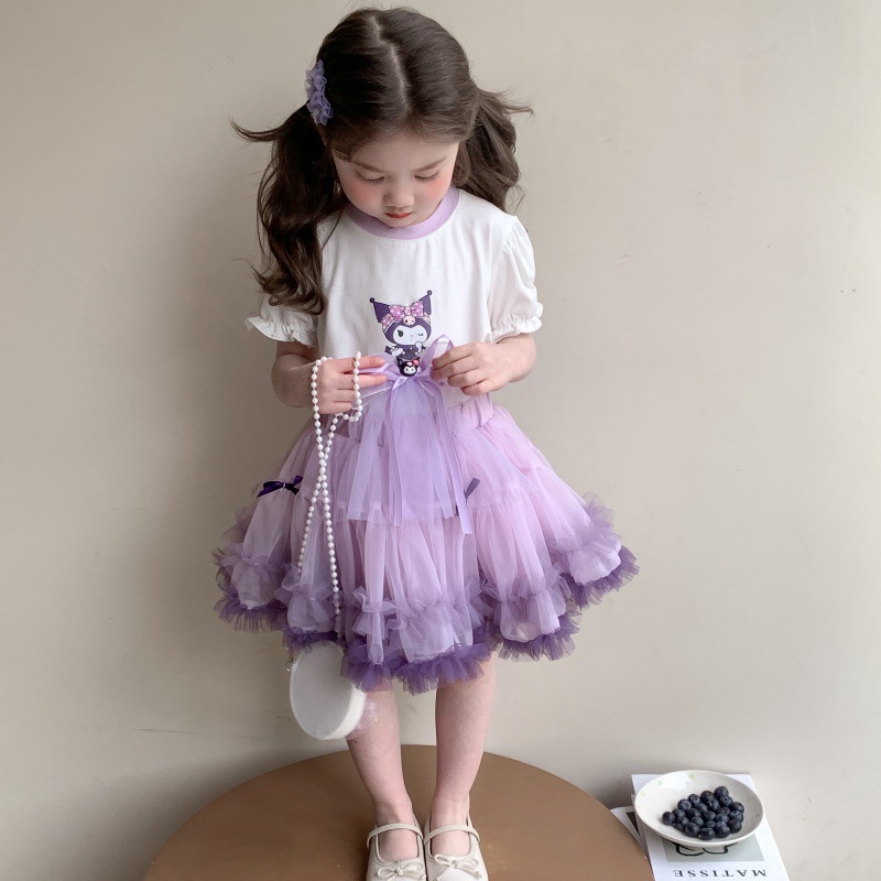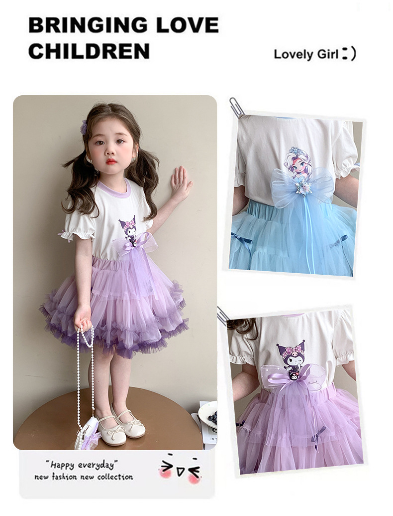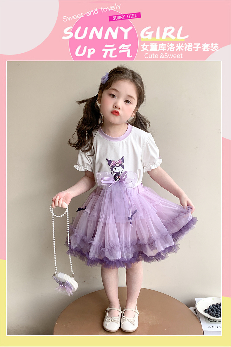 소녀 세트 여름 2025 새로운 스타일 어린이 쿠로미 티셔츠 투투 스커트 아기 스커트 투피스 세트