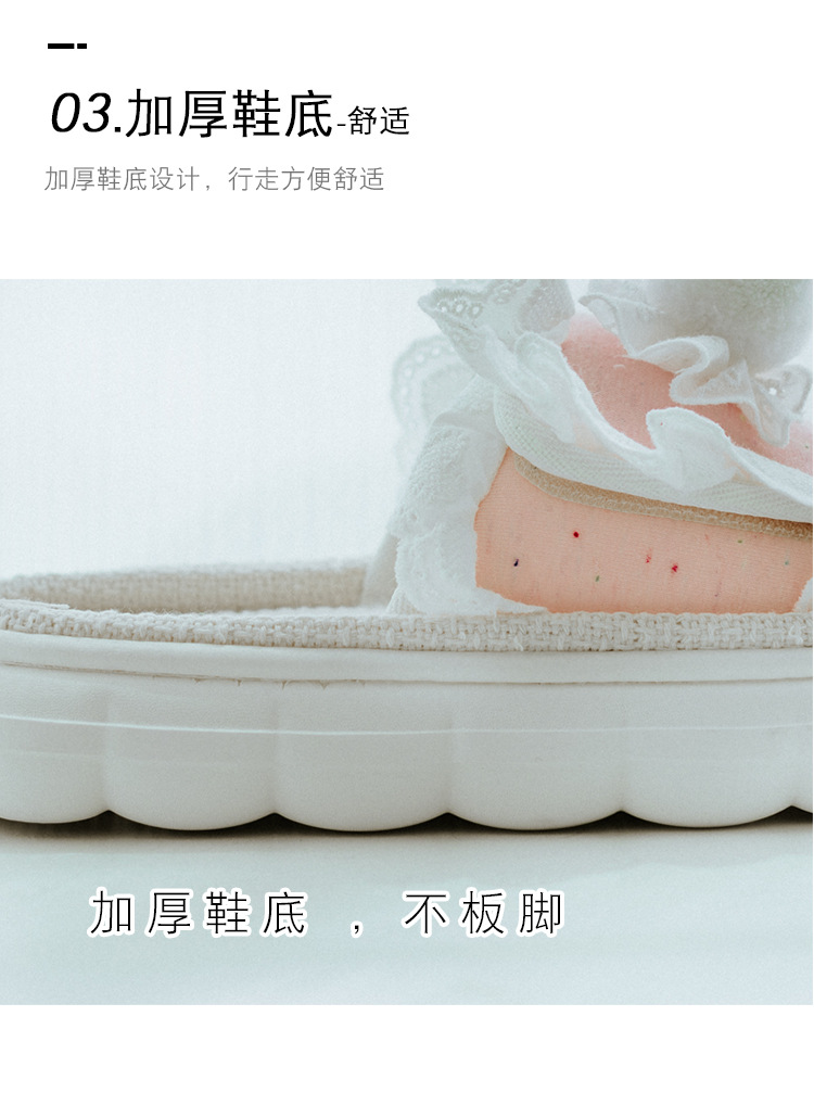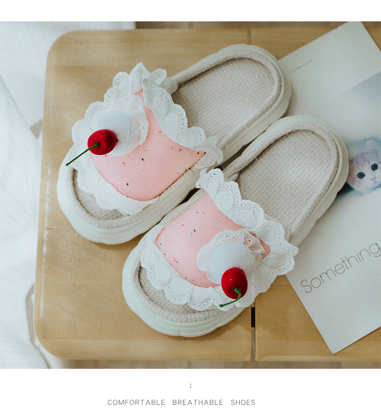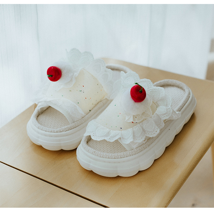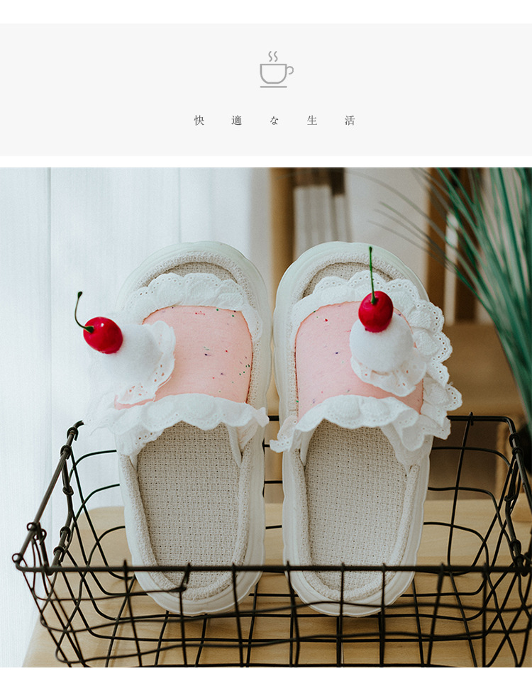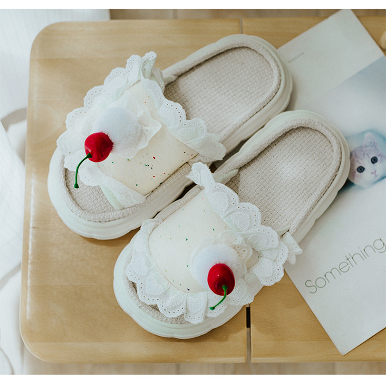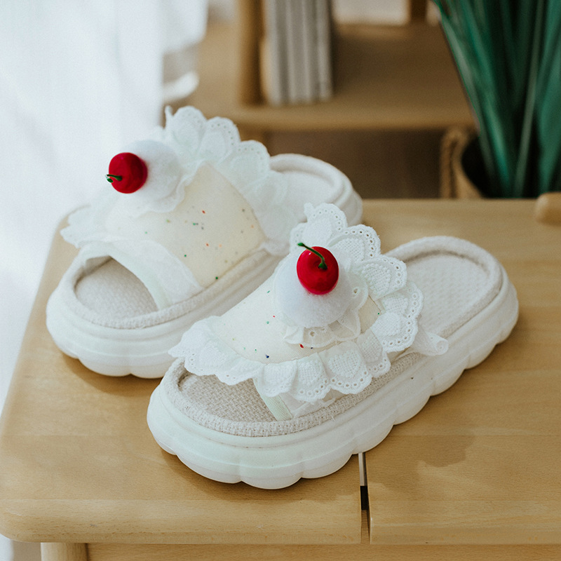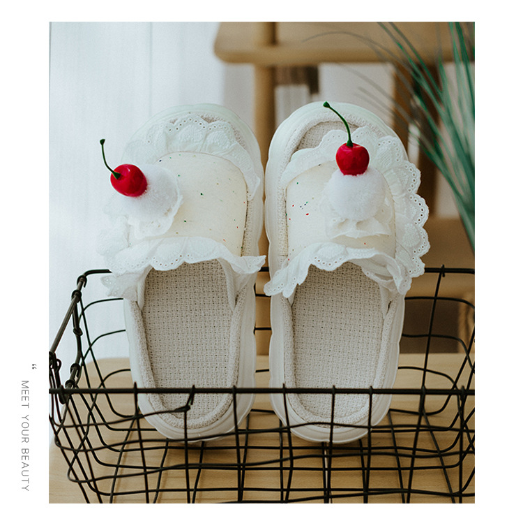 여성을위한 프랑스 소녀 하트 크림 레이스 리넨 슬리퍼 봄과 가을 사계절 실내 미끄럼 방지 부드러운 바닥 홈 신발 여름