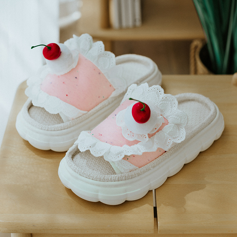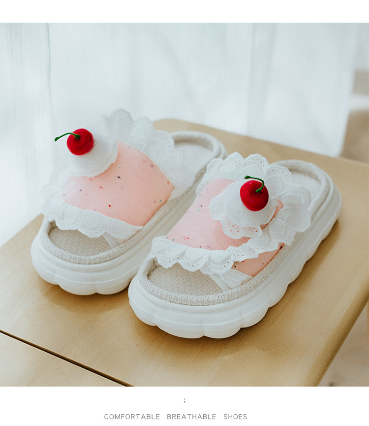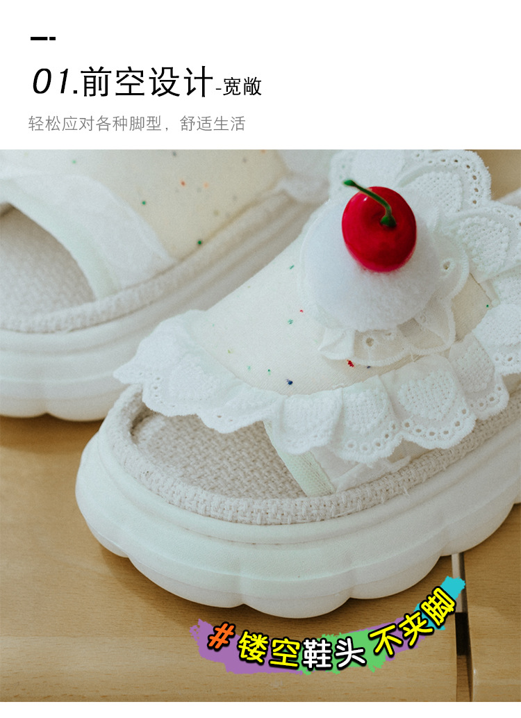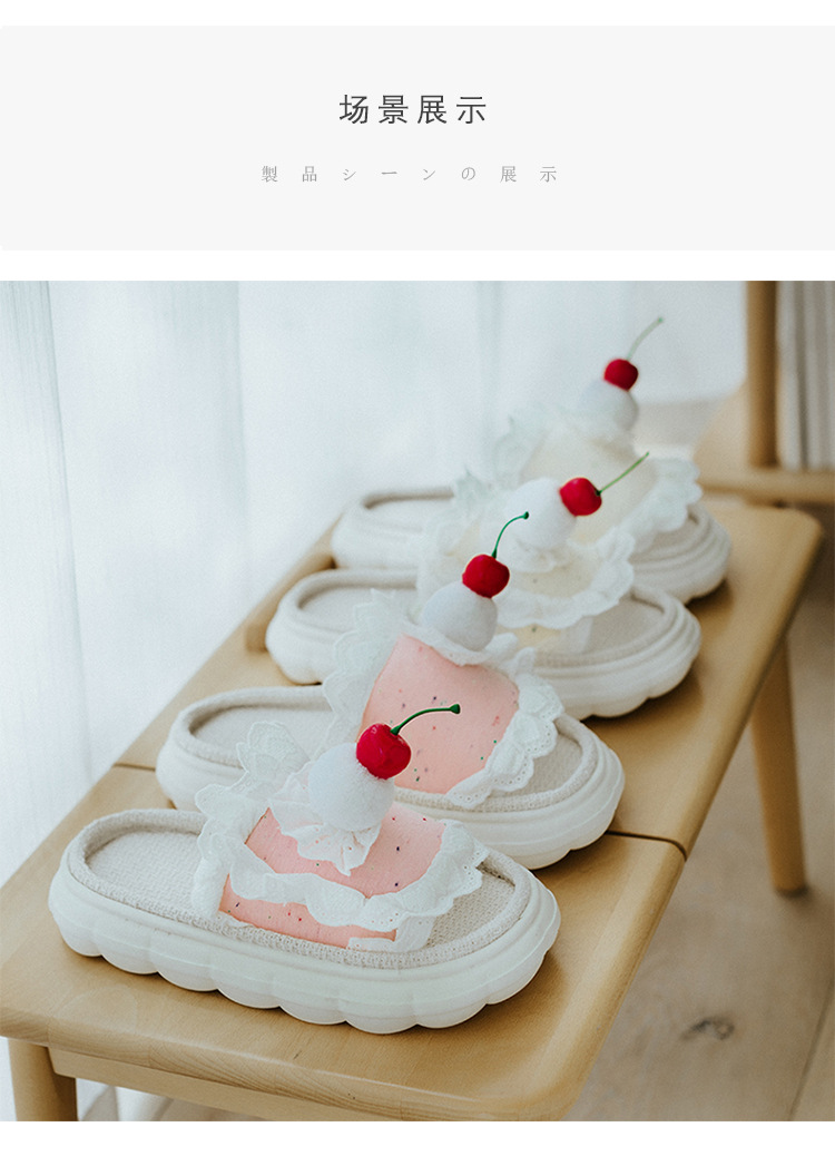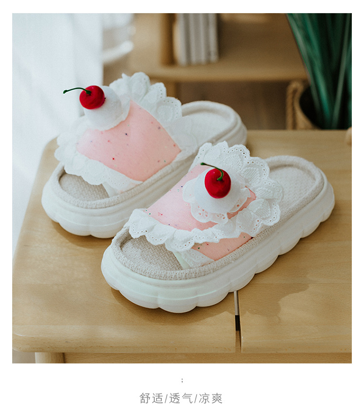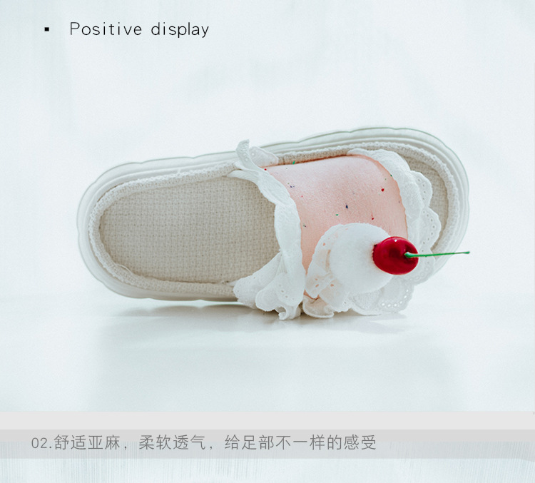 여성을위한 프랑스 소녀 하트 크림 레이스 리넨 슬리퍼 봄과 가을 사계절 실내 미끄럼 방지 부드러운 바닥 홈 신발 여름