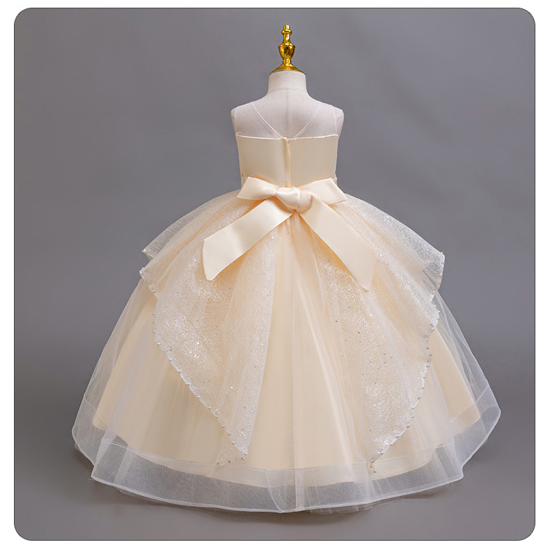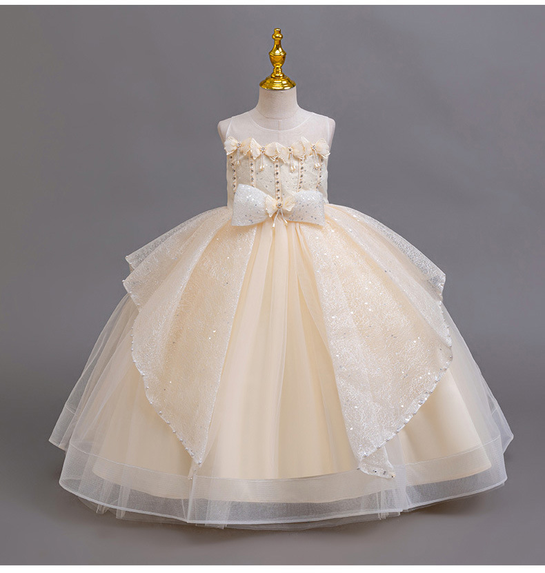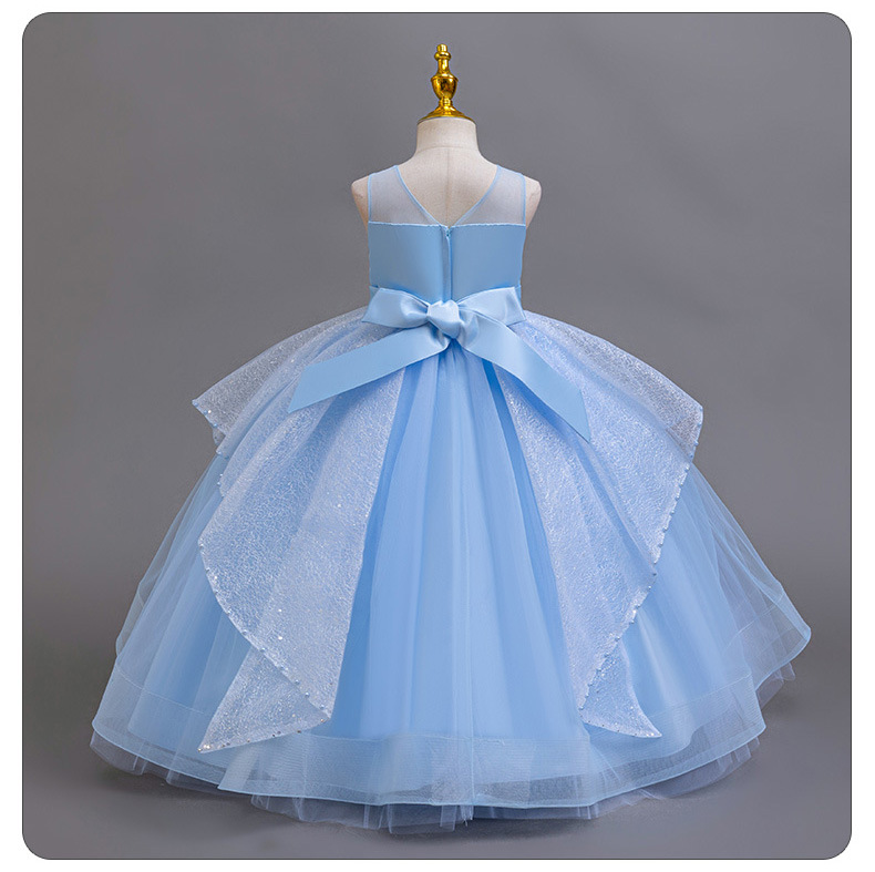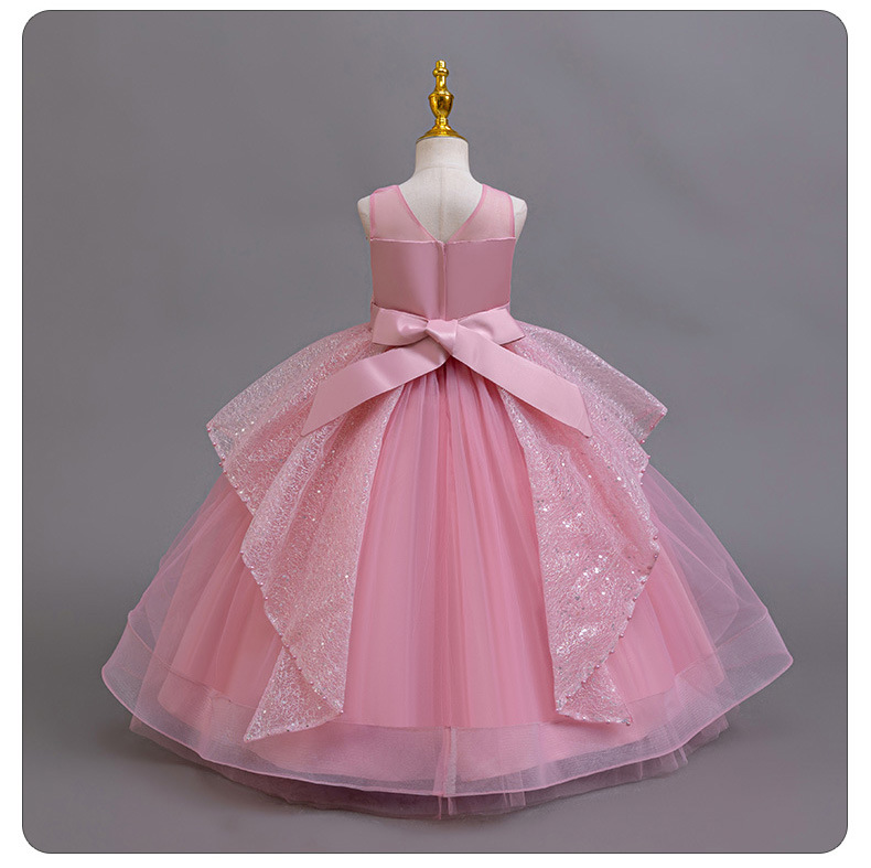 아마존의 인기 긴 드레스 웨딩 플라워 걸 메쉬 투투 스커트 소녀 보우 로리타 공주 드레스