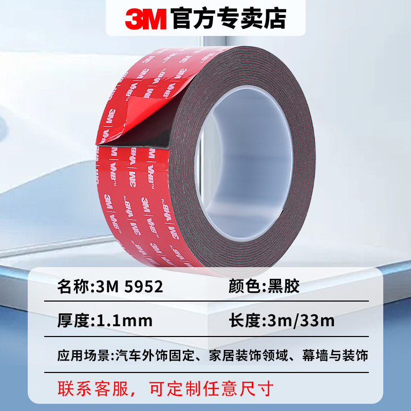 • 3m5952 검정색(강력한 접착력 1.1mm 두께, 폭 10mm* 길이 33m);
