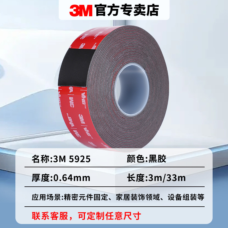 • 3m5925 검정색(강력한 접착력 0.64mm 두께, 폭 10mm* 길이 33m);