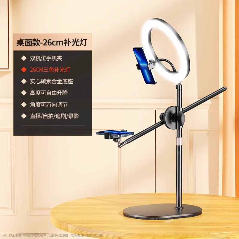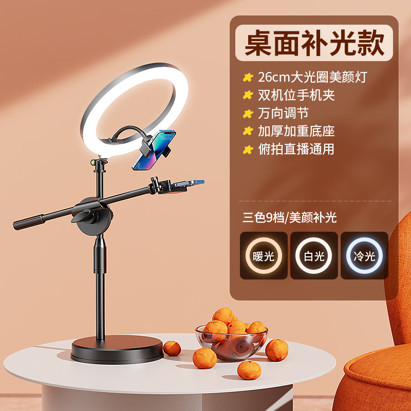 • 넓어지고 두꺼워진 [탄소강 캔틸레버] 데스크탑 오버헤드 촬영 스탠드 + 26cm 3색 뷰티 램프 + 블루투스 비디오 레코더.