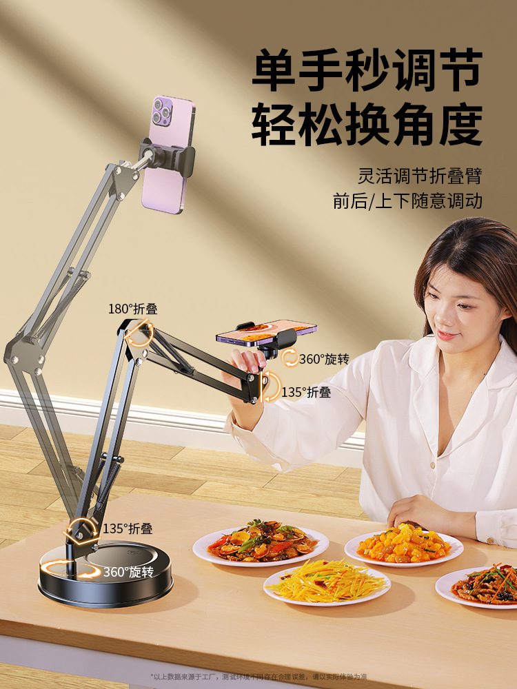 전문 오버헤드 촬영] 휴대폰 홀더, 데스크탑 라이브 방송 셀카봉, 삼각대, 음식 촬영 및 비디오 녹화 도구, 온라인 수업스토어 가기