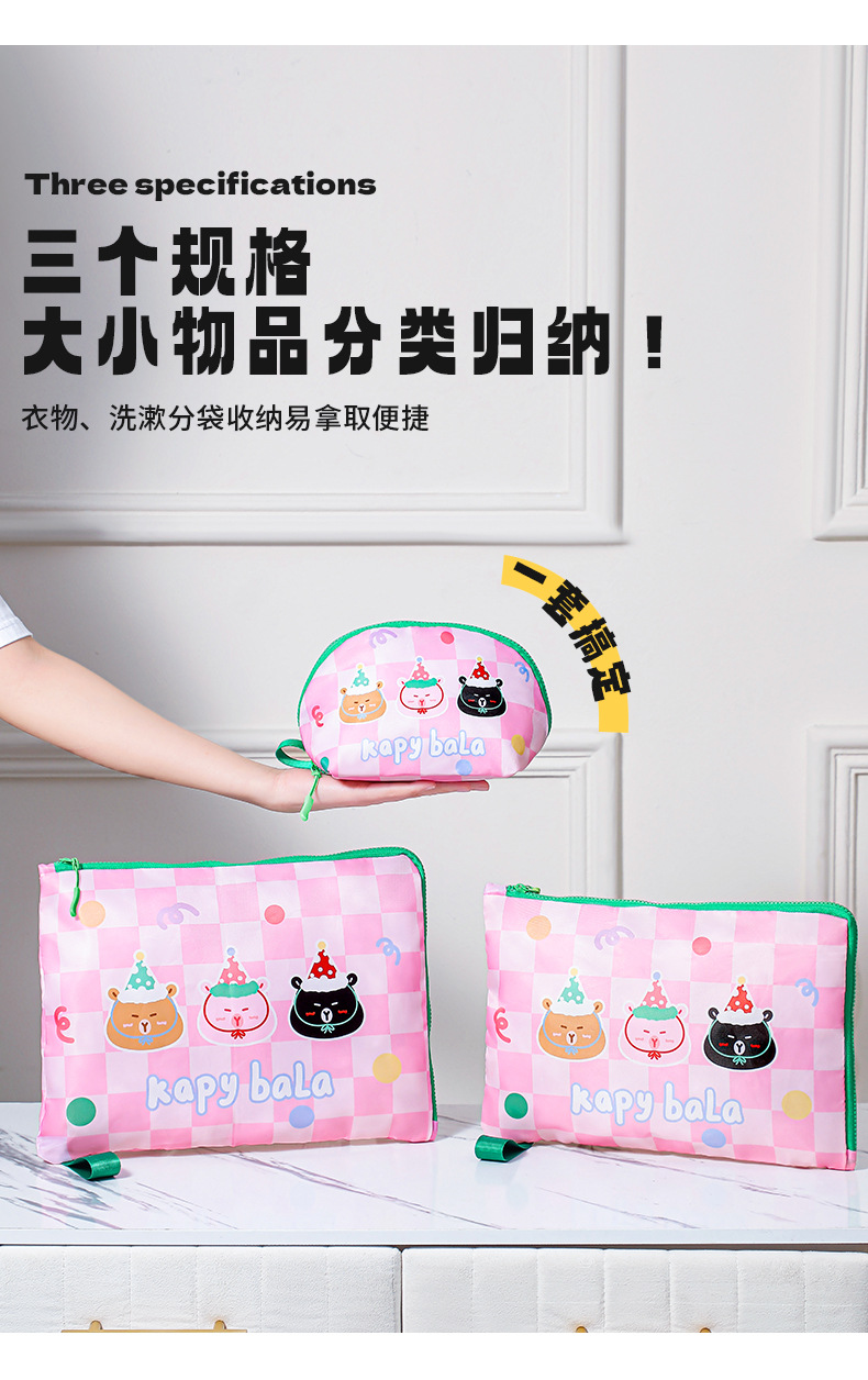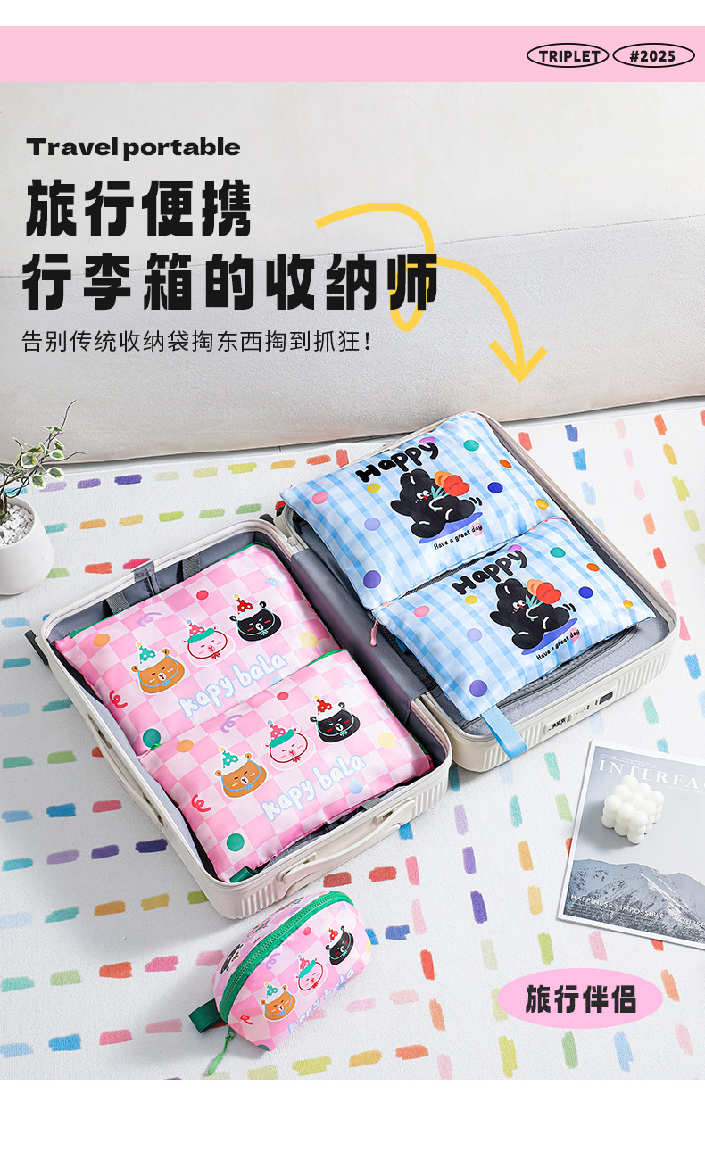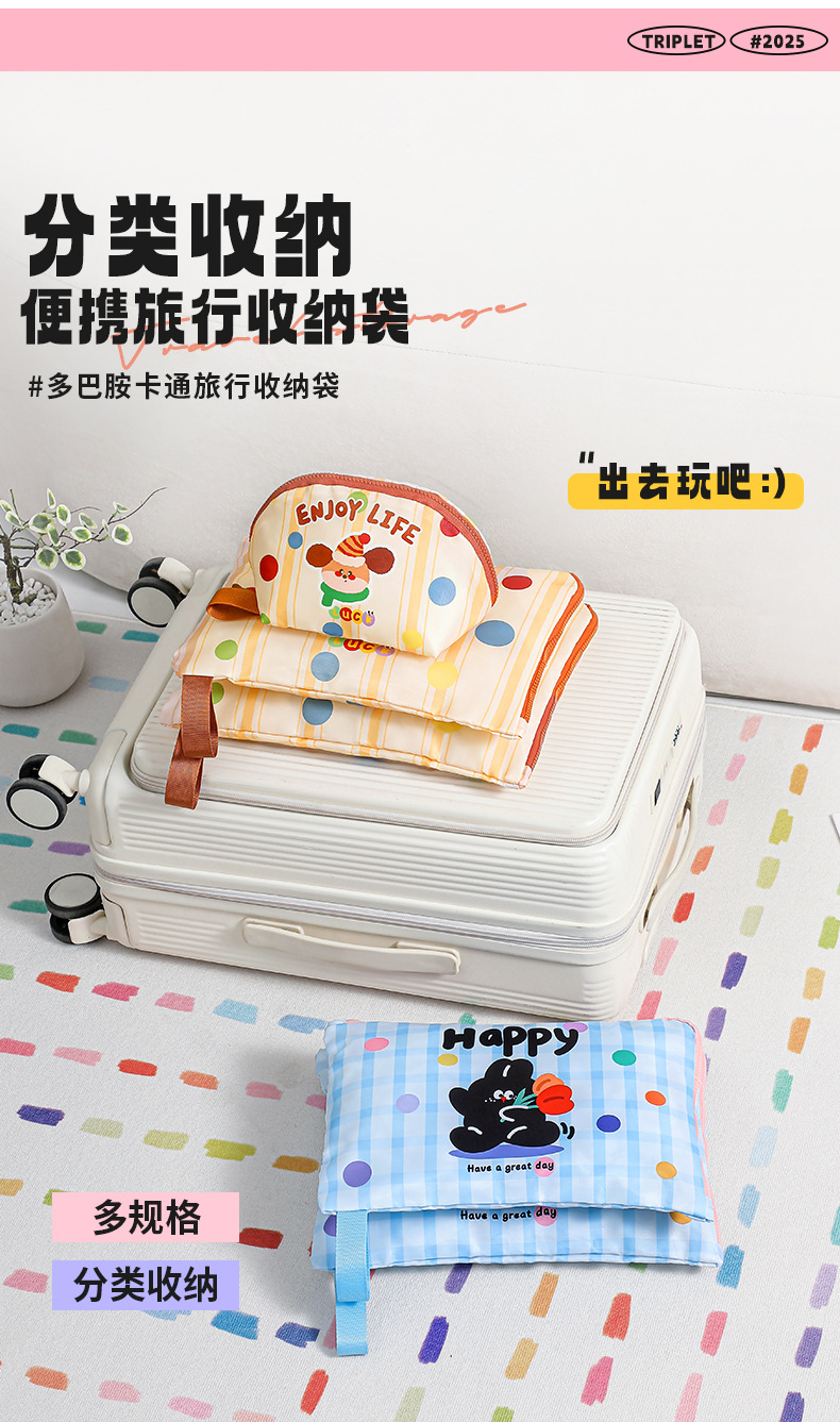 여행 보관 가방 귀여운 줄무늬 여행 휴대용 의류 속옷 수하물 3 피스 화장품 보관스토어 가기