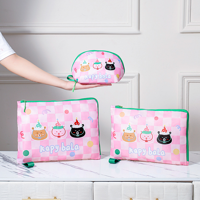 여행 보관 가방 귀여운 줄무늬 여행 휴대용 의류 속옷 수하물 3 피스 화장품 보관