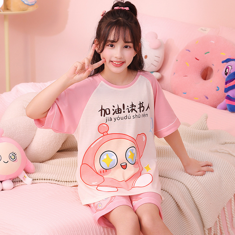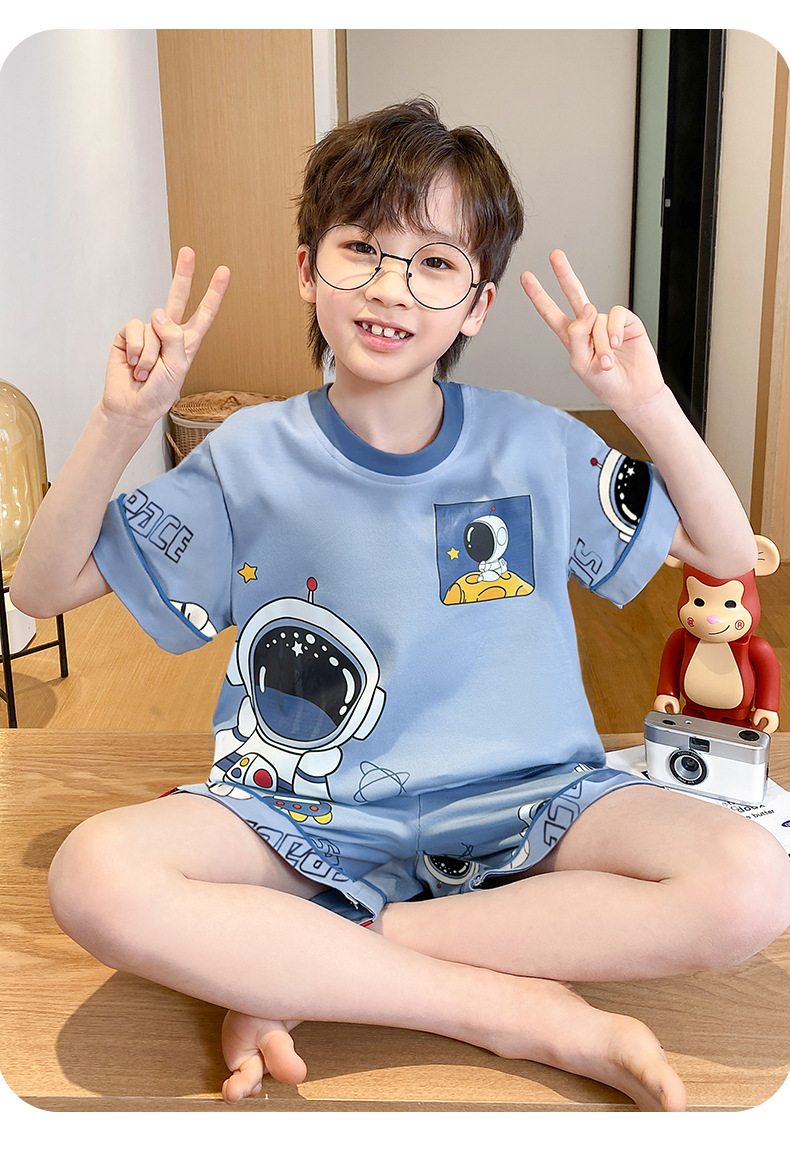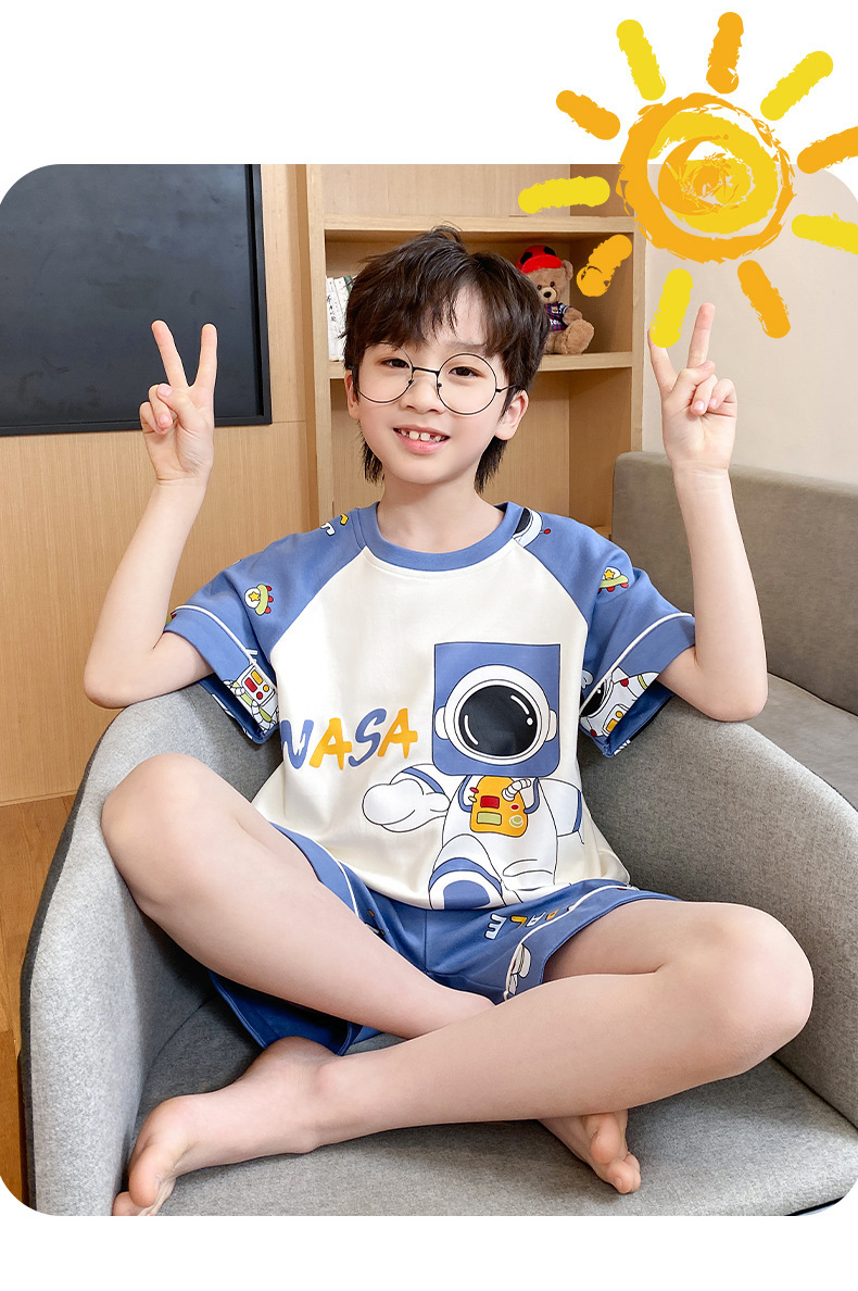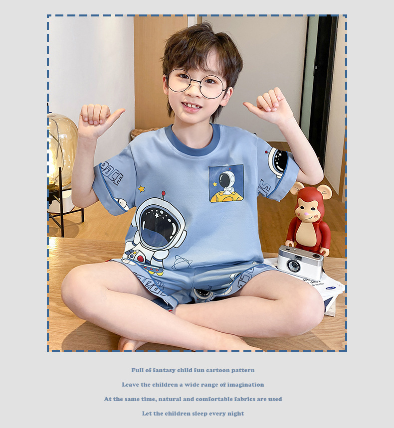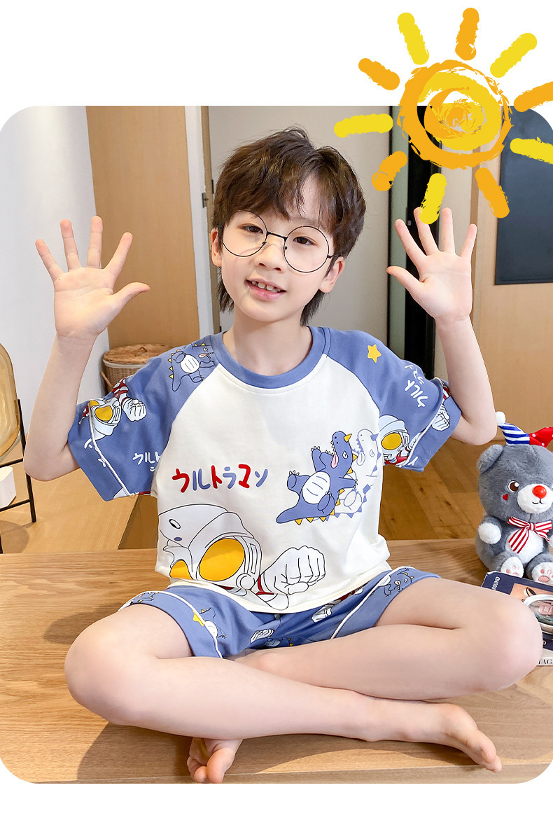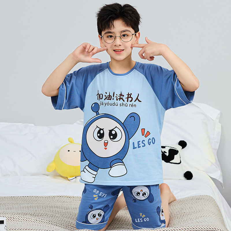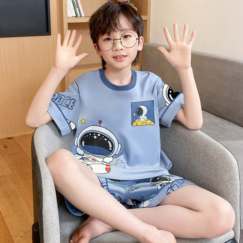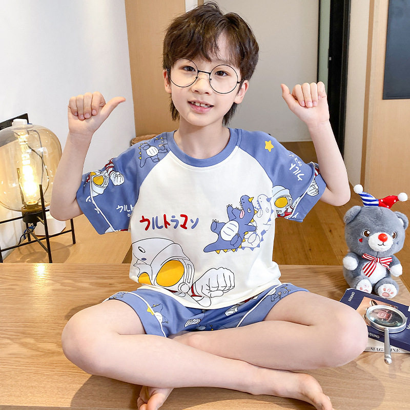 어린이 잠옷 여름 얇은 면화 반팔 중대형 어린이 소녀 여름 어린 소년 청소년 가정 의류 세트스토어 가기