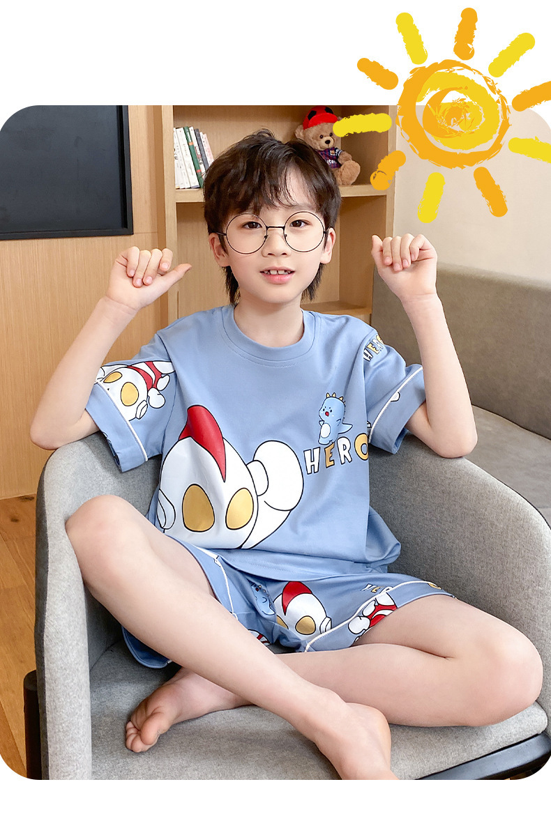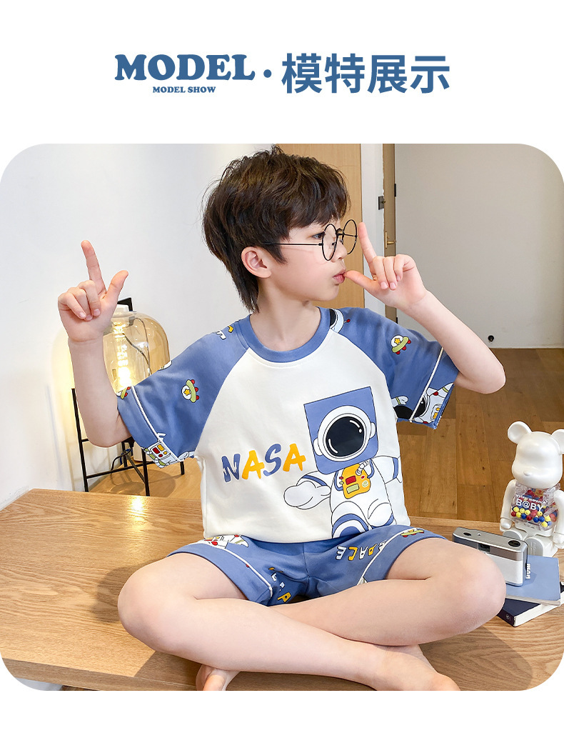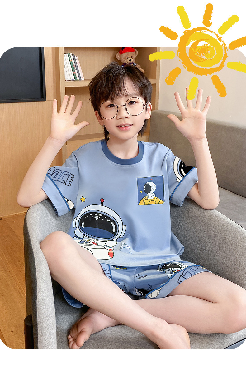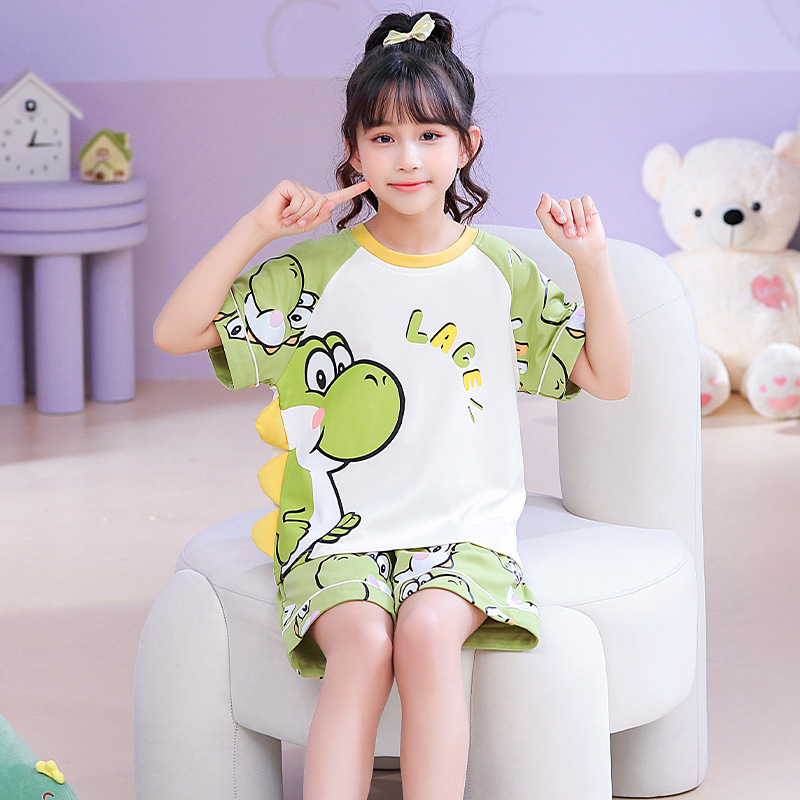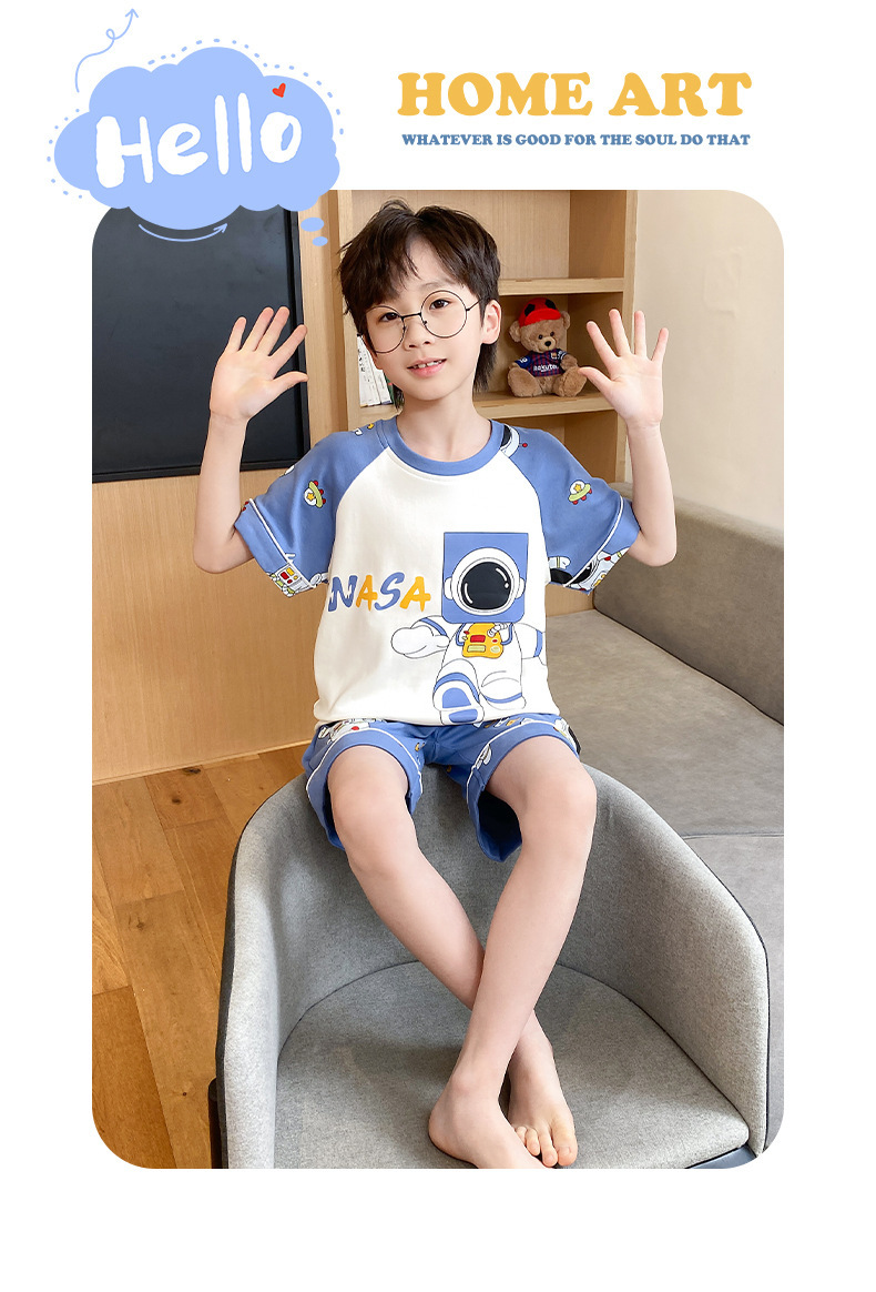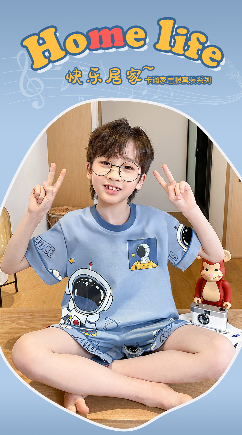 어린이 잠옷 여름 얇은 면화 반팔 중대형 어린이 소녀 여름 어린 소년 청소년 가정 의류 세트스토어 가기