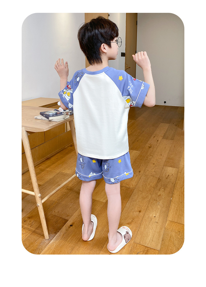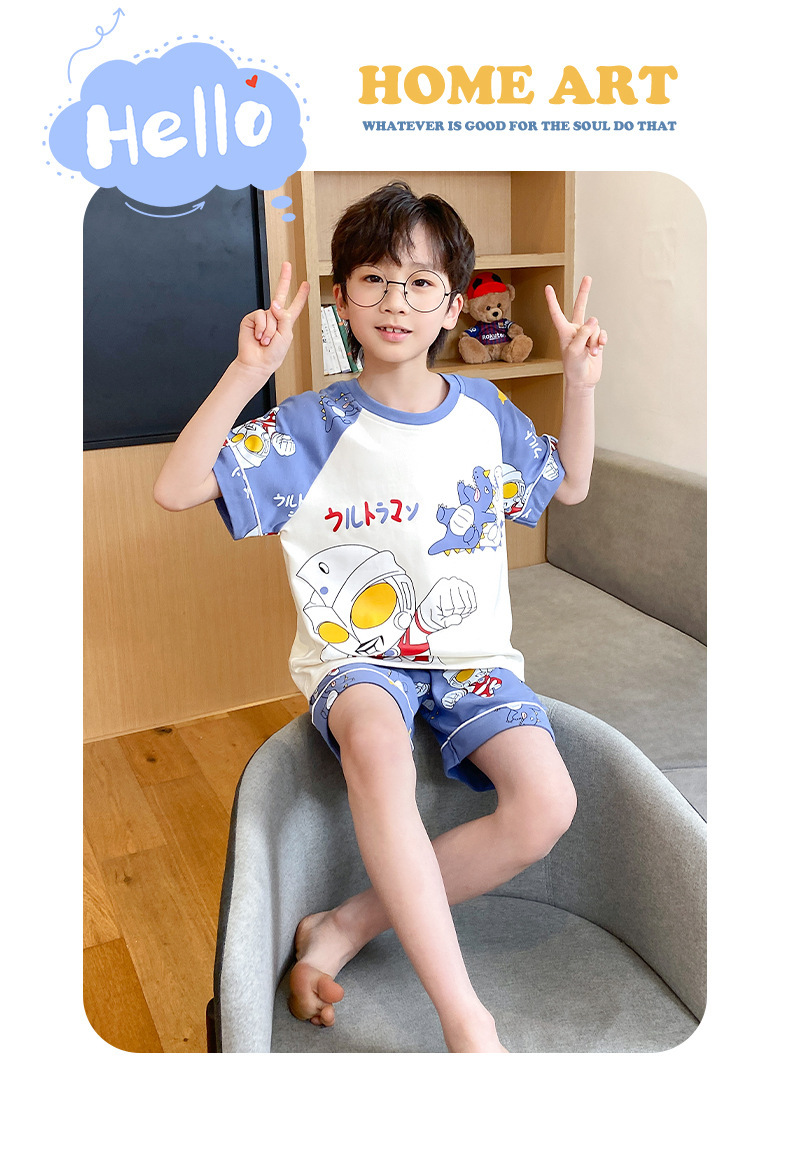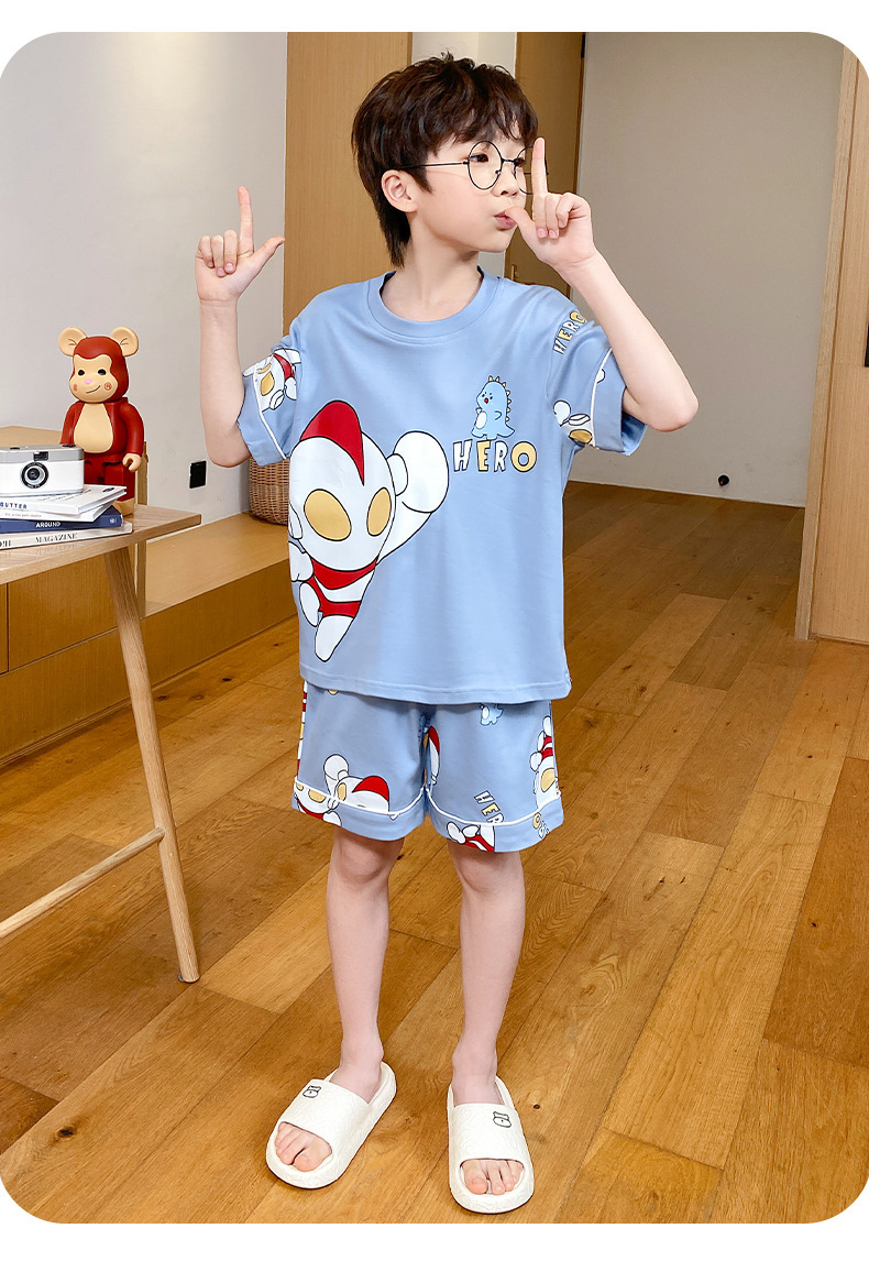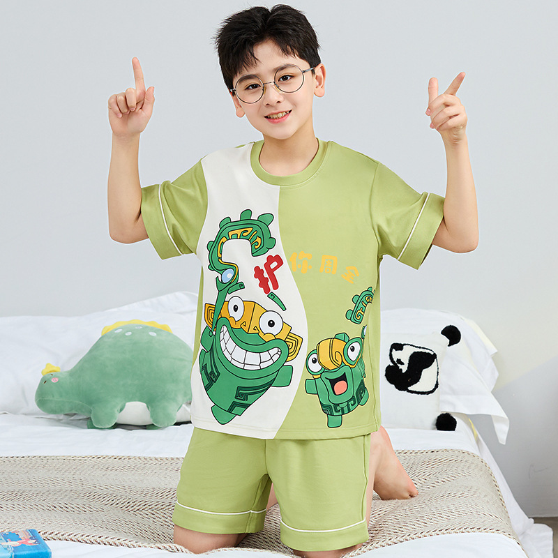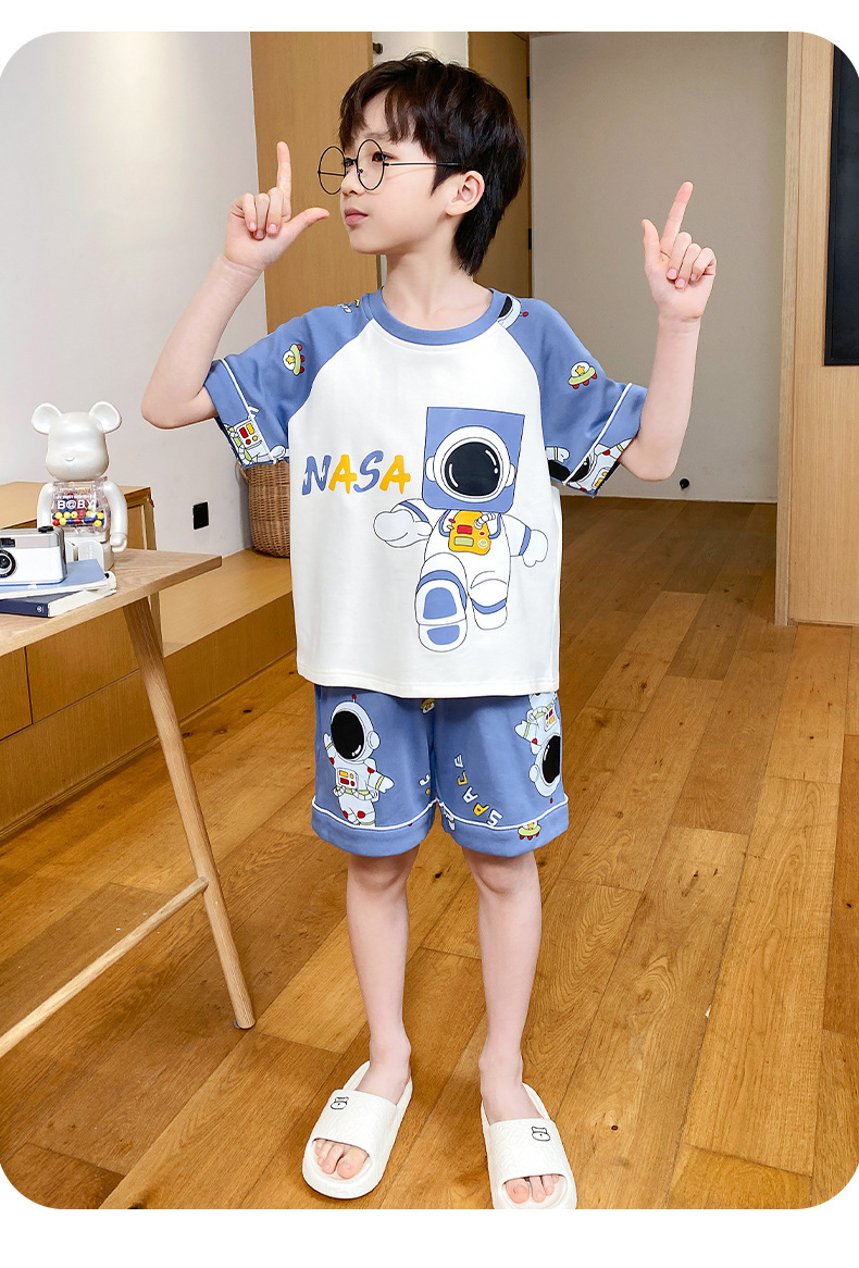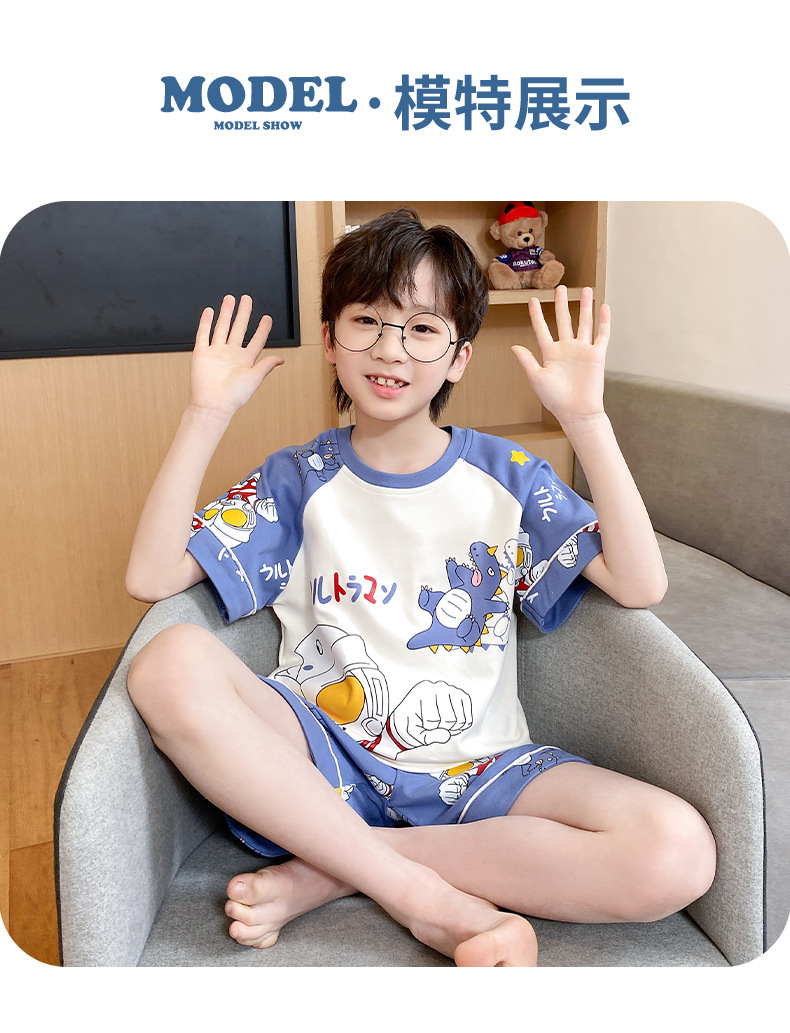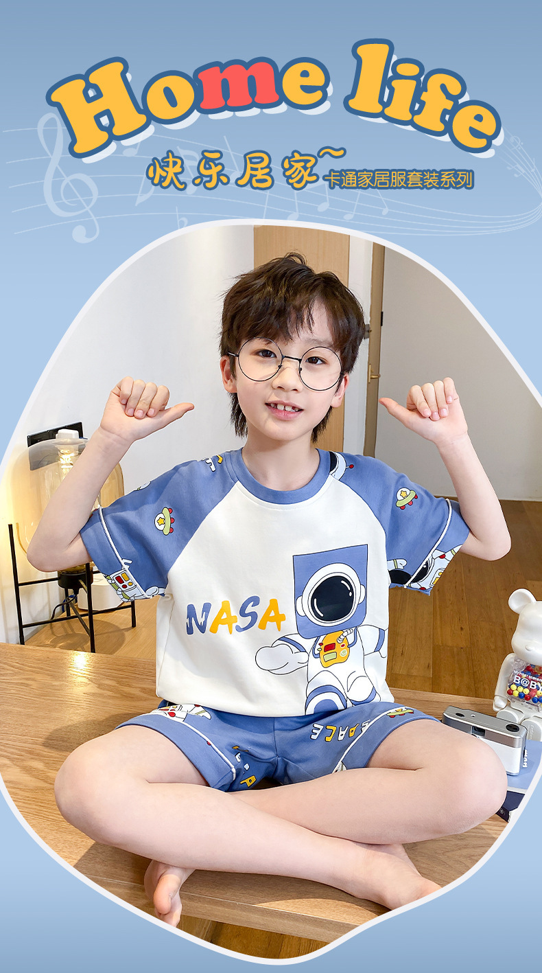 어린이 잠옷 여름 얇은 면화 반팔 중대형 어린이 소녀 여름 어린 소년 청소년 가정 의류 세트스토어 가기