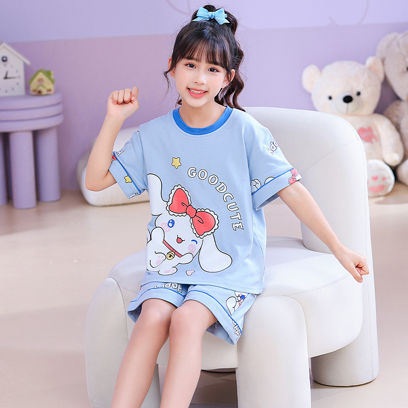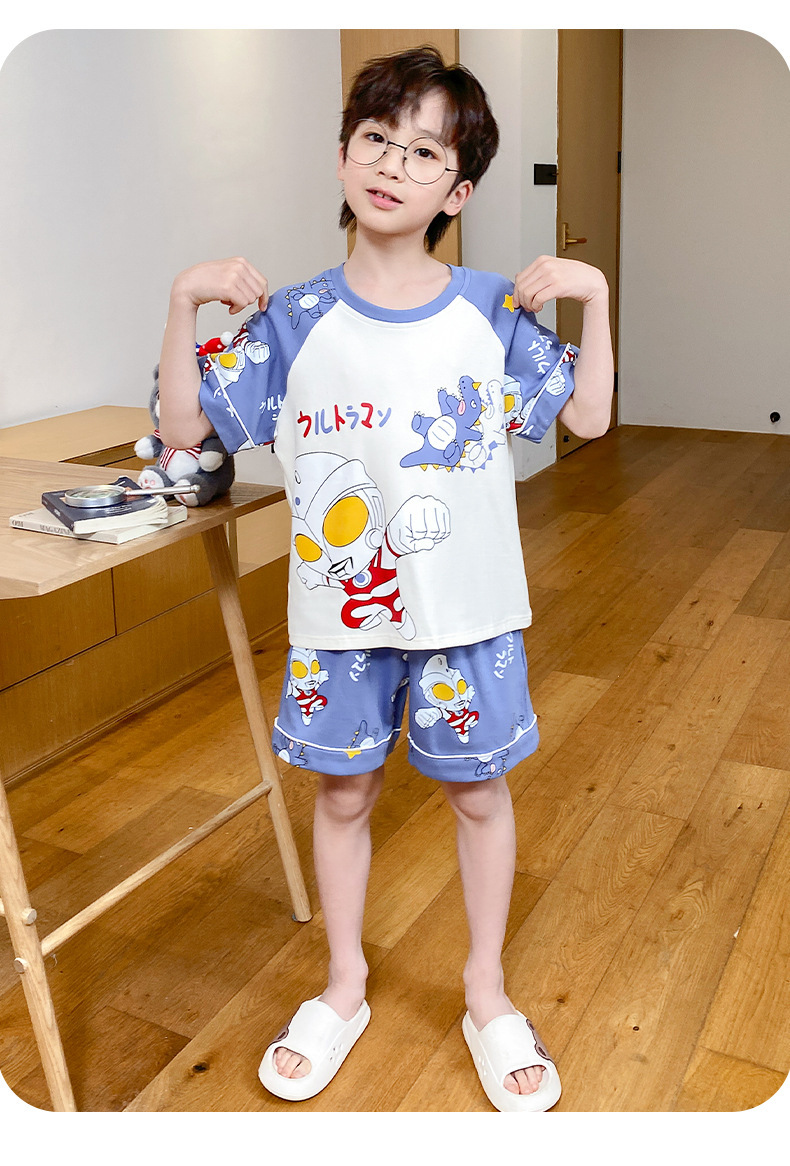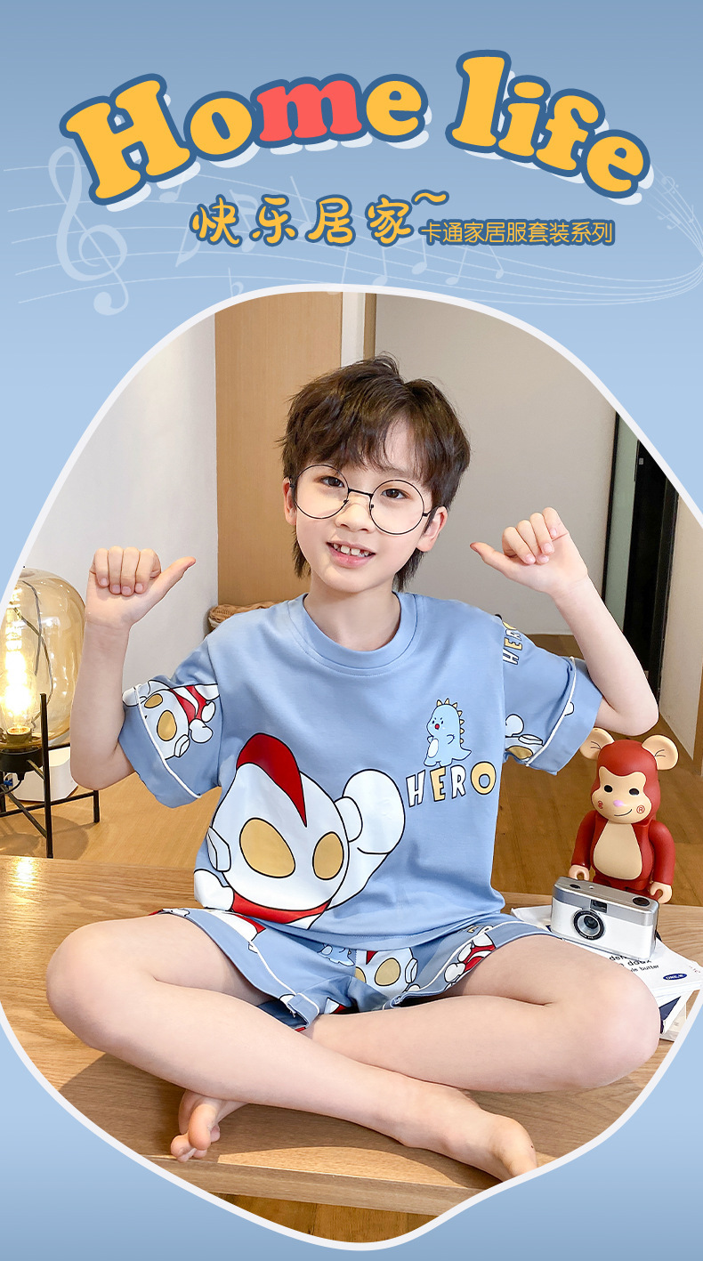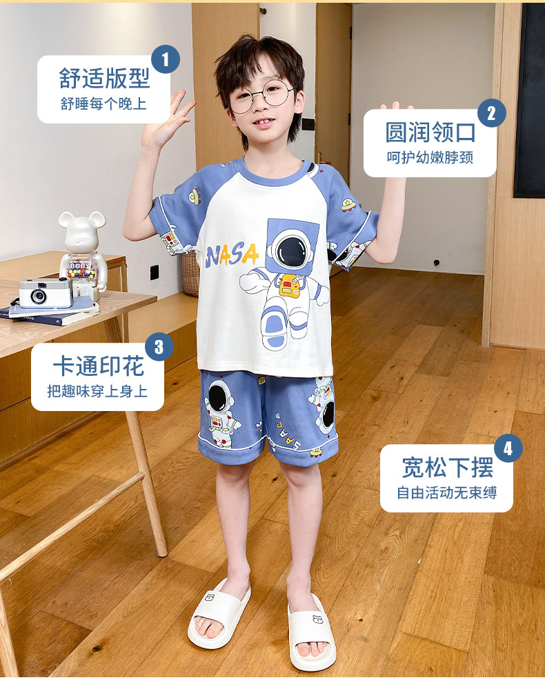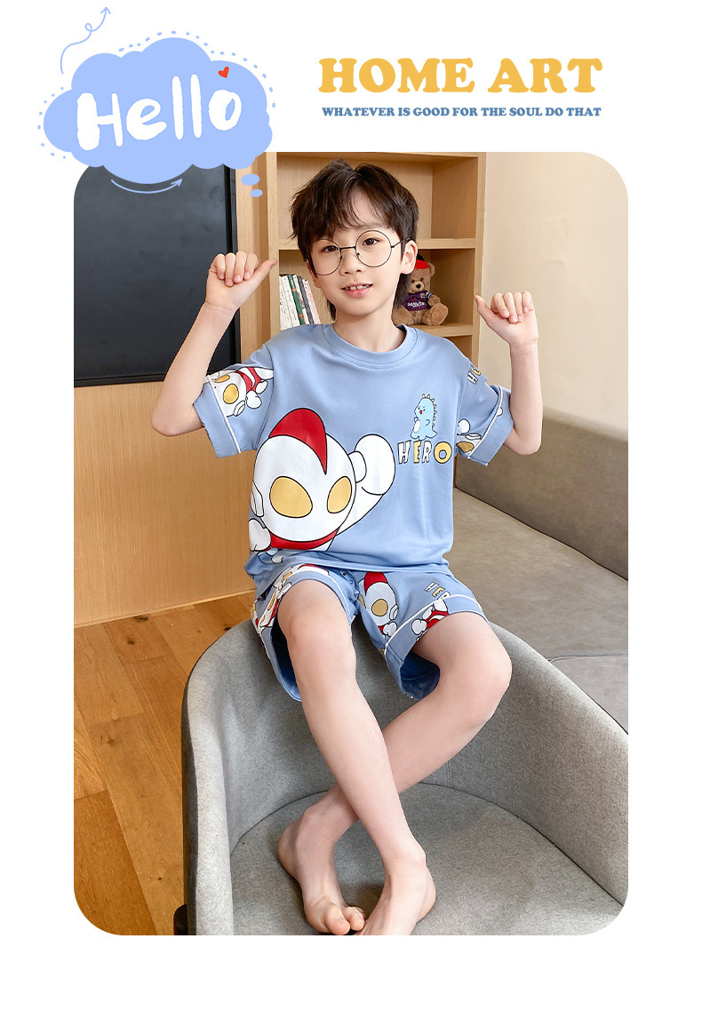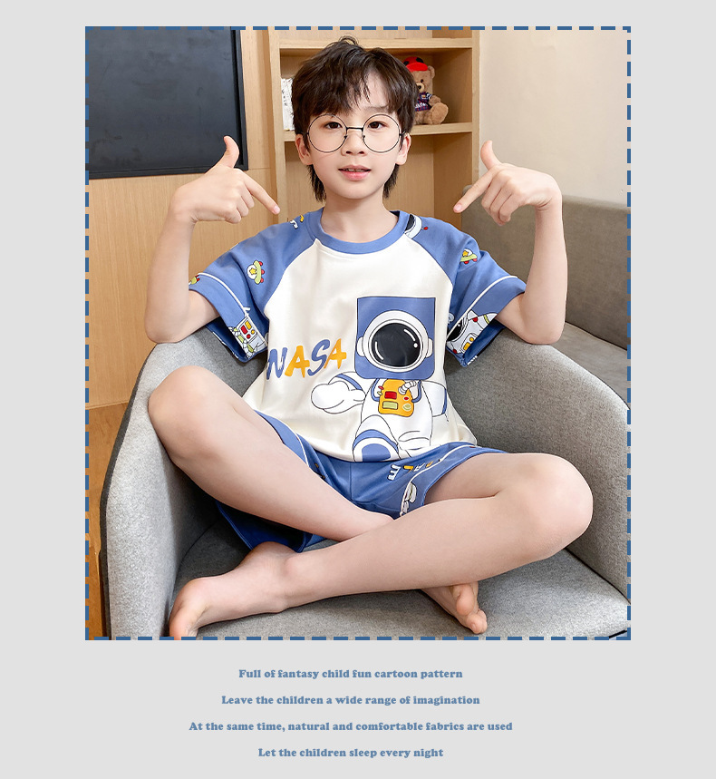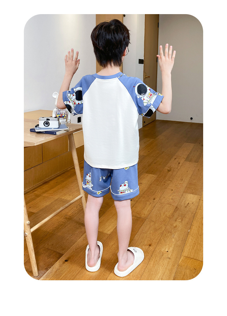 어린이 잠옷 여름 얇은 면화 반팔 중대형 어린이 소녀 여름 어린 소년 청소년 가정 의류 세트스토어 가기