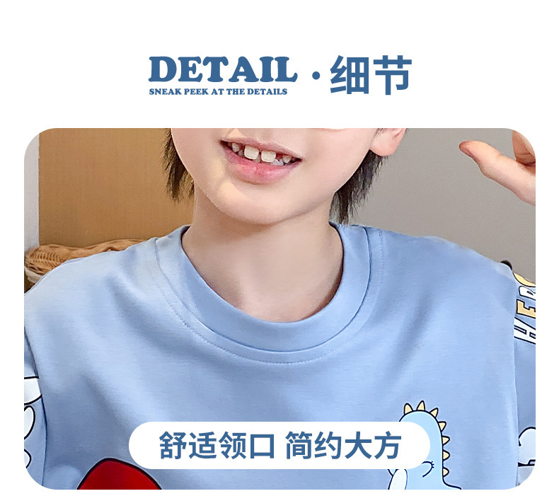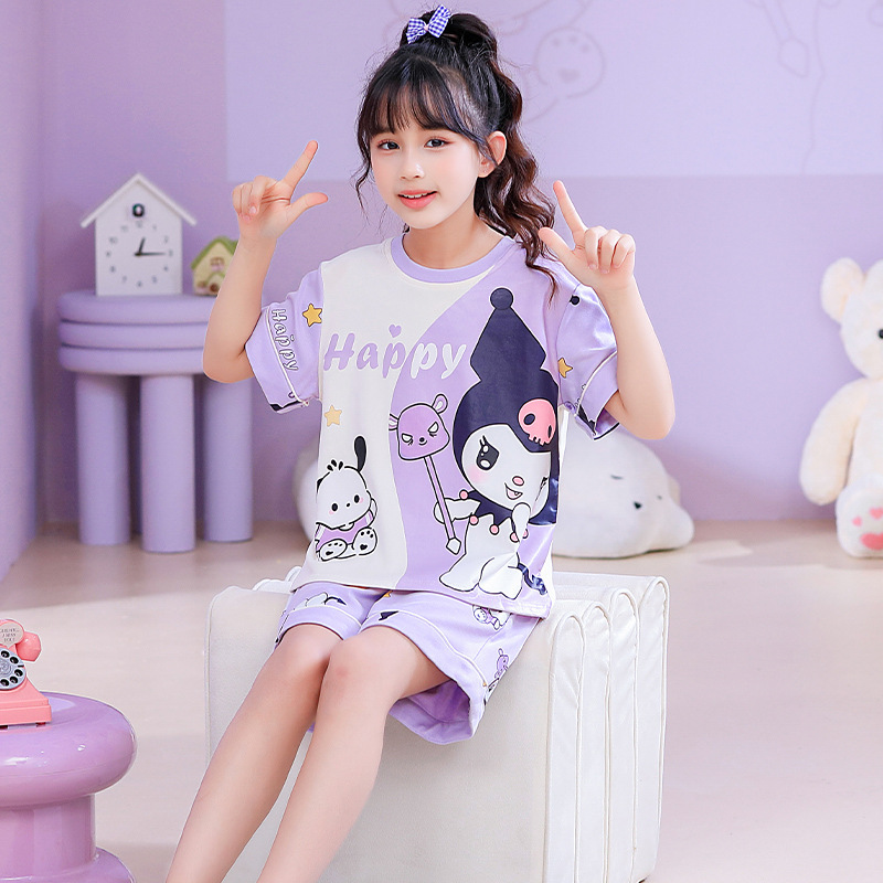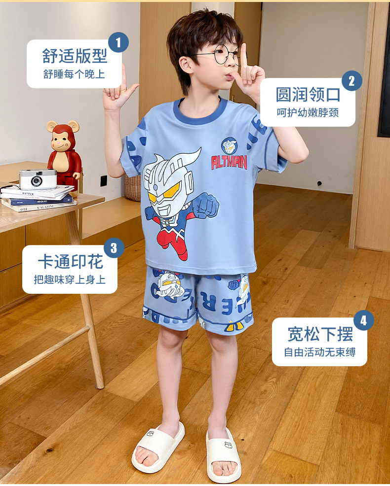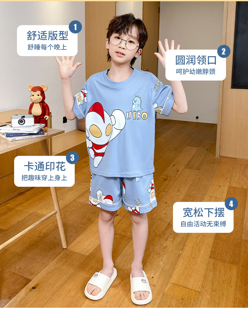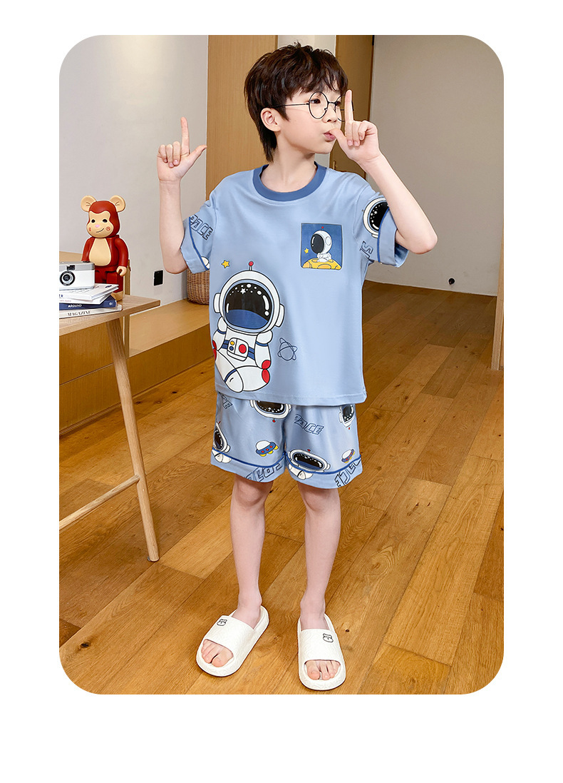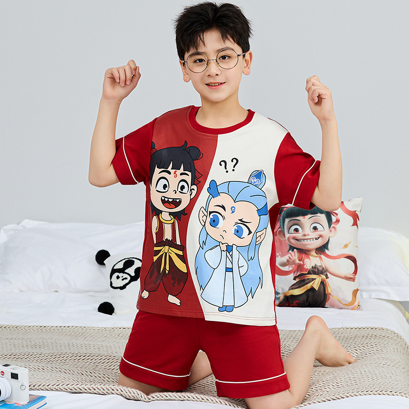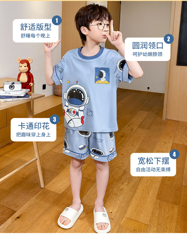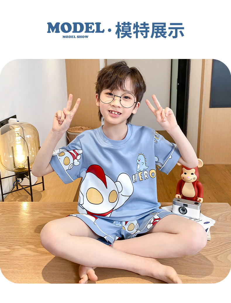 어린이 잠옷 여름 얇은 면화 반팔 중대형 어린이 소녀 여름 어린 소년 청소년 가정 의류 세트스토어 가기