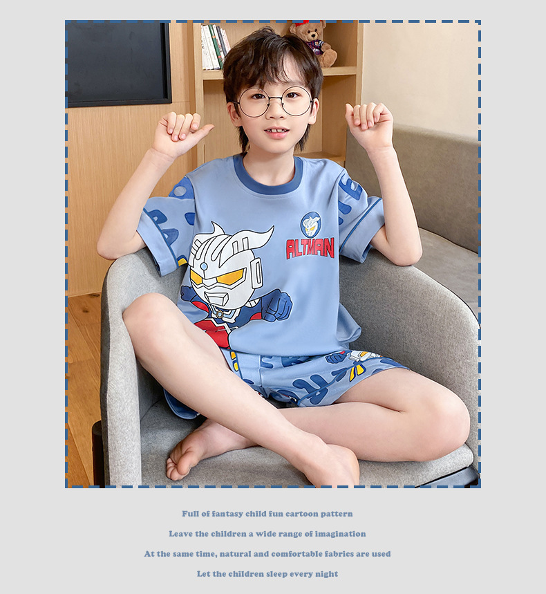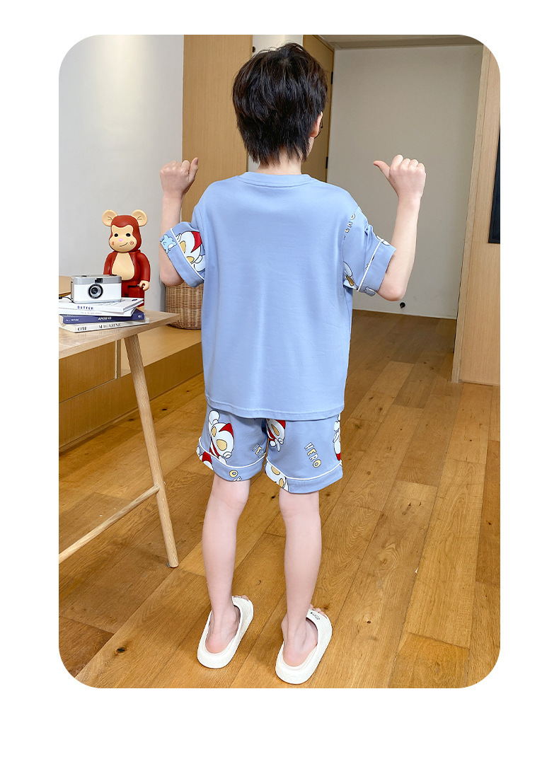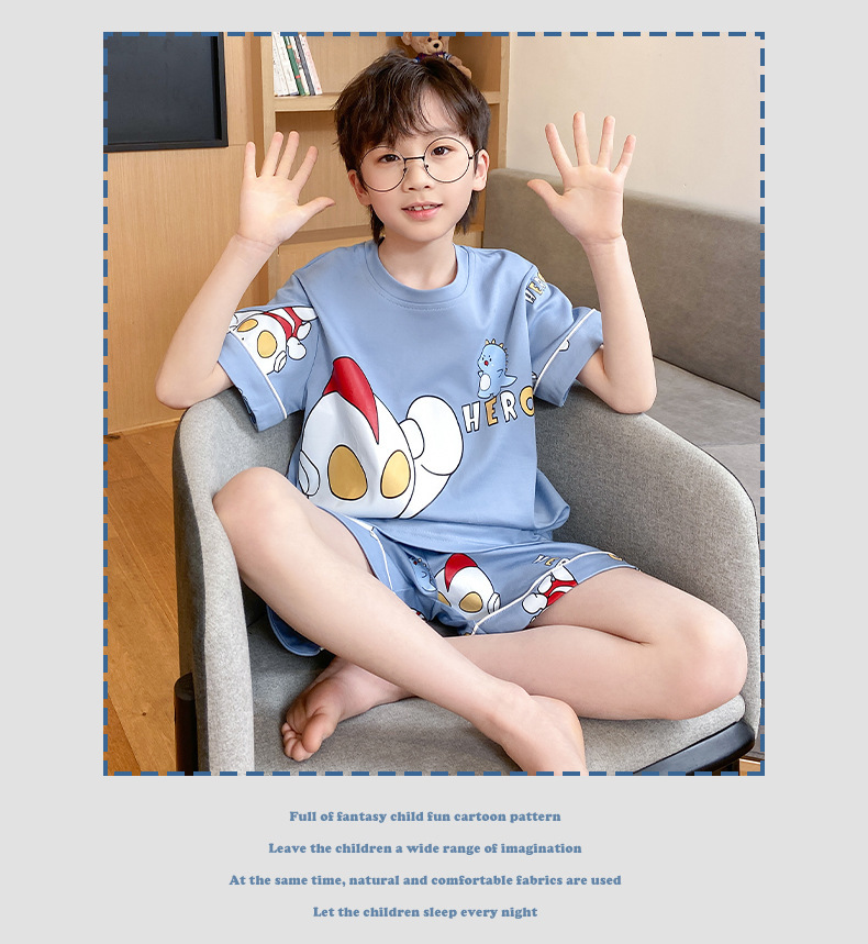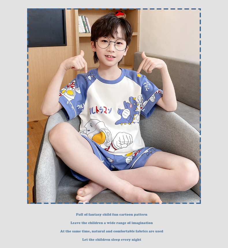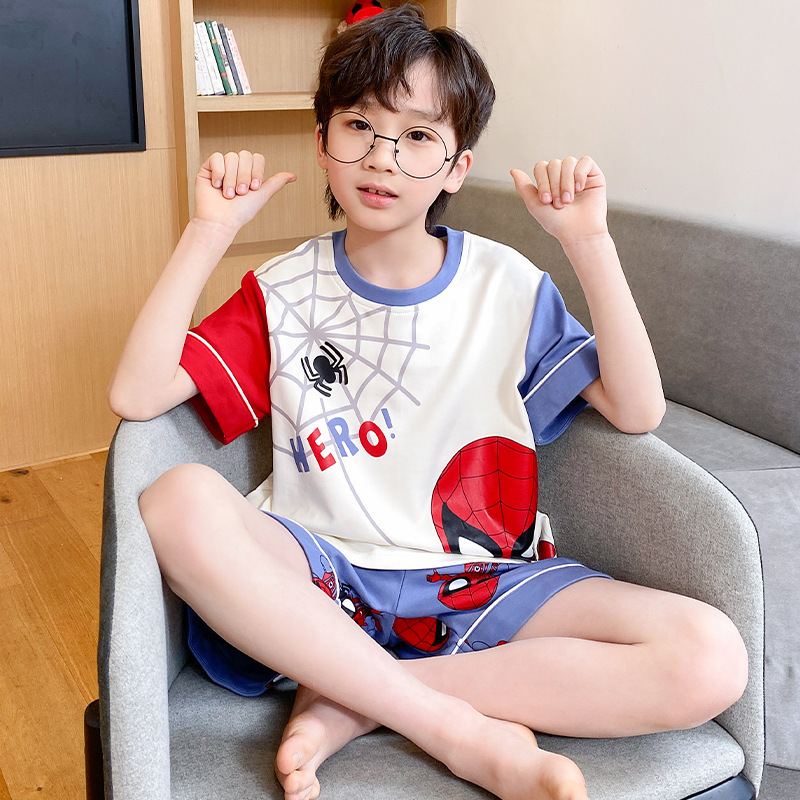 어린이 잠옷 여름 얇은 면화 반팔 중대형 어린이 소녀 여름 어린 소년 청소년 가정 의류 세트