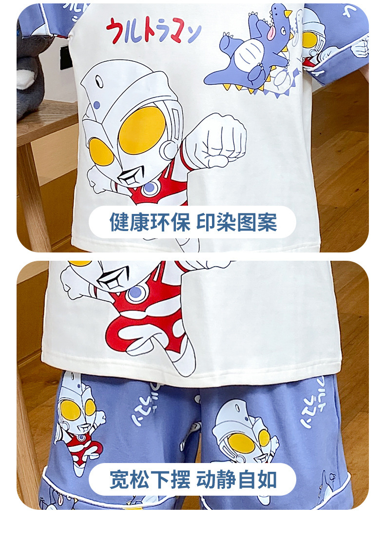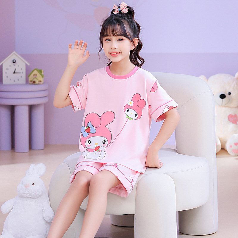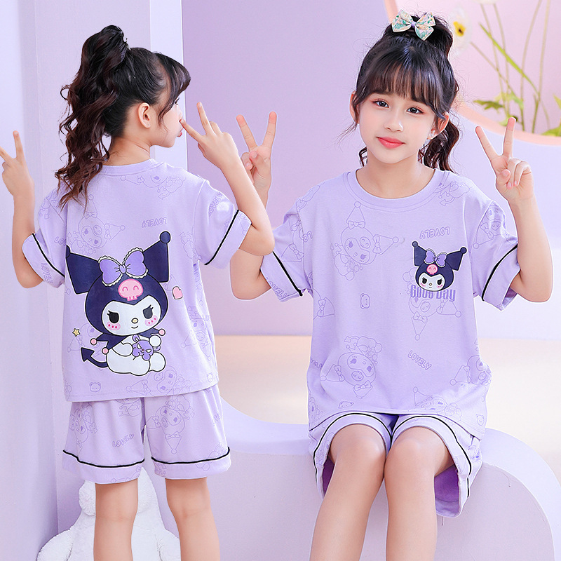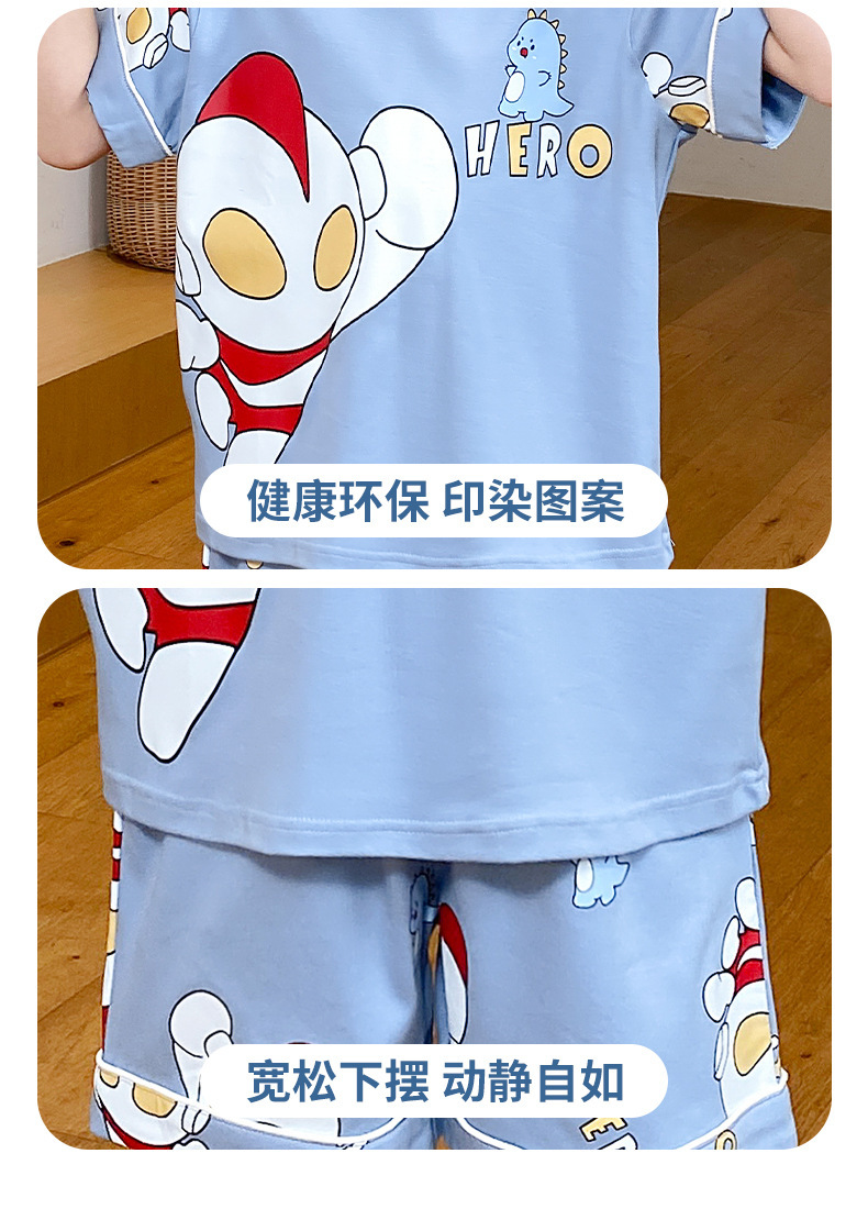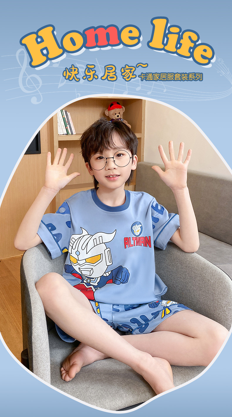 어린이 잠옷 여름 얇은 면화 반팔 중대형 어린이 소녀 여름 어린 소년 청소년 가정 의류 세트