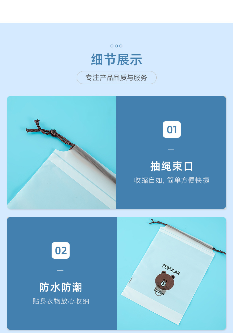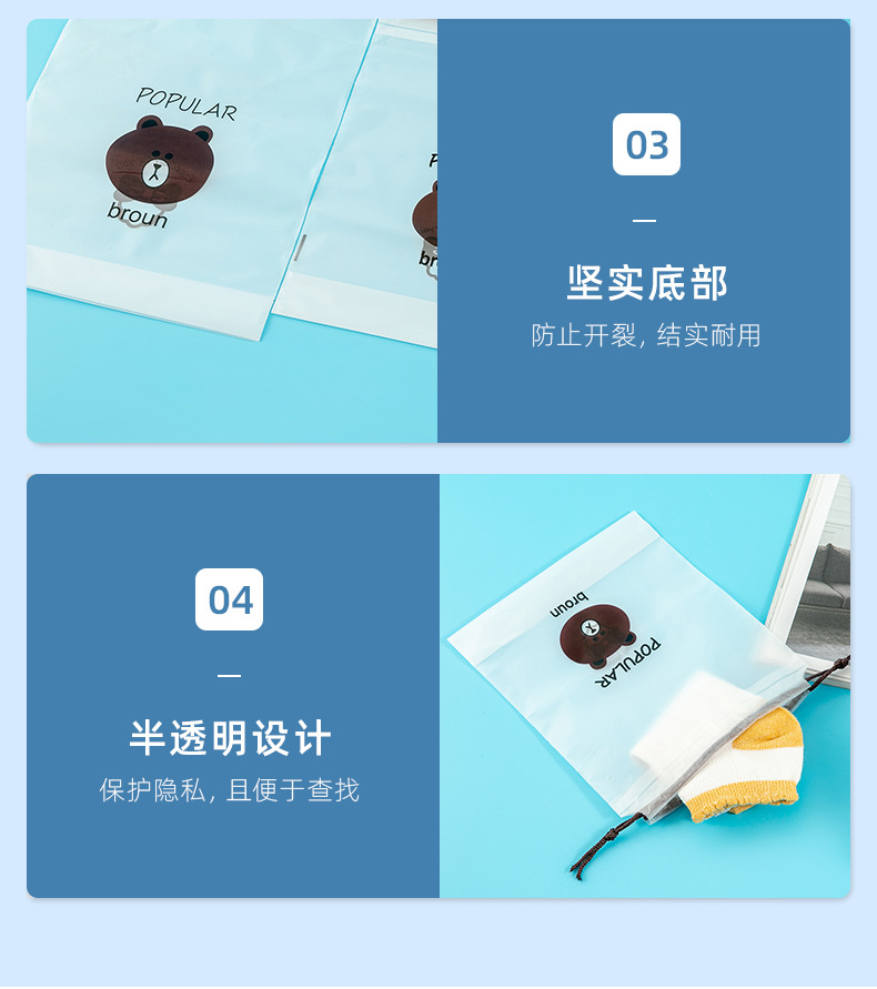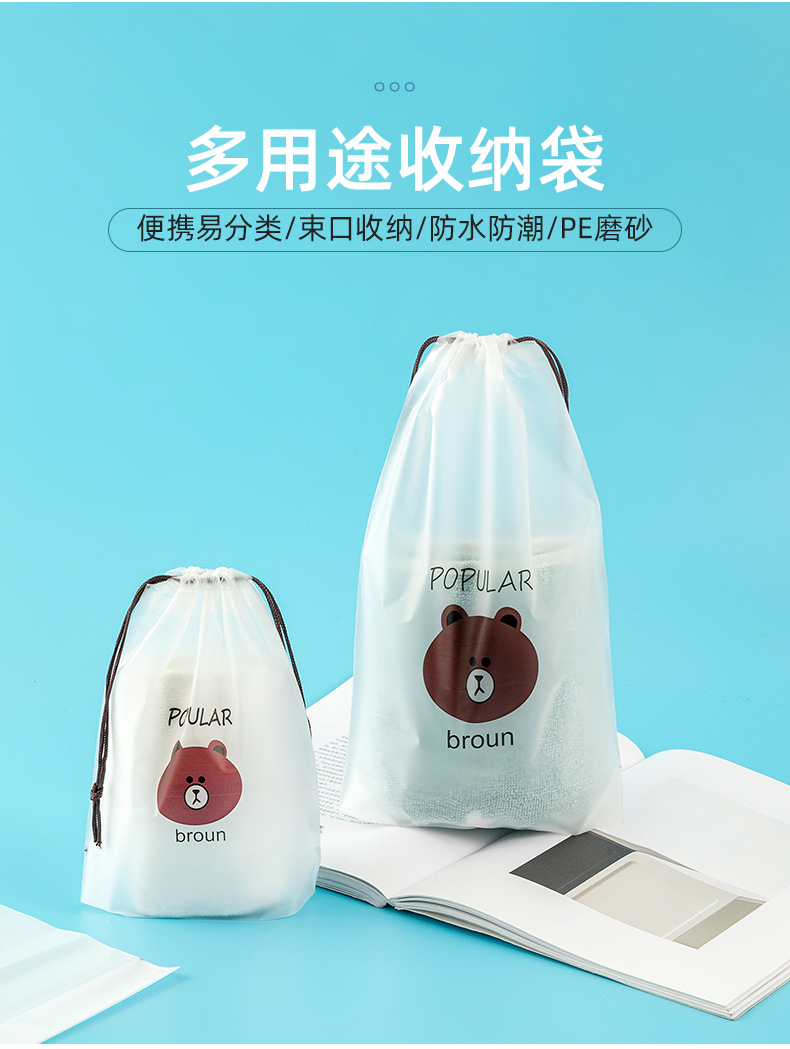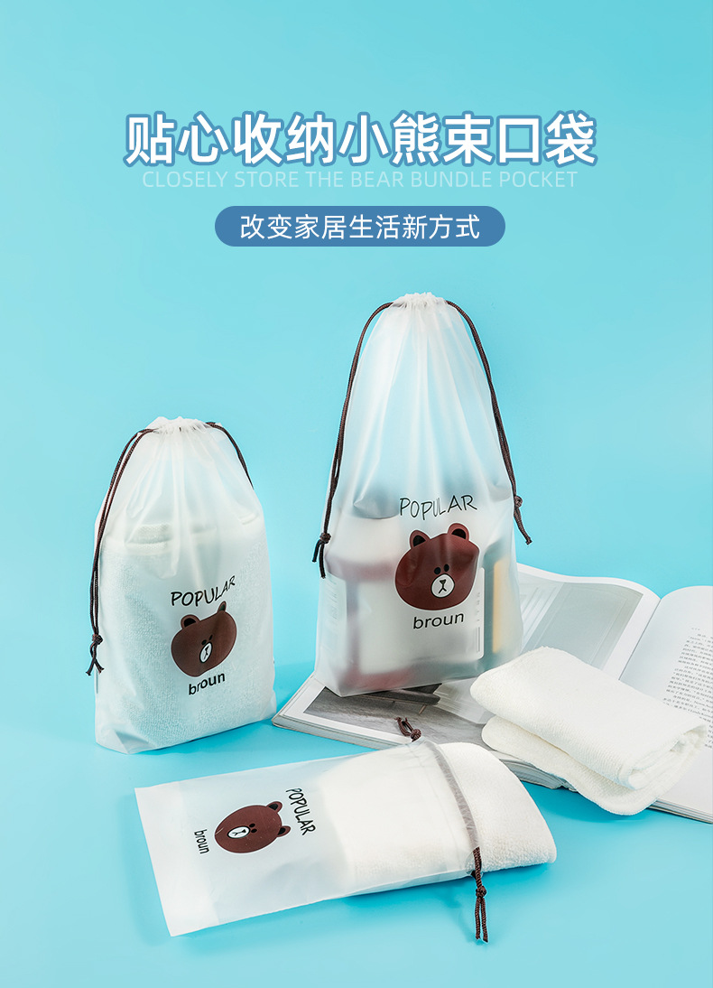곰돌이 끈주머니 속옷 수건 보관 가방 투명 방진 신발 주머니 양말 포장 가방 도매
