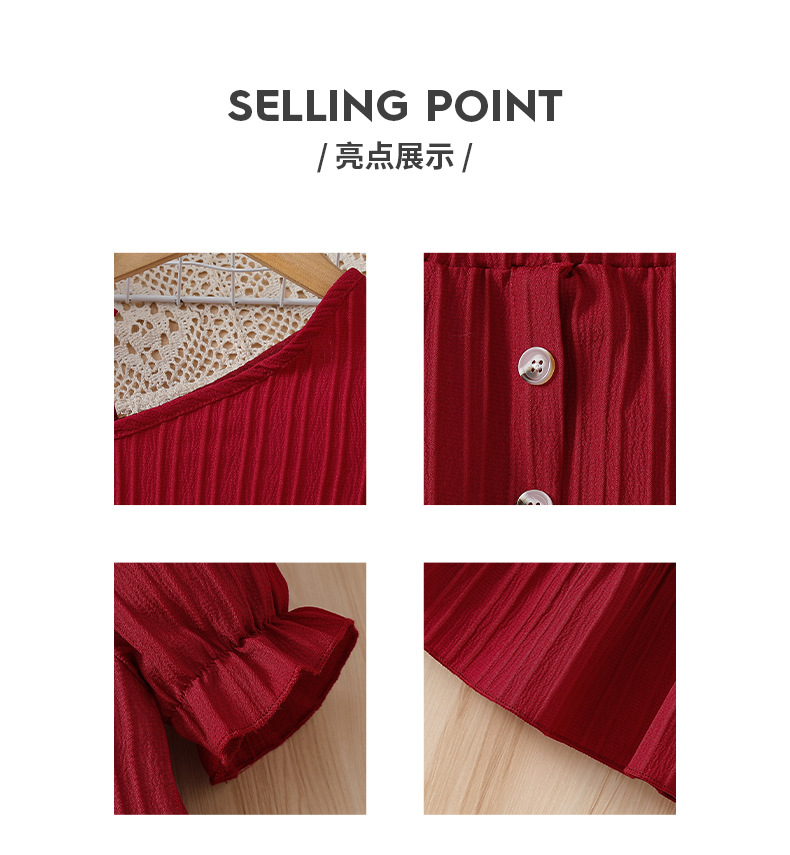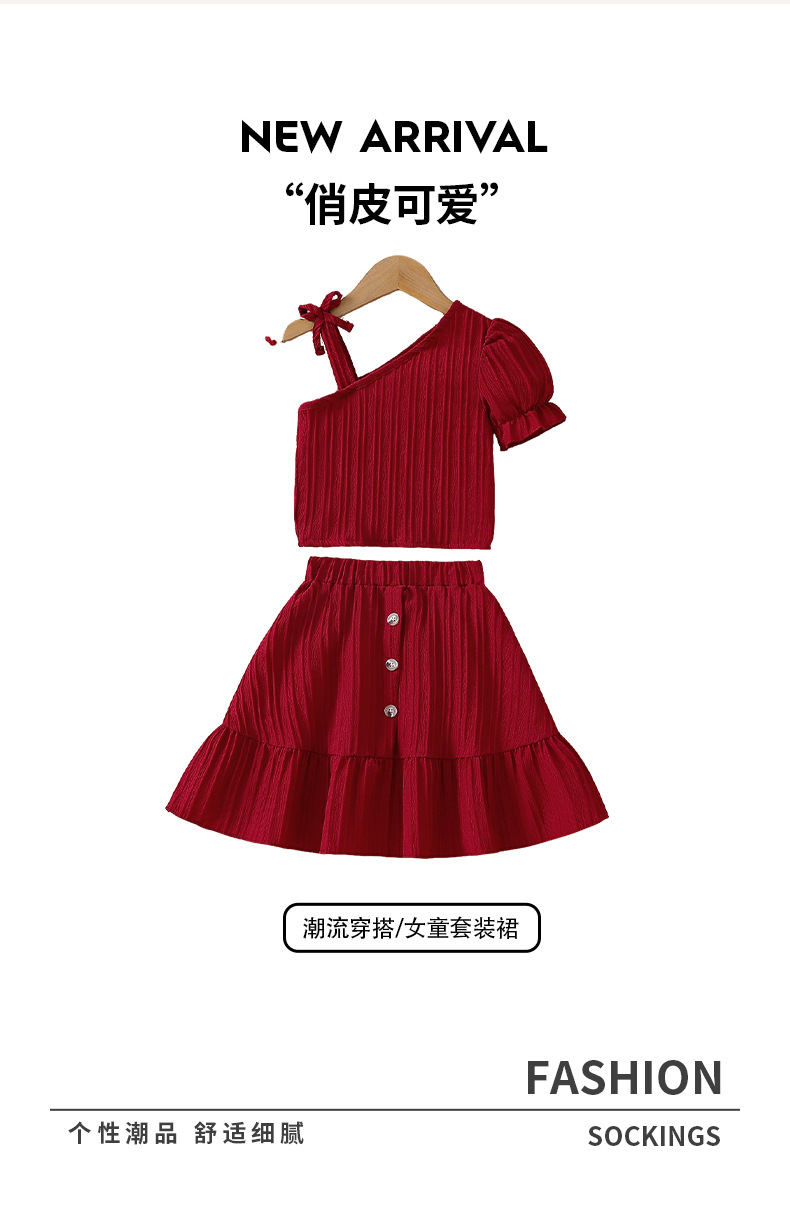국경 간 소녀 여름 치마 세트 버건디 슬란 어깨 스트랩 스트랩 스커트 여성 보물 어린이 스커트 투피스 세트