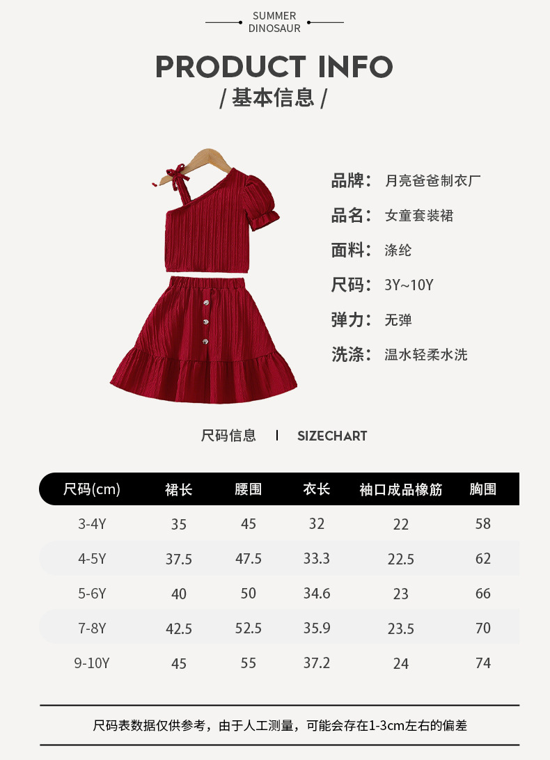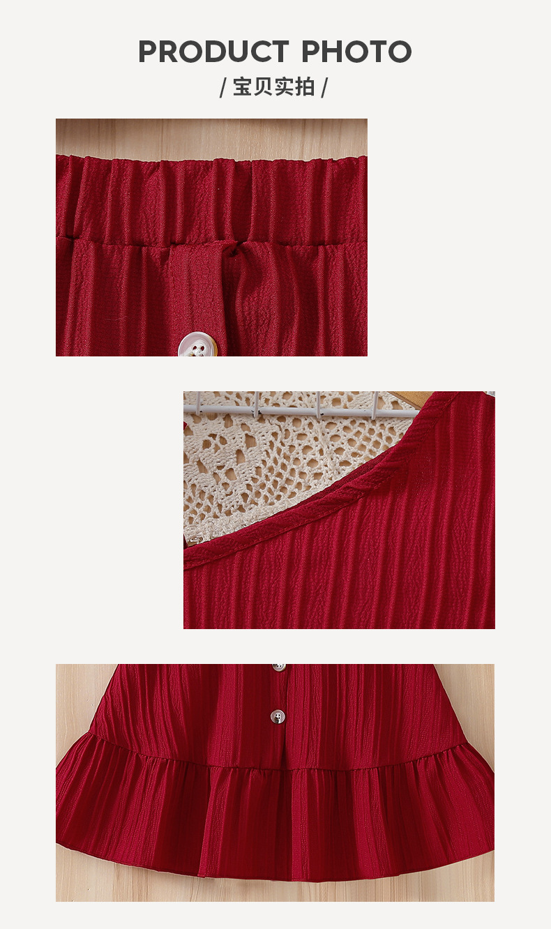 국경 간 소녀 여름 치마 세트 버건디 슬란 어깨 스트랩 스트랩 스커트 여성 보물 어린이 스커트 투피스 세트스토어 가기