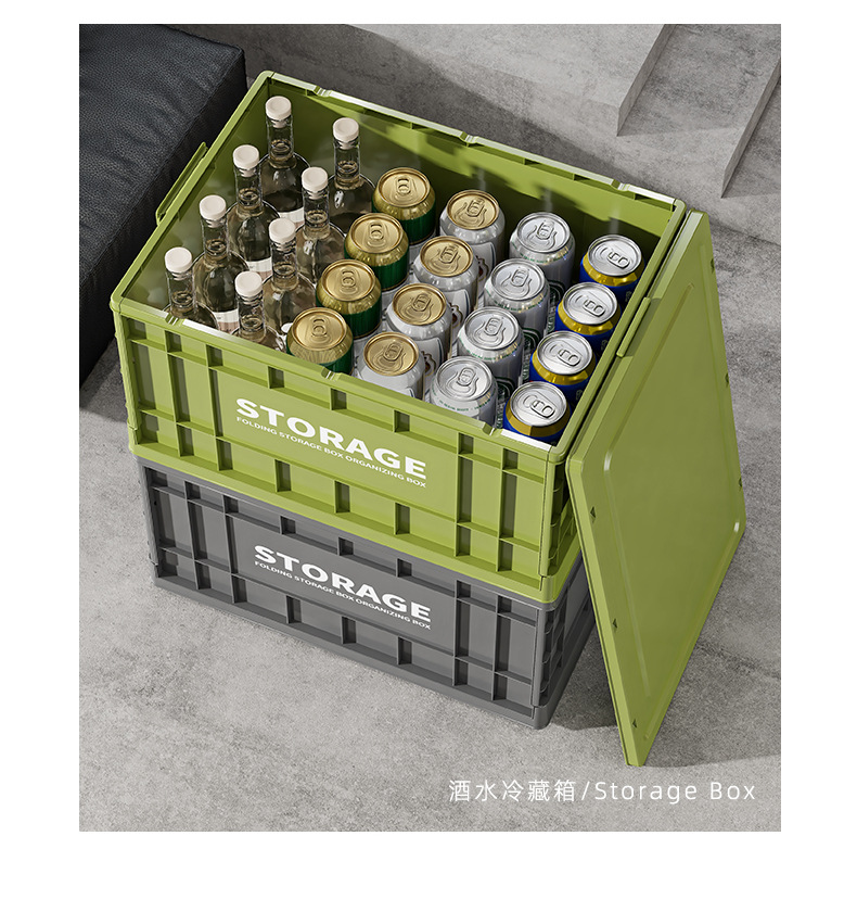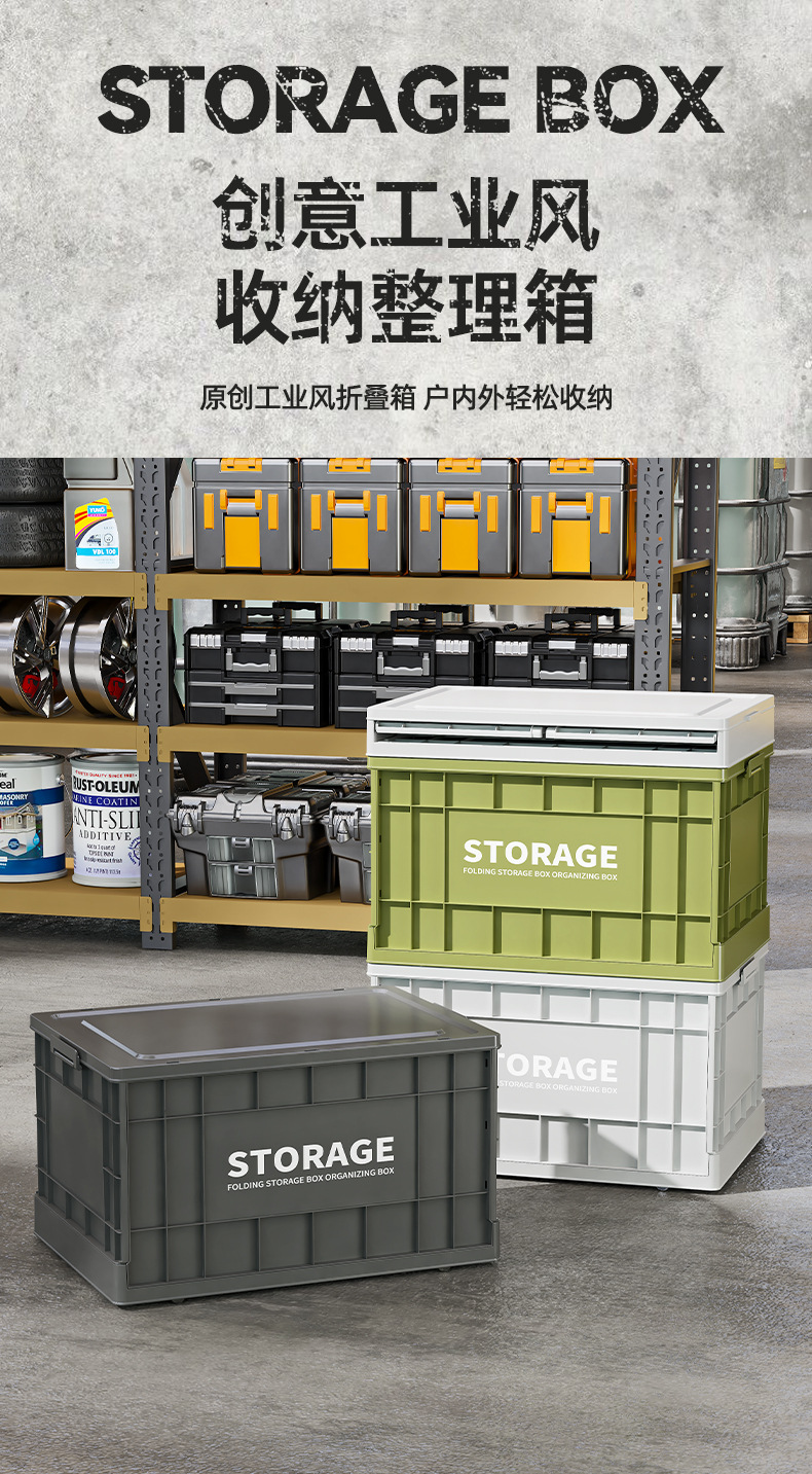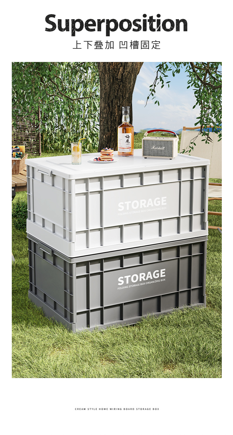 맞춤형 산업용 스타일 접이식 보관 상자 뚜껑이 있는 플라스틱 회전 상자 야외 캠핑 보관 상자 도르래가 있는 대용량스토어 가기