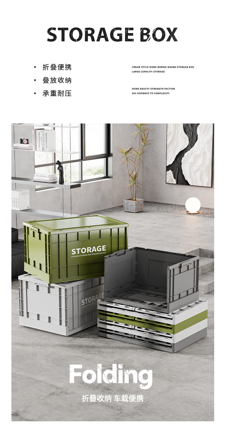 맞춤형 산업용 스타일 접이식 보관 상자 뚜껑이 있는 플라스틱 회전 상자 야외 캠핑 보관 상자 도르래가 있는 대용량