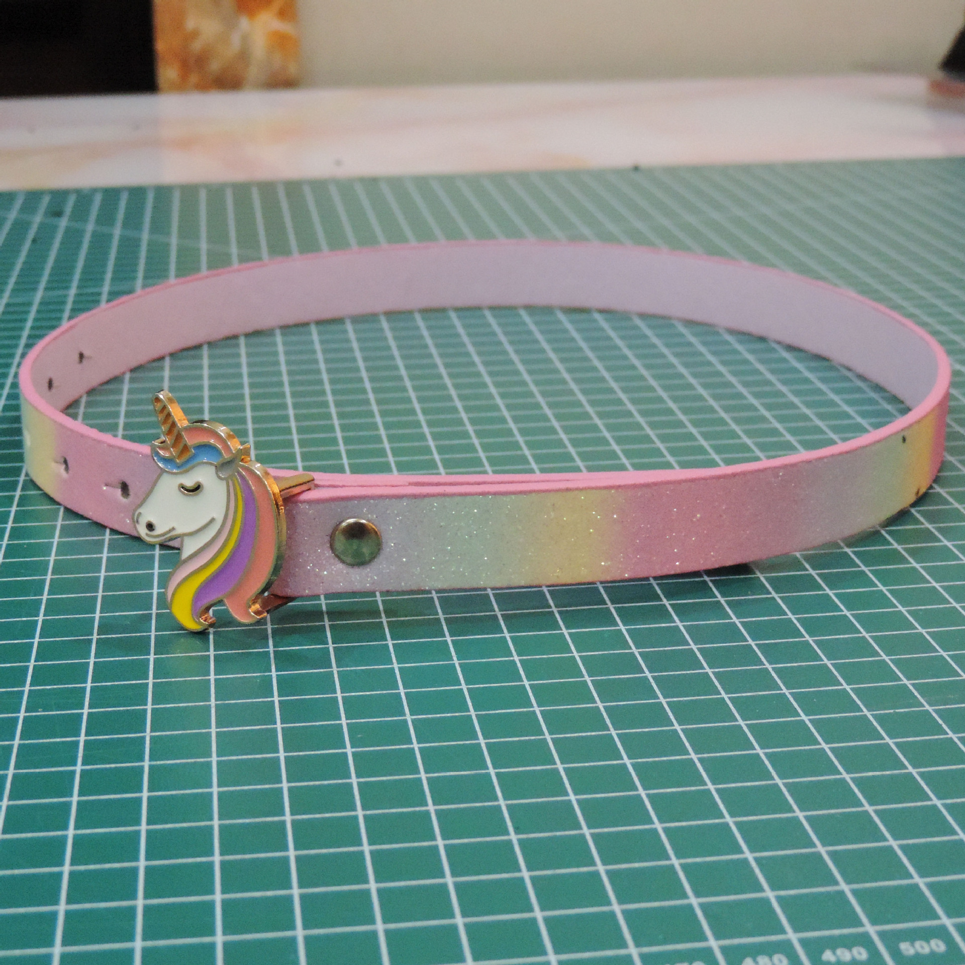 어린이를위한 작은 말 버클 글리터 레인보우 PU 벨트 동물 버클 어린이 패션 벨트 다목적 글리터 PU 벨트스토어 가기