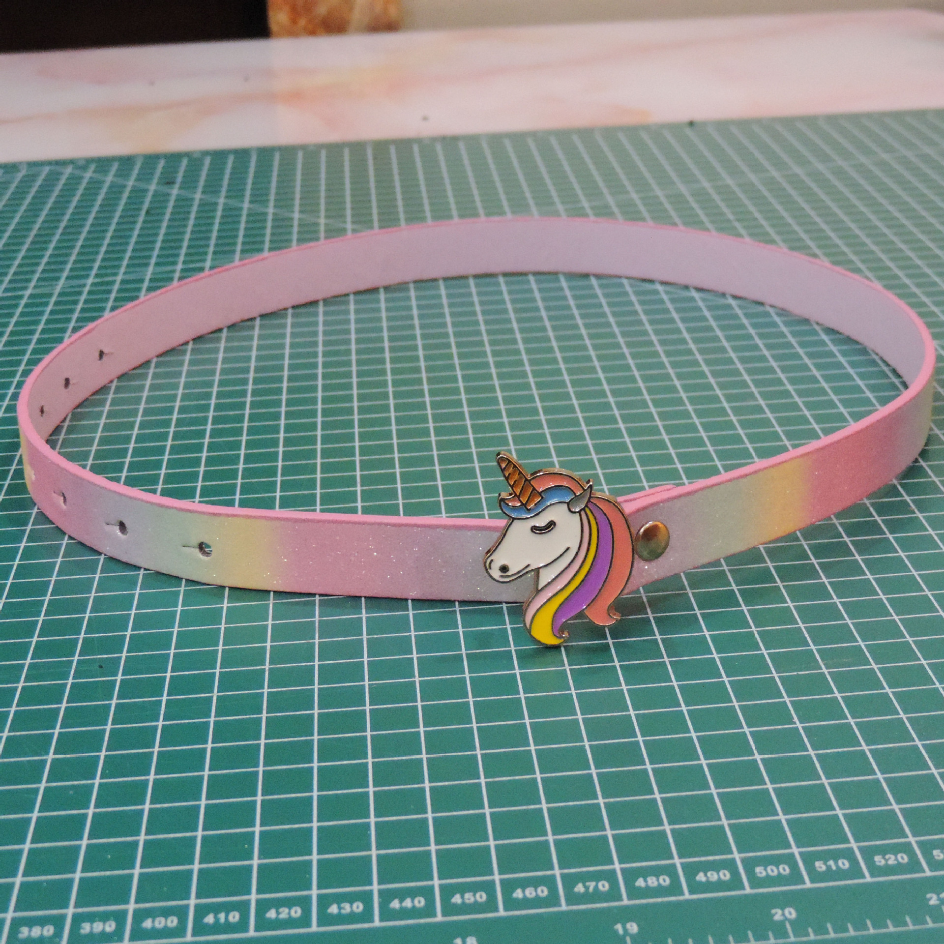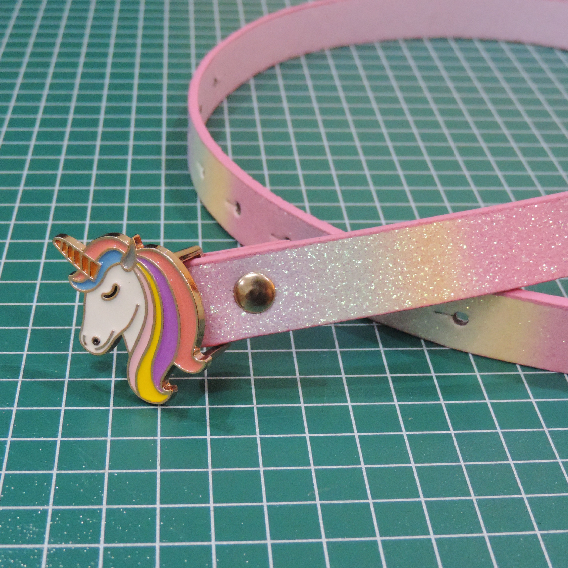 어린이를위한 작은 말 버클 글리터 레인보우 PU 벨트 동물 버클 어린이 패션 벨트 다목적 글리터 PU 벨트