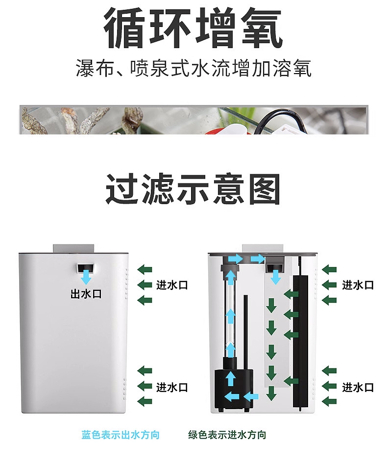 F-PRO 수조 폭포 필터 수족관 자동 정수 순환 산소화 수조 필터 산소 발생기 일체형 기계