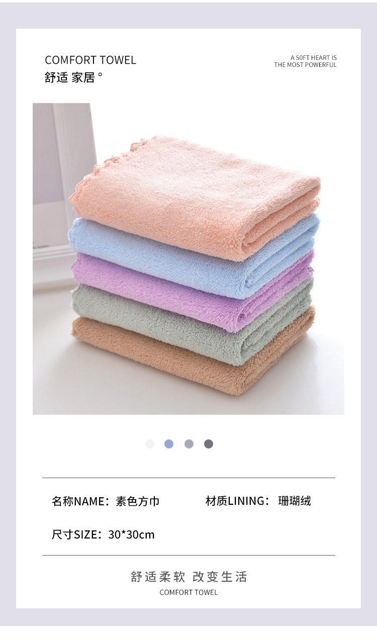 일반 산호 양털 사각형 수건 공장 도매 부드러운 흡수성 유치원 작은 수건 집 아이들 수건 헝겊을 닦아냅니다