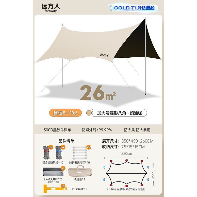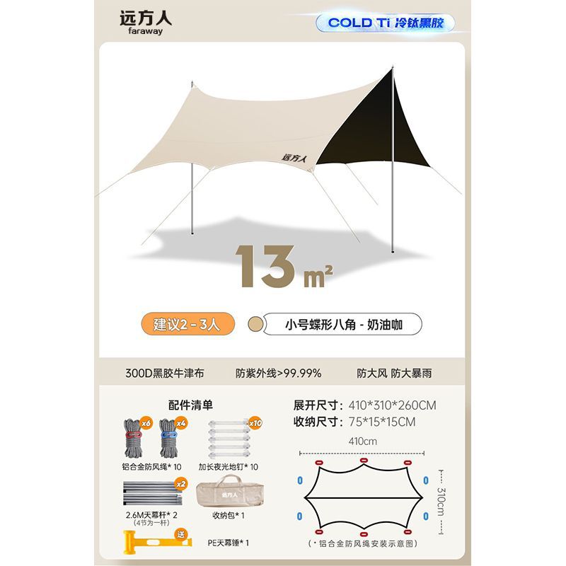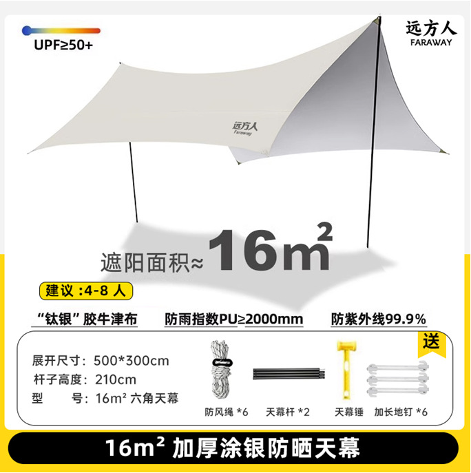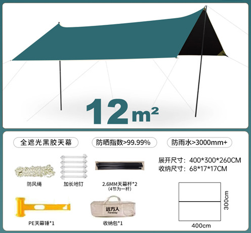 캐노피 야외 텐트 휴대용 캠핑 방풍 방수 선스크린 파빌리온 코트야드 실버 코팅 블랙 접착제 팔각형 차양스토어 가기