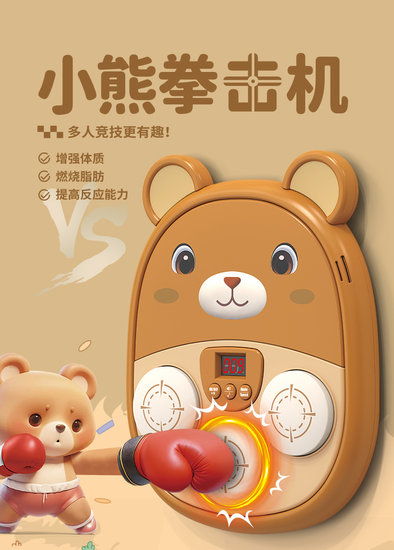 권투 기계 권투 기계 음악 어린이 곰 동물 전자 권투 홈 스마트 계산 흡입 벽 대상 장난감스토어 가기