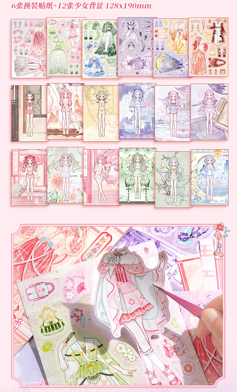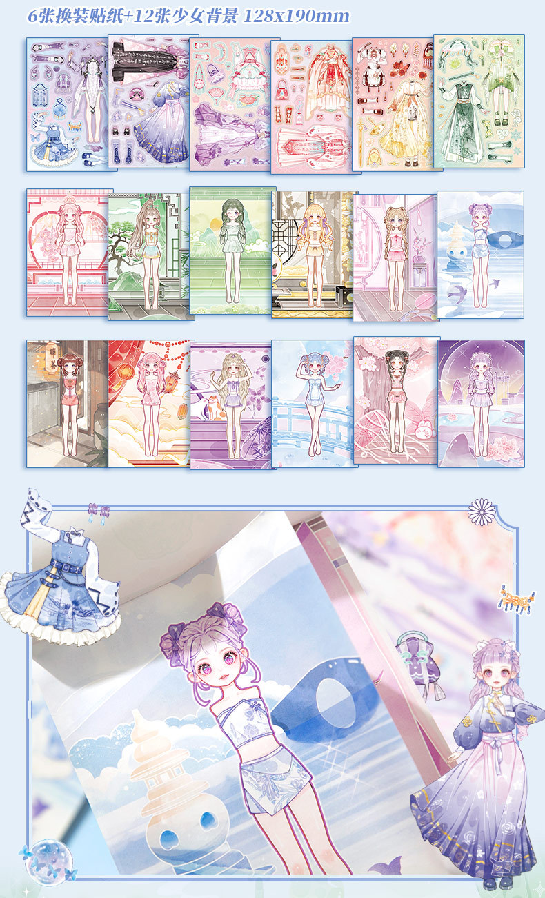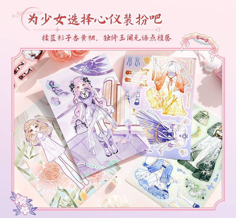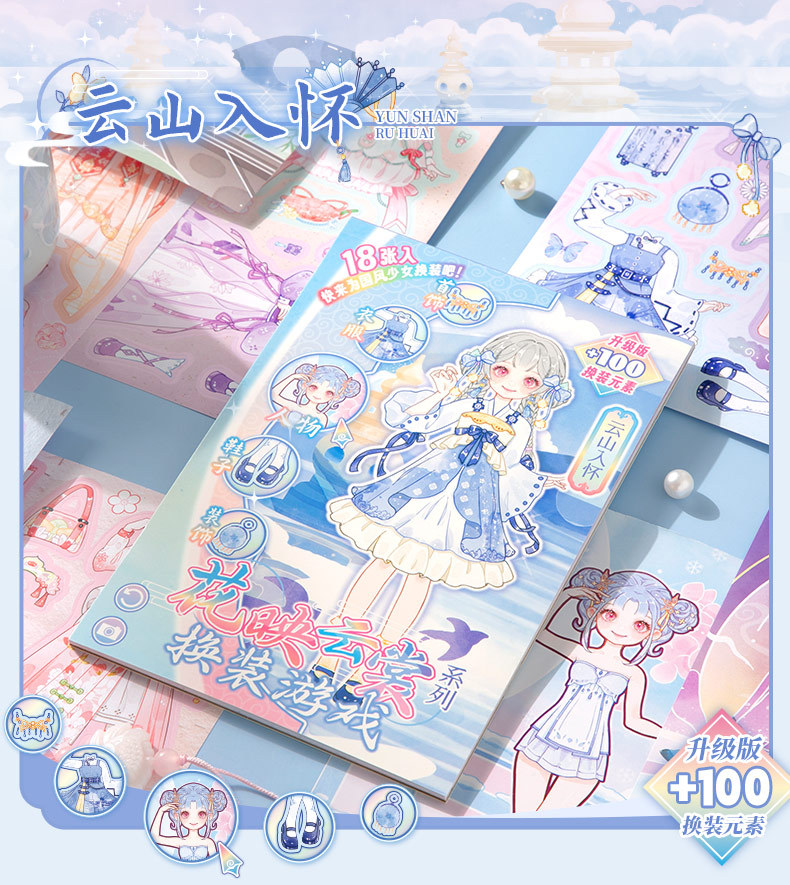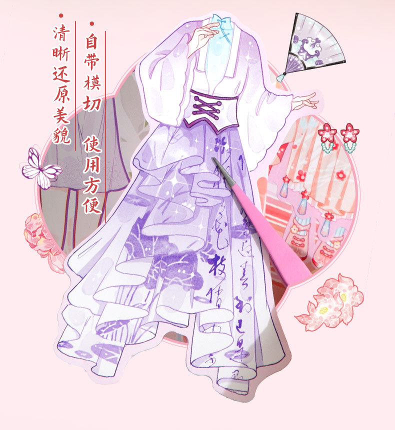 코어 모 고대 원피스 소녀 원피스 게임 스티커 이 꽃 반사 구름 원피스 공주 메이크업 변경 스티커 어린이 작은 소녀 스티커