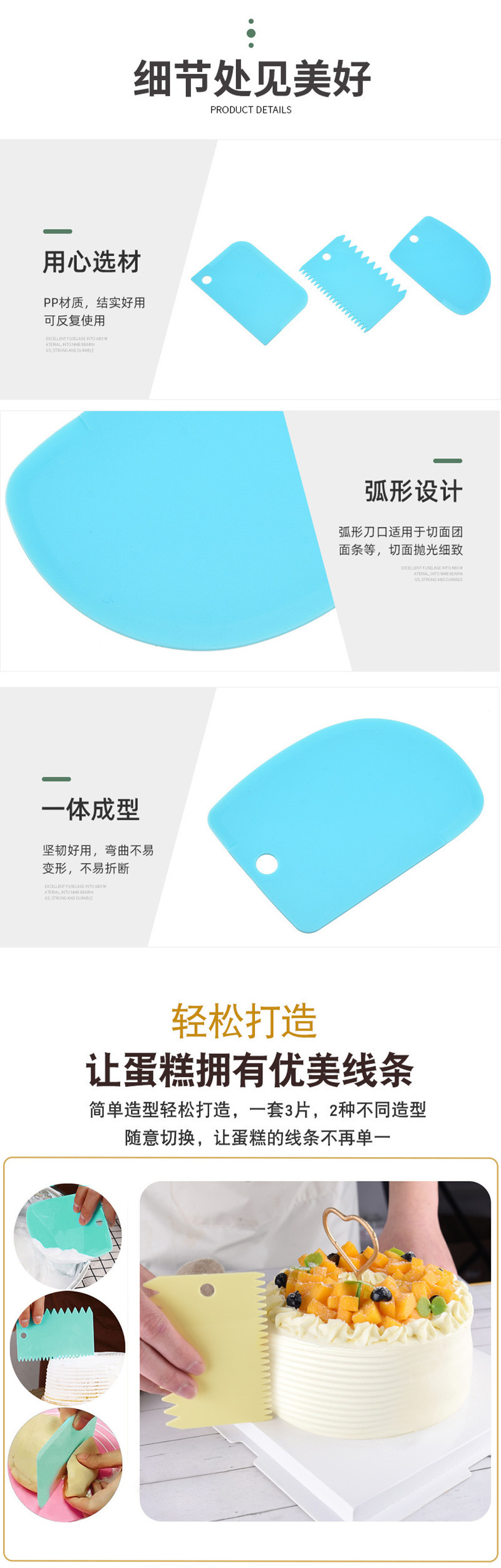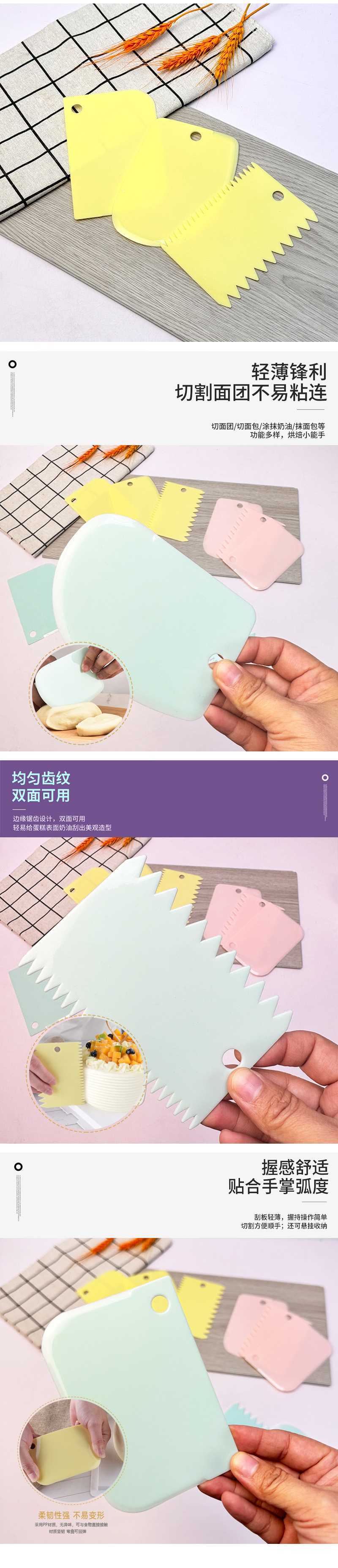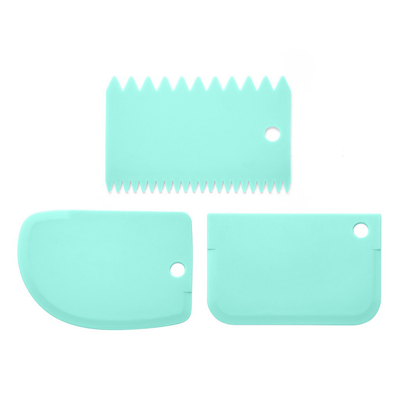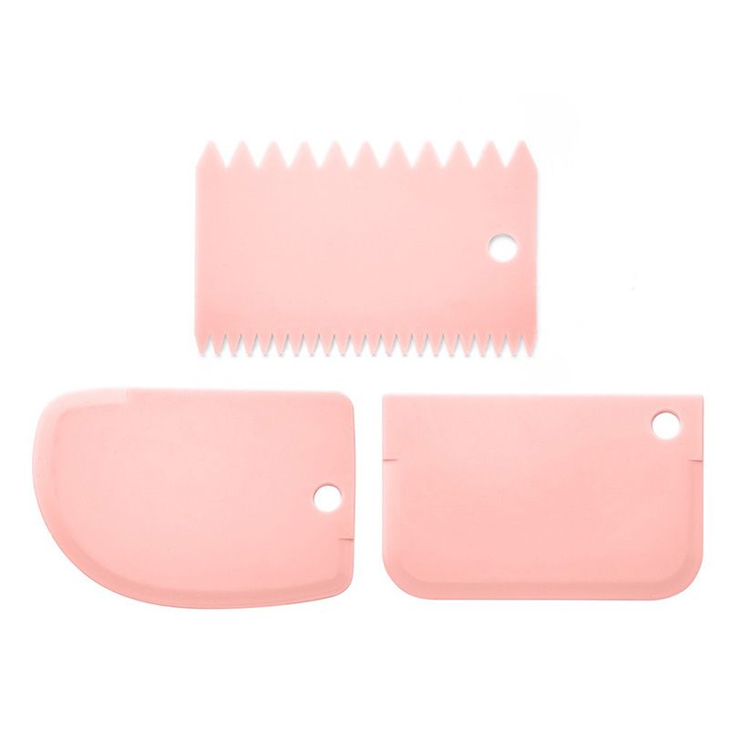 크림 스크레이퍼 3피스 케이크 DIY 베이킹 도구 반원형 톱니 플라스틱 스크레이퍼 주방 반죽 절단 칼