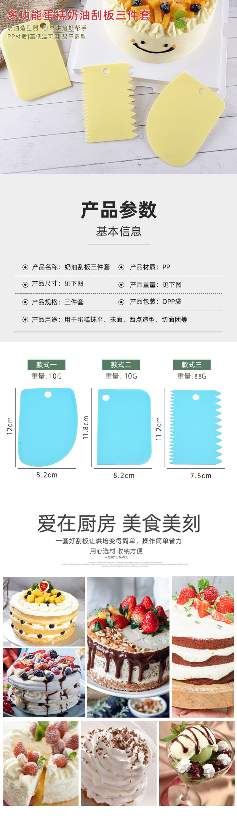 크림 스크레이퍼 3피스 케이크 DIY 베이킹 도구 반원형 톱니 플라스틱 스크레이퍼 주방 반죽 절단 칼스토어 가기