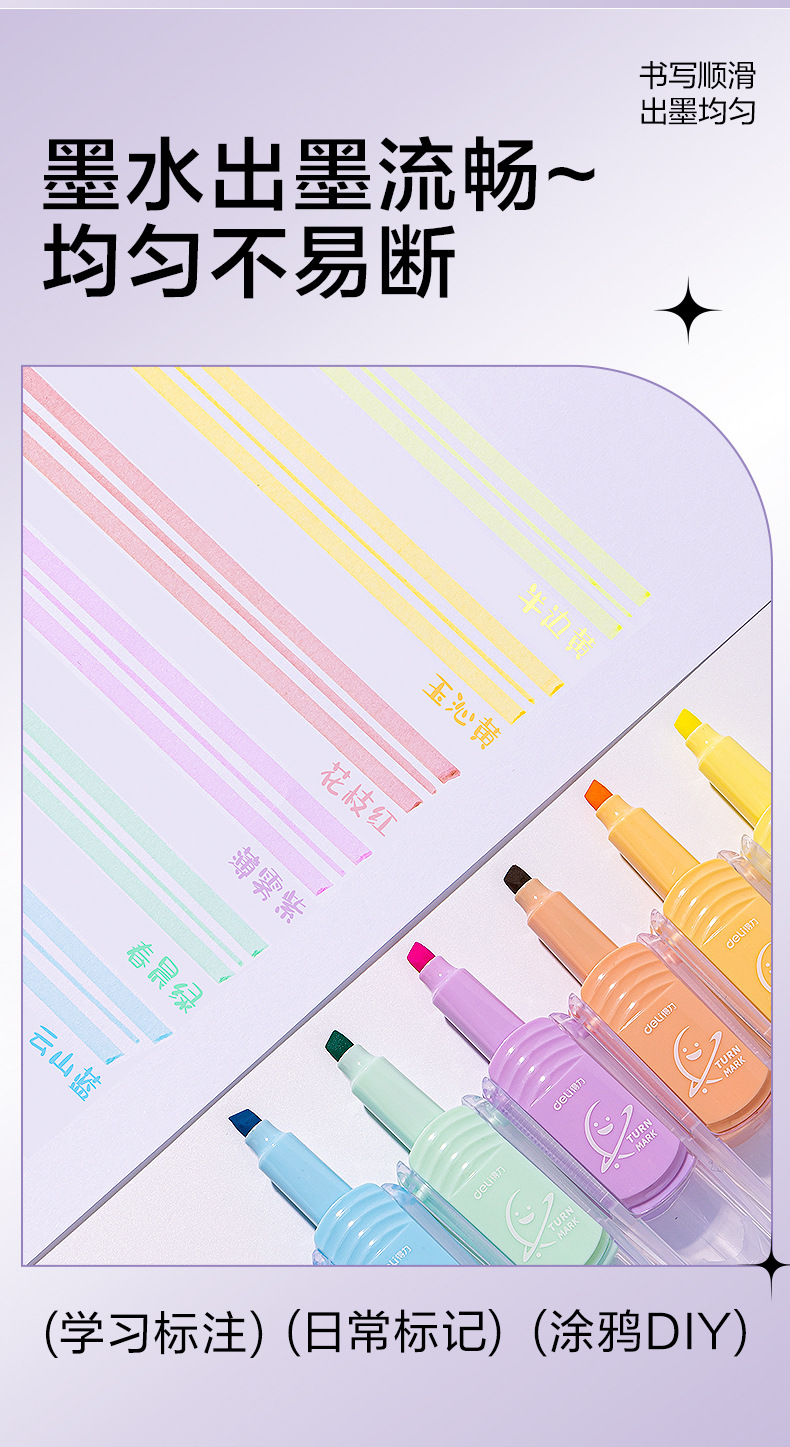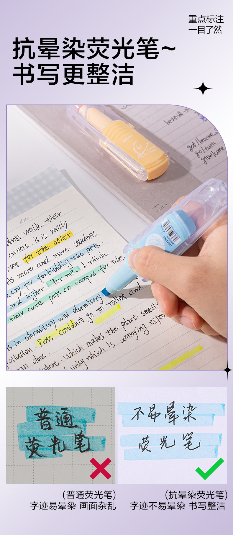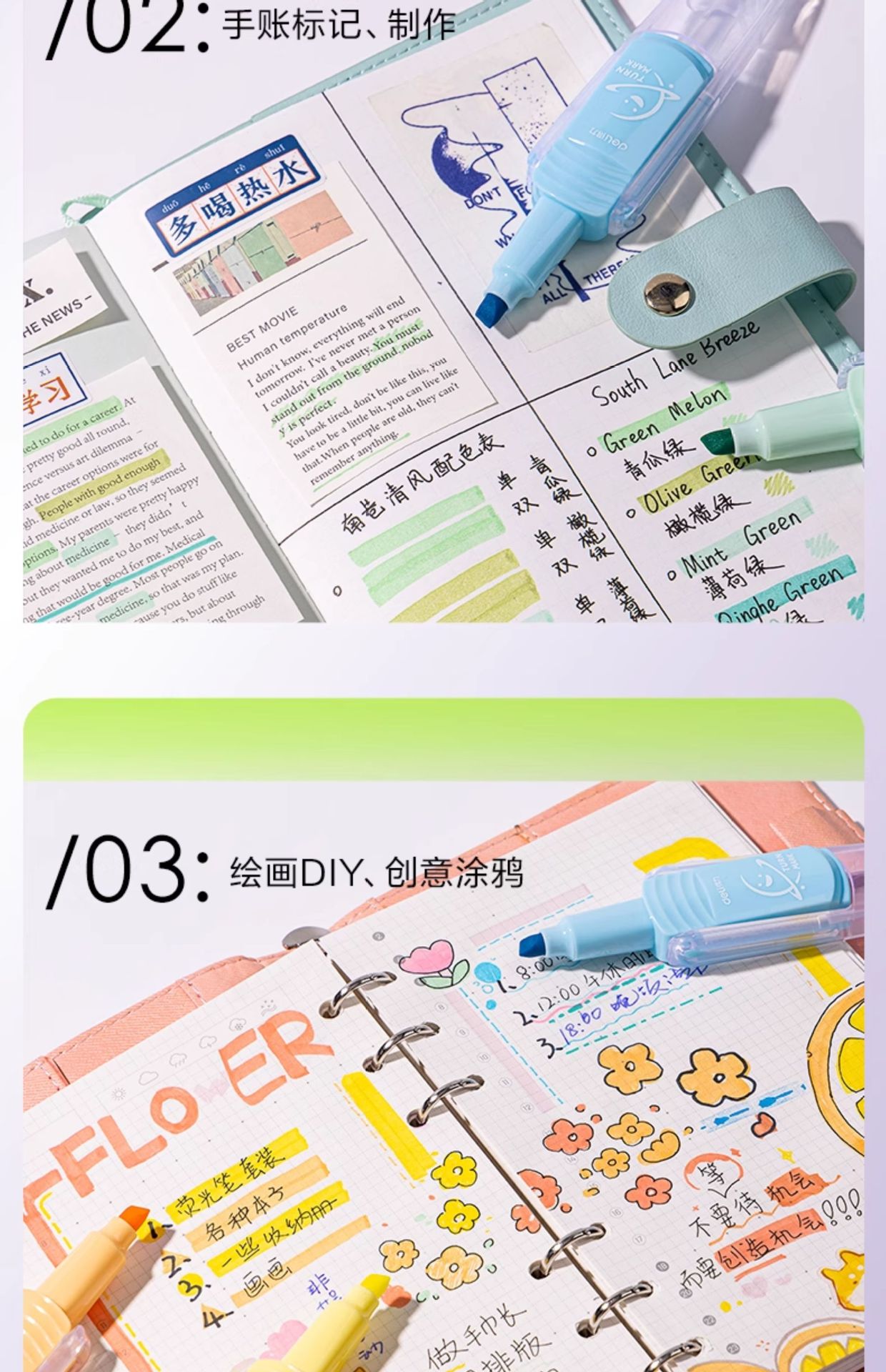 학생들을 위한 델리 대용량 형광펜, 얼룩 방지, 양면 마커, 컬러 마킹 키 노트 특집