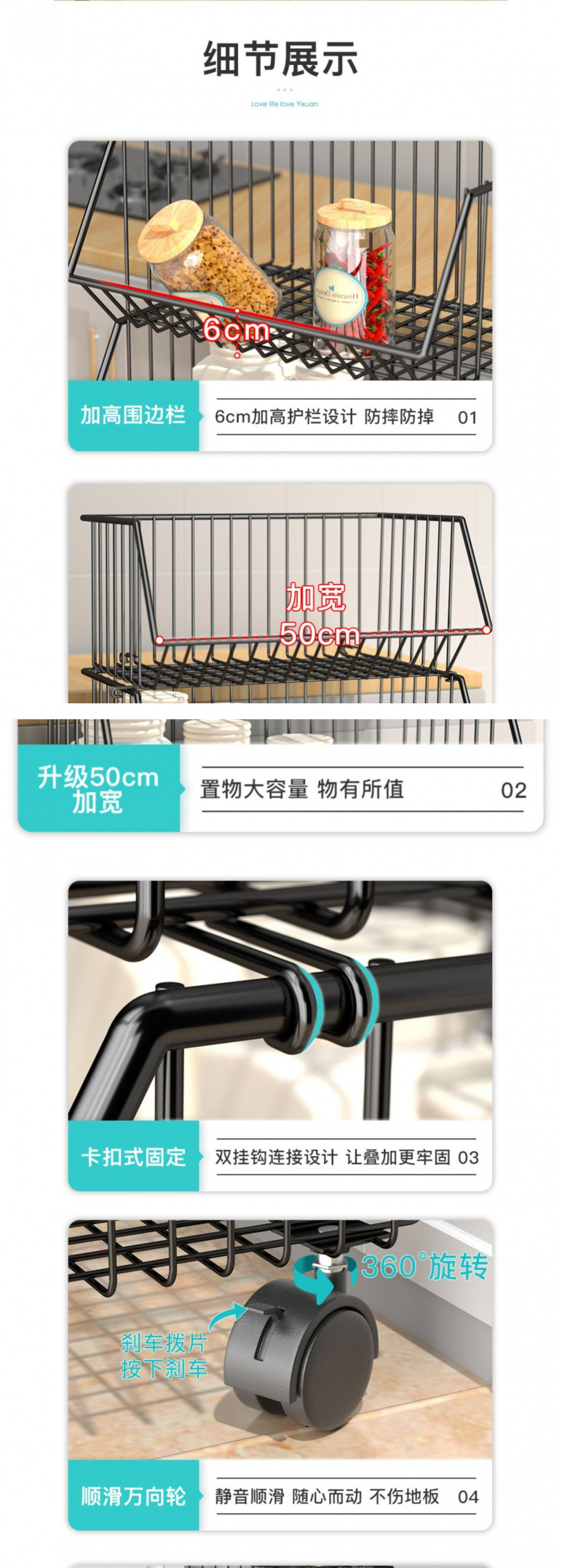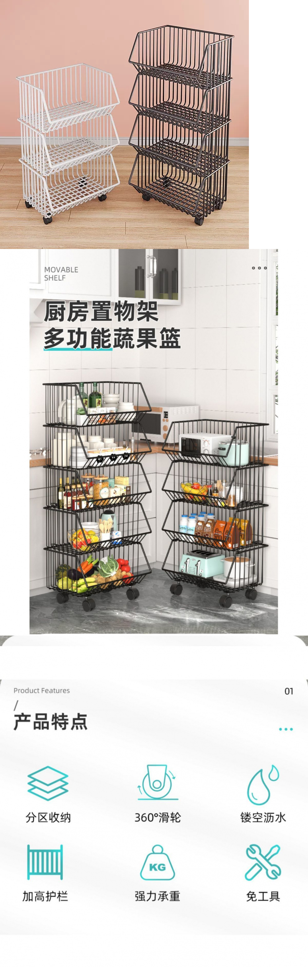 주방 보관 랙 다층 바닥 서 가정용 이동식 트롤리 과일 및 야채 바구니 제로