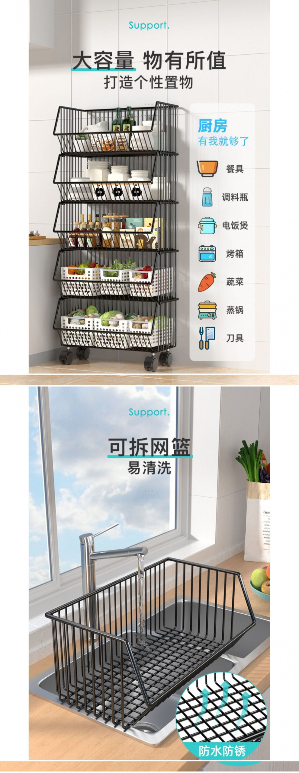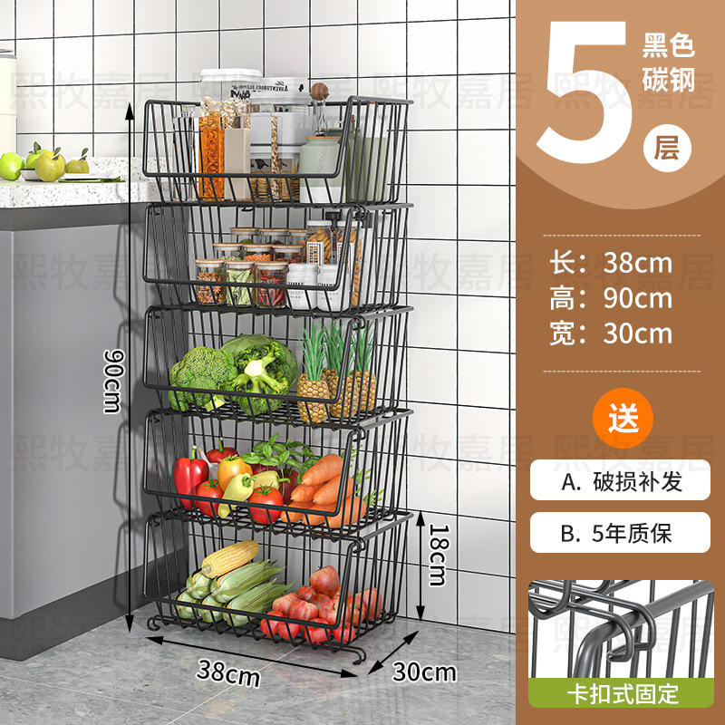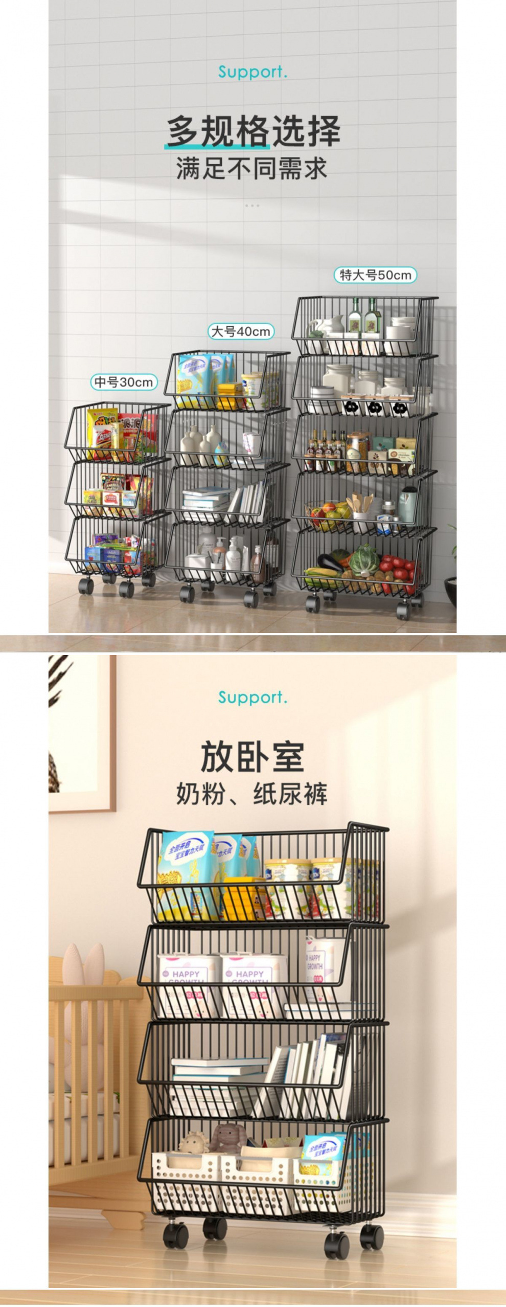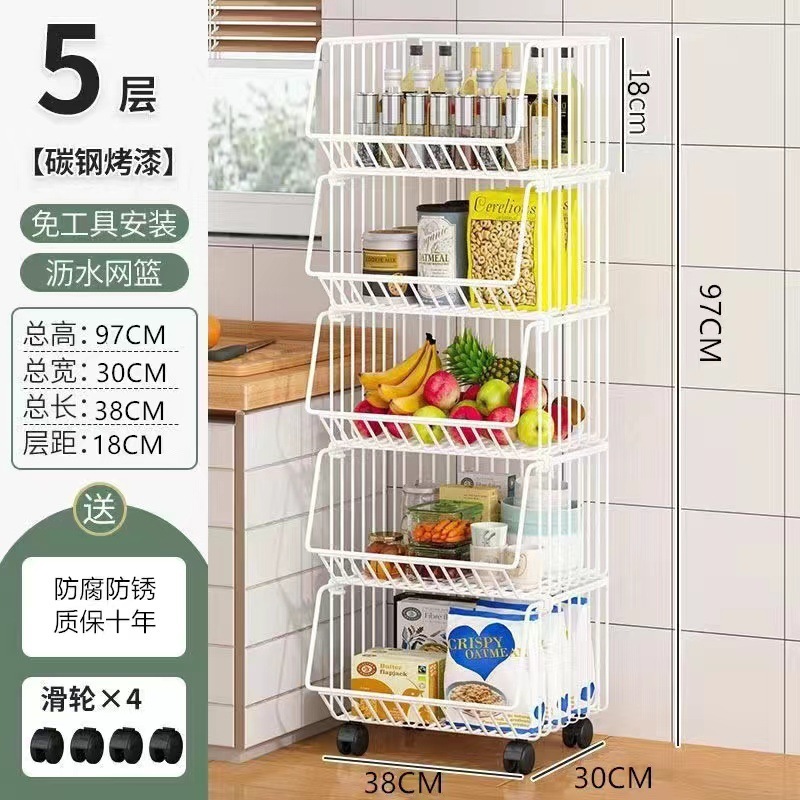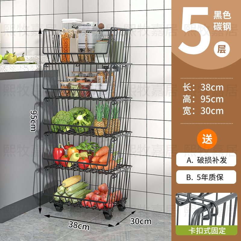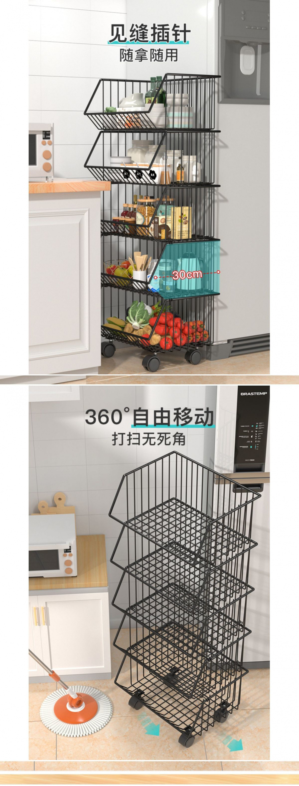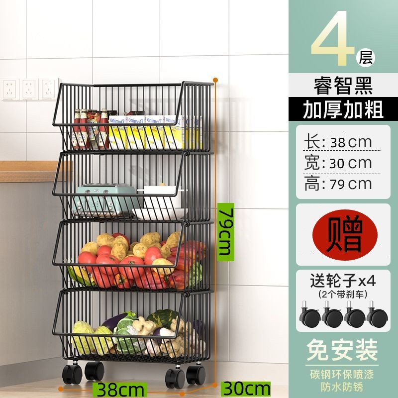 주방 보관 랙 다층 바닥 서 가정용 이동식 트롤리 과일 및 야채 바구니 제로스토어 가기