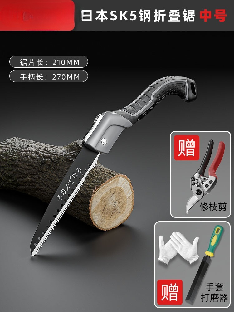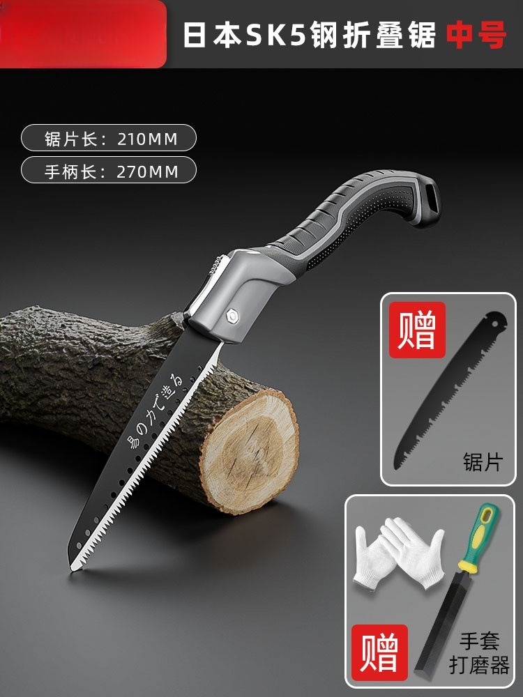 • [톱날 210mm] 일본 HRC66-SK5 강철 접이식 톱(샌더 + 장갑 포함)