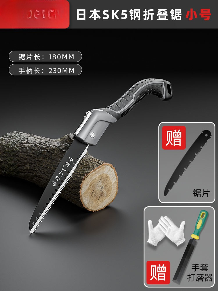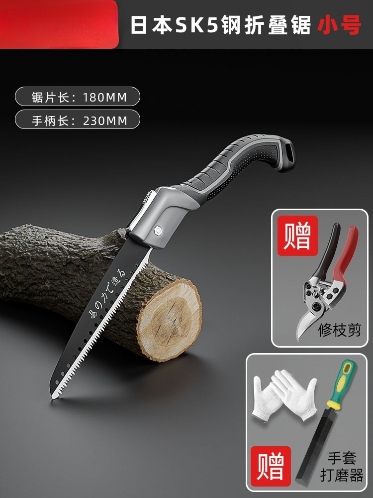 • [톱날 180mm] 일본 HRC66-SK5 강철 접이식 톱(샌더 + 장갑 포함)