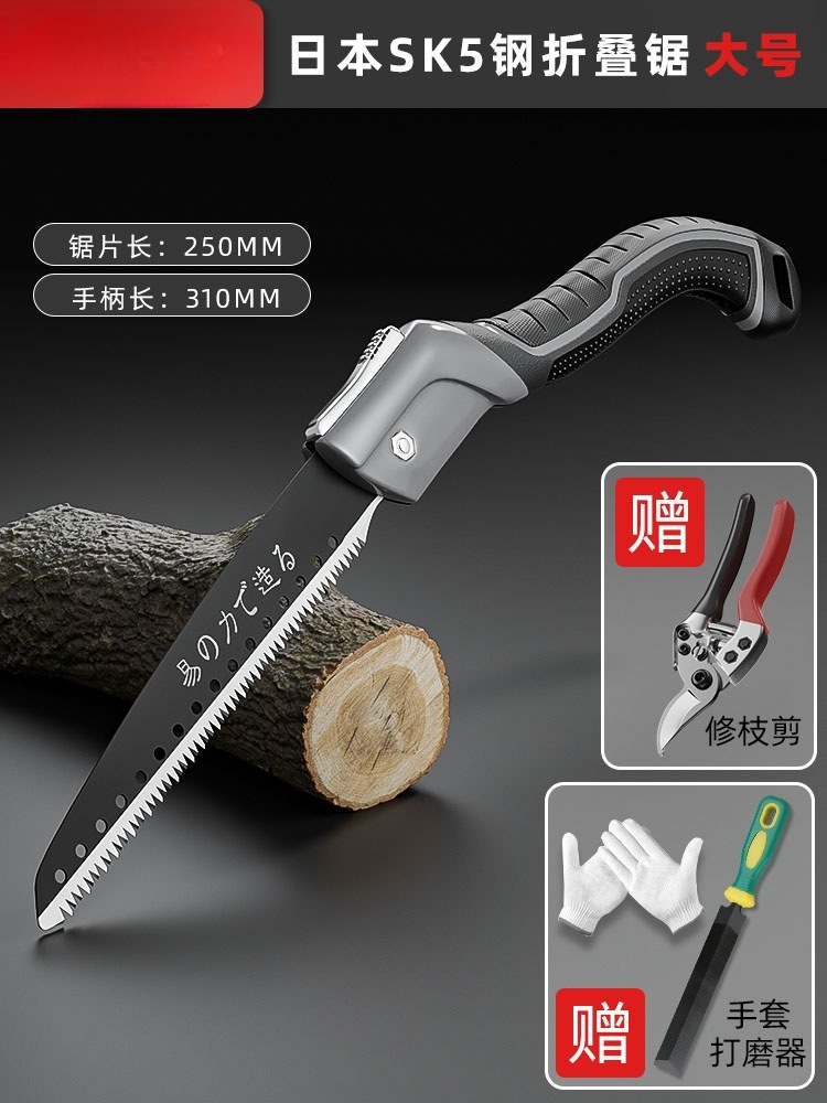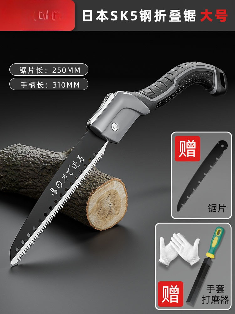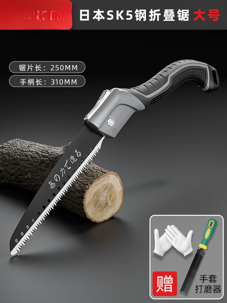 • [톱날 260mm] 일본 HRC66-SK5 강철 접이식 톱(샌더 + 장갑 포함)