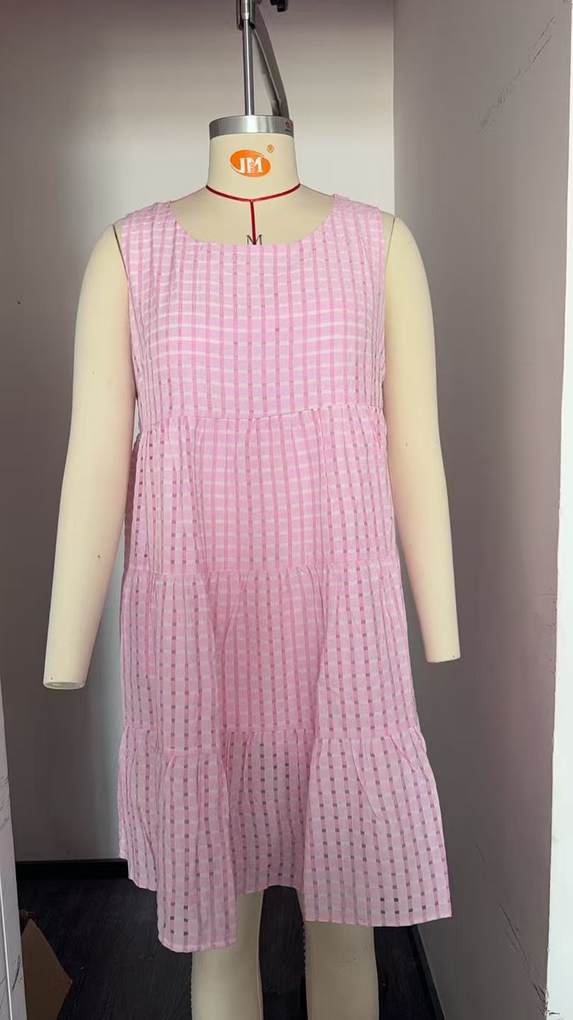 2025 아마존 여름 새로운 국경 유럽과 미국 여성의 느슨한 캐주얼 우아한 민소매 격자 무늬 원피스