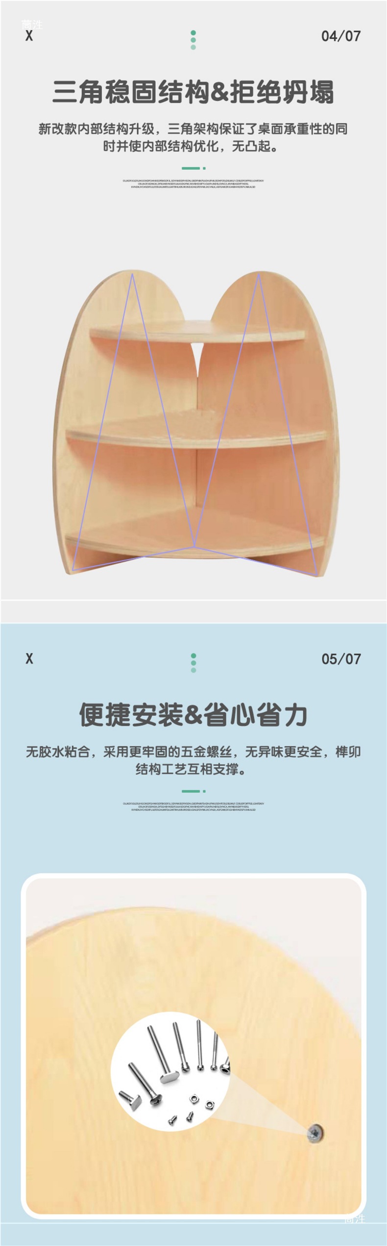 • 뒷면 패널이 없는 2층 몬테소리 캐비닛