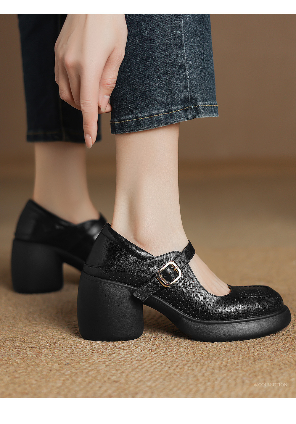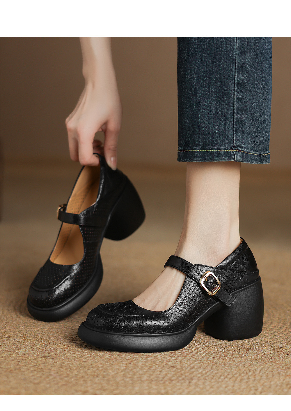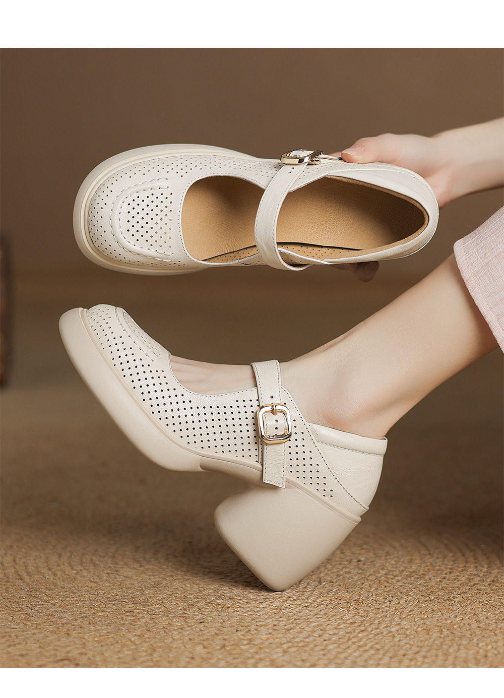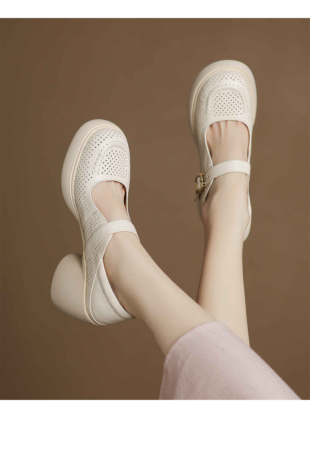 중공 플랫폼 샌들 여성용 2025 새로운 천공 구멍 신발 두꺼운 힐 Mary Jane 신발 버클 스트랩 하이힐 신발스토어 가기