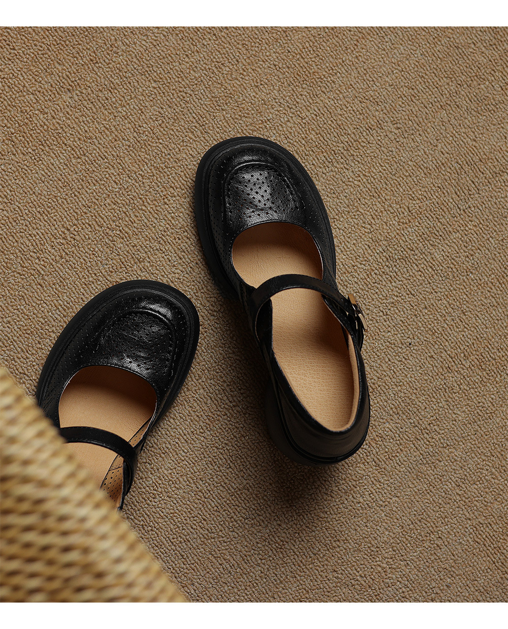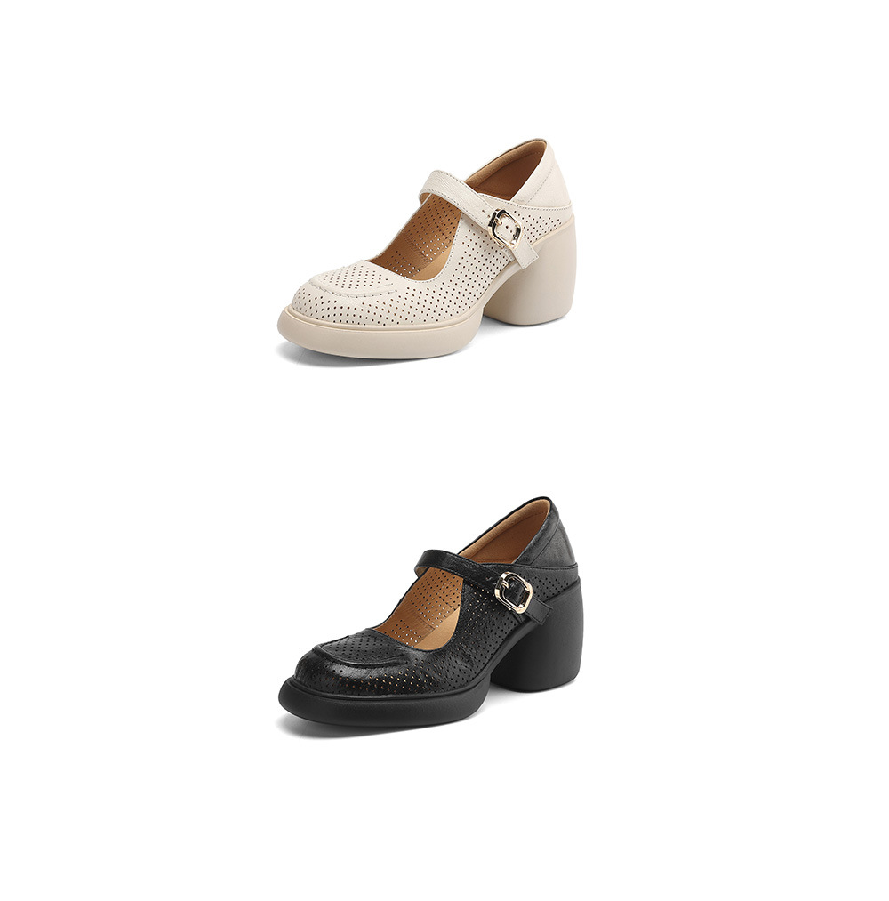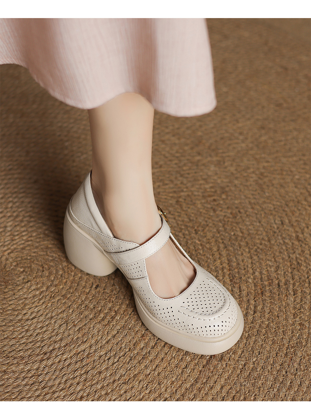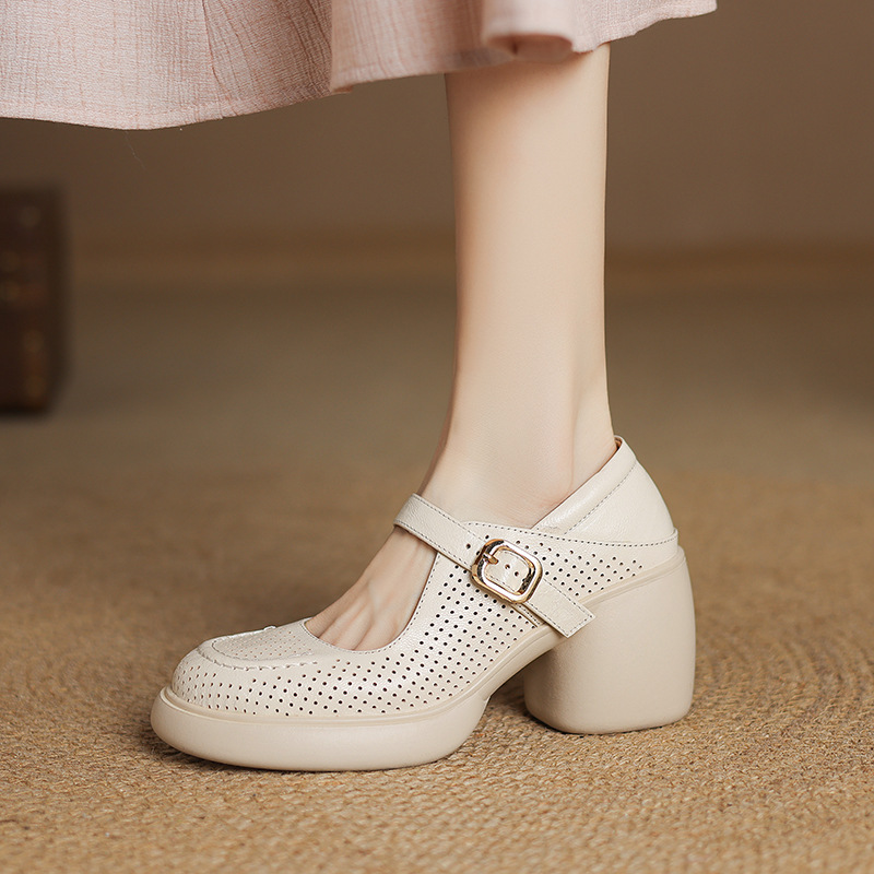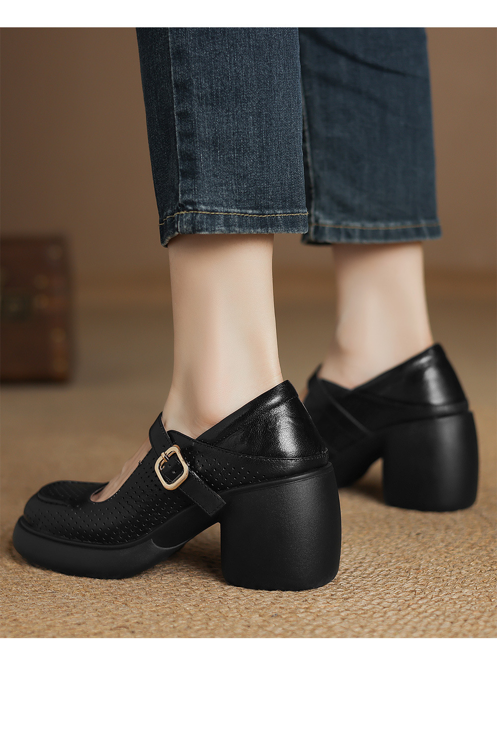 중공 플랫폼 샌들 여성용 2025 새로운 천공 구멍 신발 두꺼운 힐 Mary Jane 신발 버클 스트랩 하이힐 신발스토어 가기