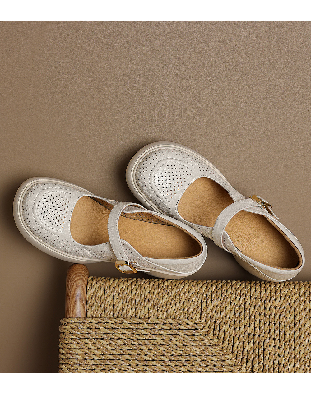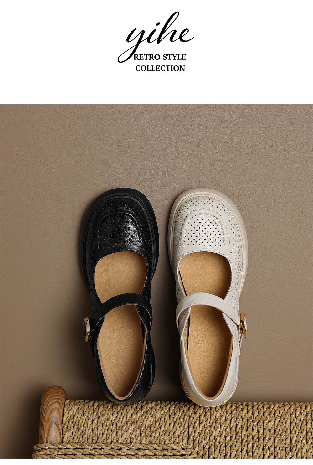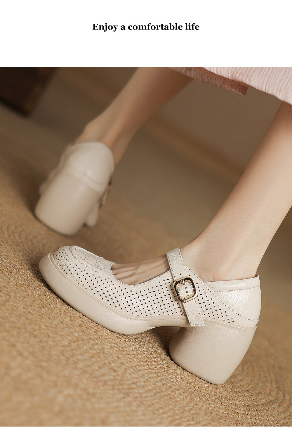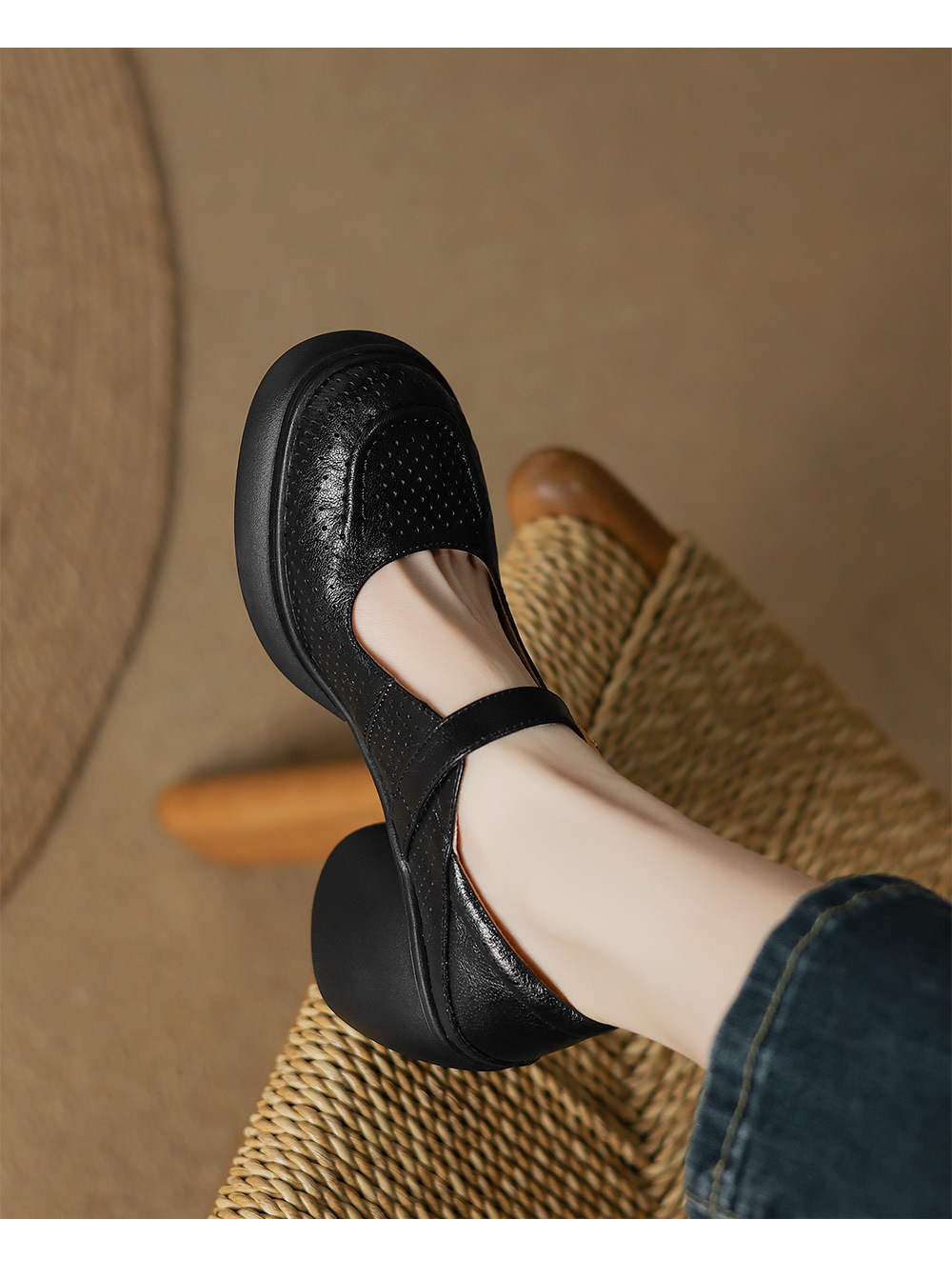 중공 플랫폼 샌들 여성용 2025 새로운 천공 구멍 신발 두꺼운 힐 Mary Jane 신발 버클 스트랩 하이힐 신발스토어 가기