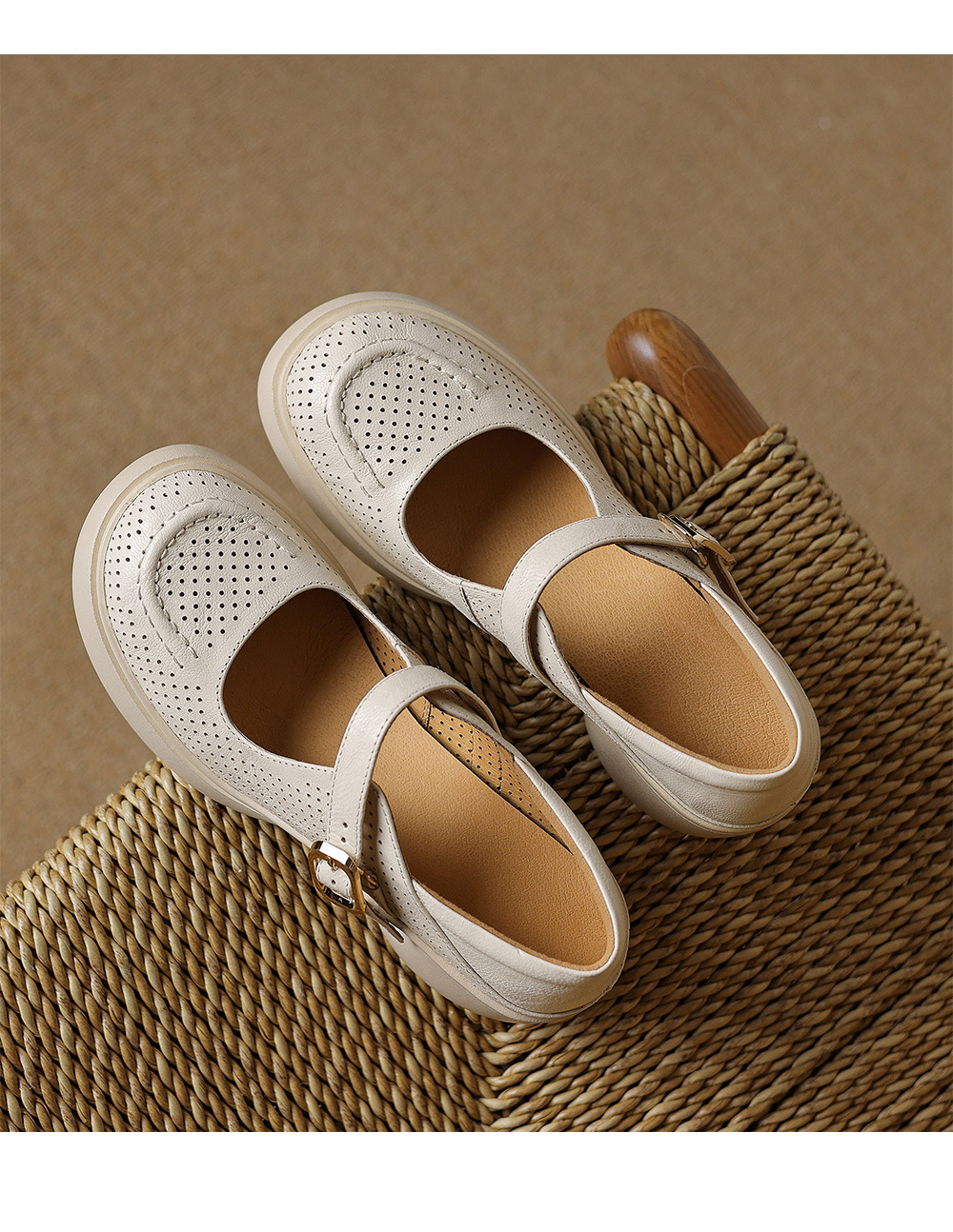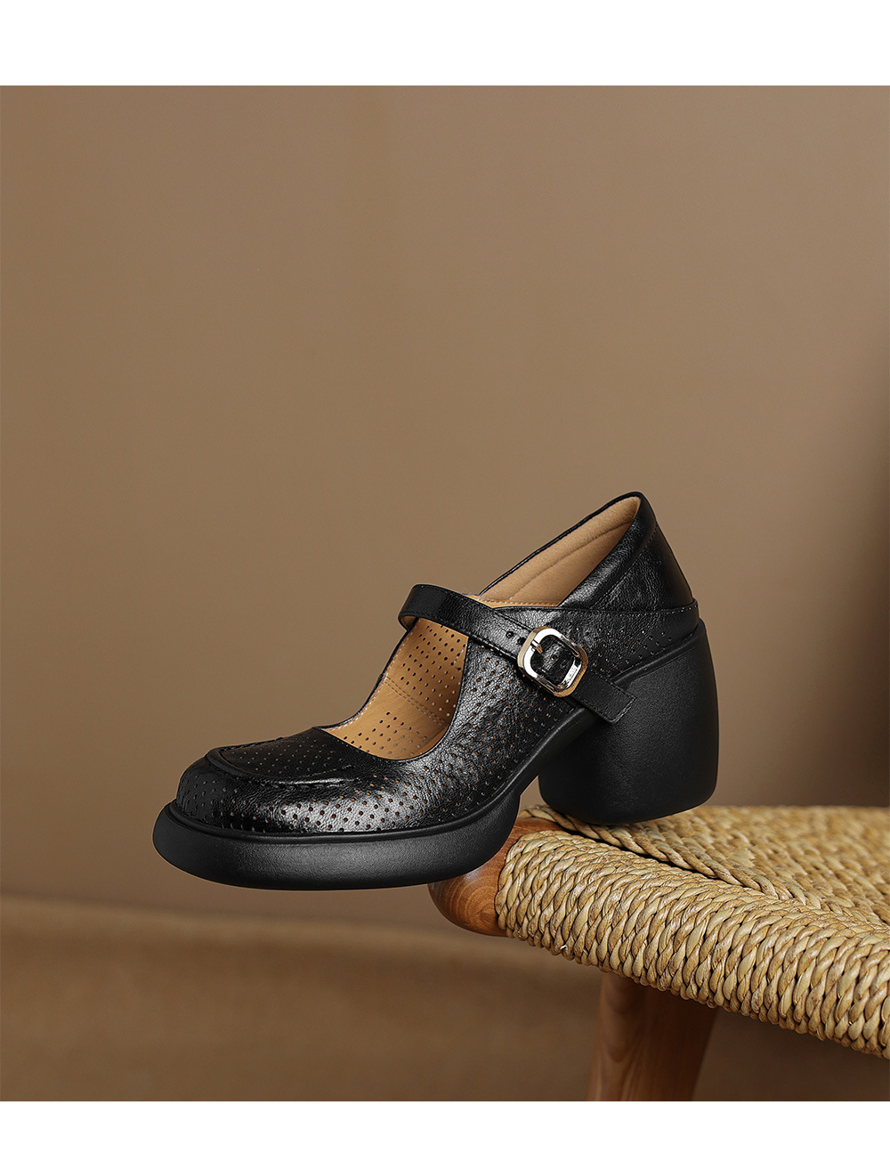 중공 플랫폼 샌들 여성용 2025 새로운 천공 구멍 신발 두꺼운 힐 Mary Jane 신발 버클 스트랩 하이힐 신발