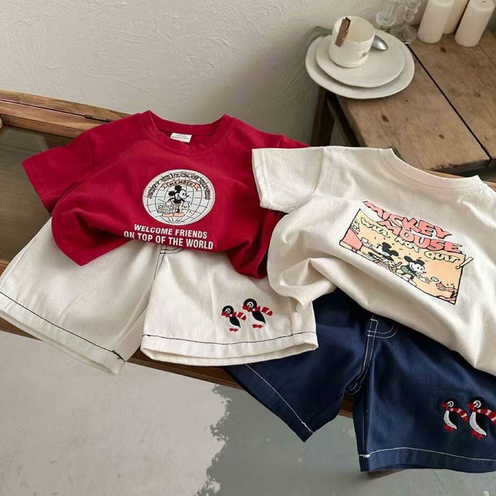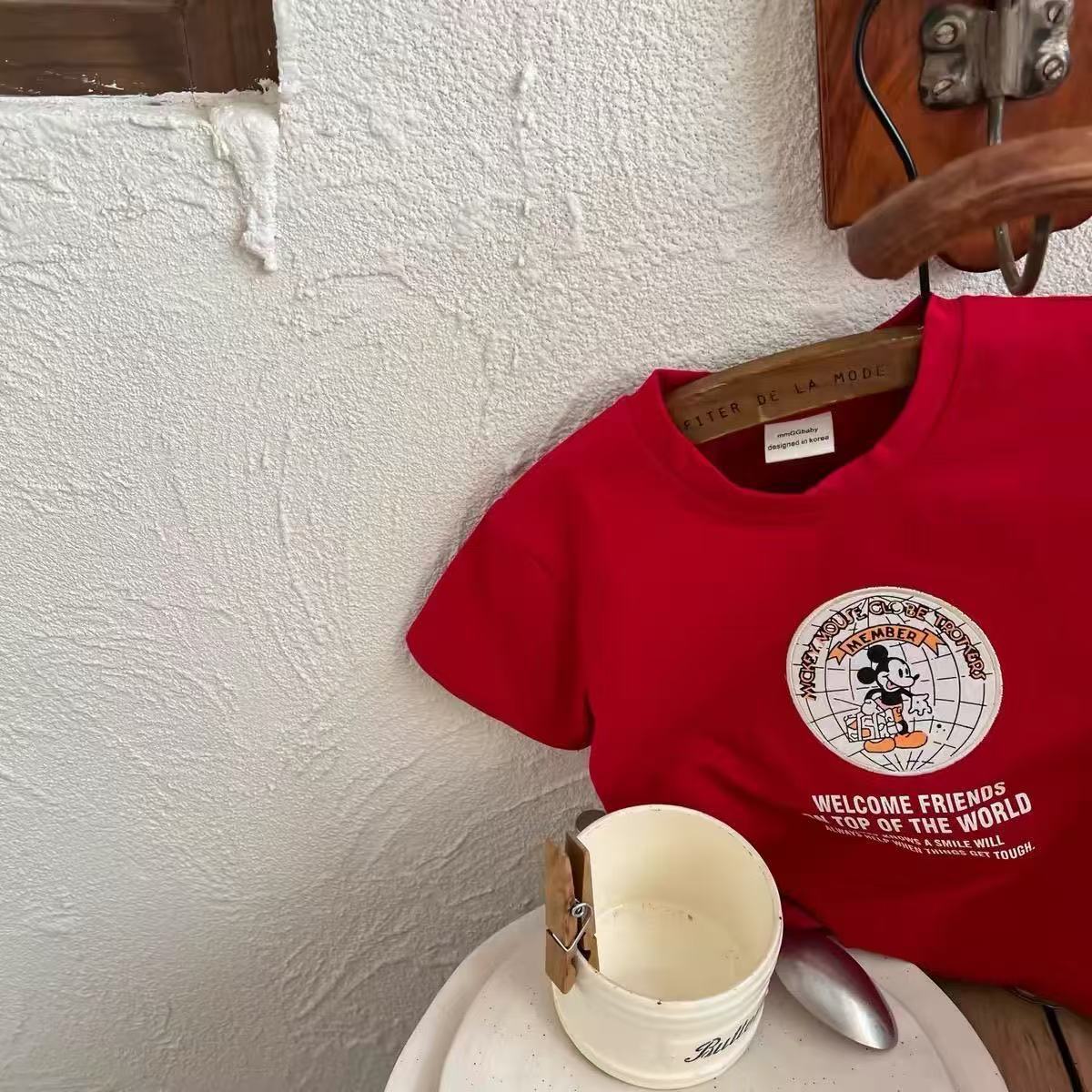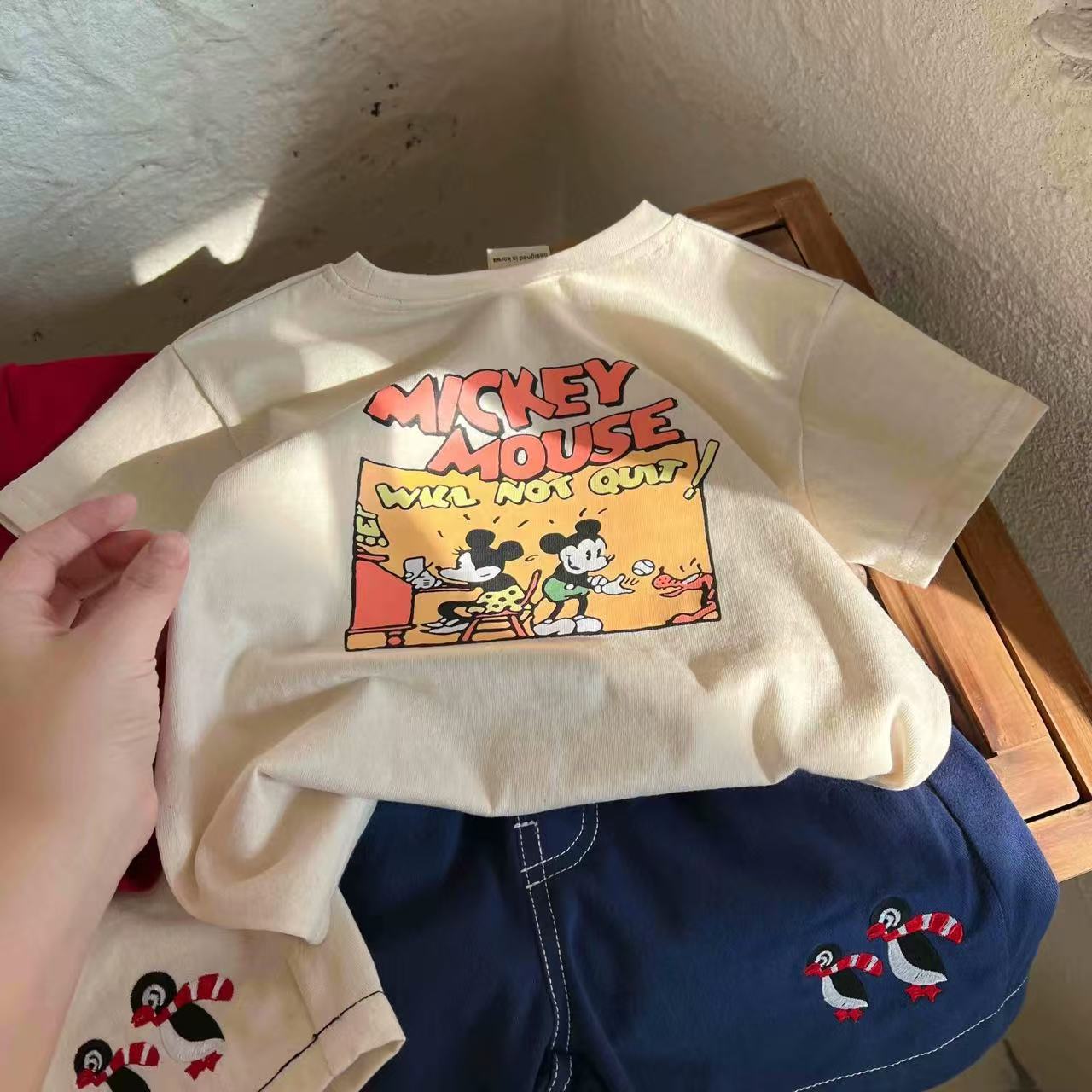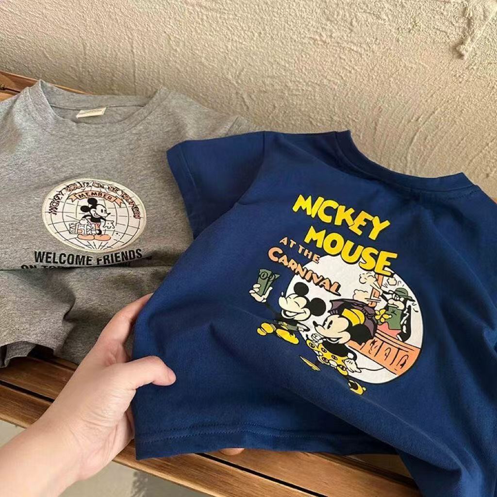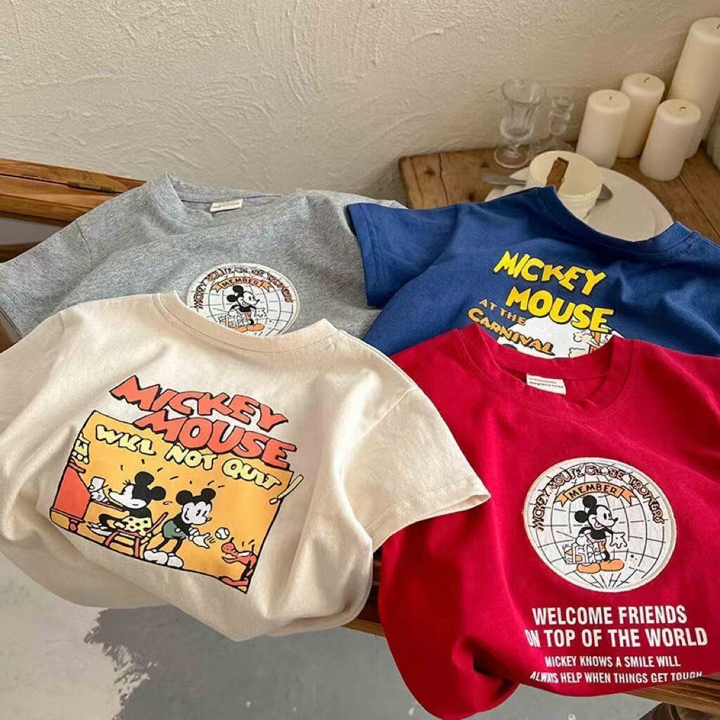 여름 면 어린이 티셔츠 아기의 미키 마우스 만화 인쇄 반소매 셔츠 어린이 미키 크루 넥 탑 트렌디스토어 가기