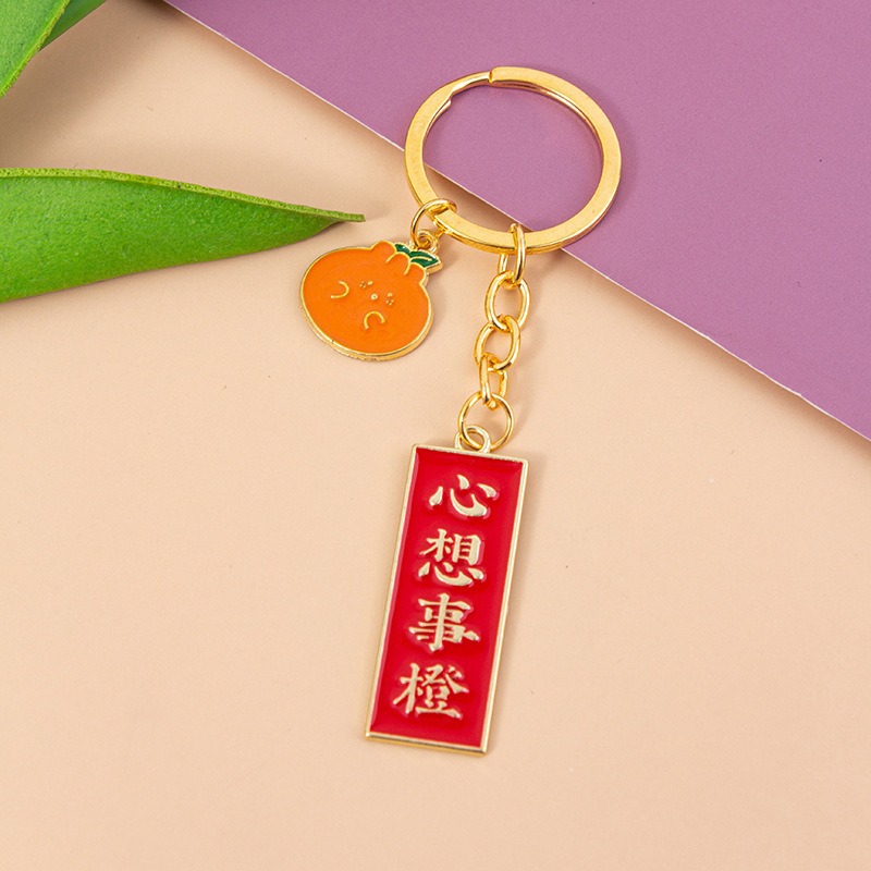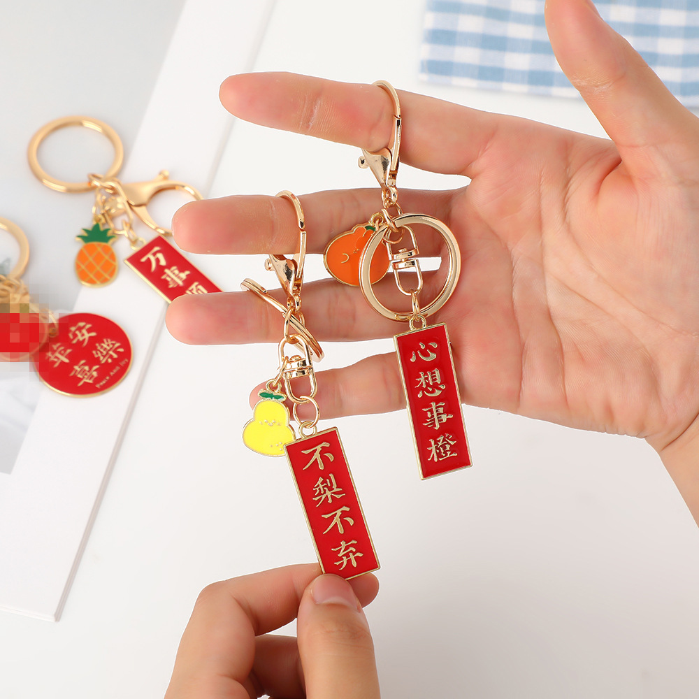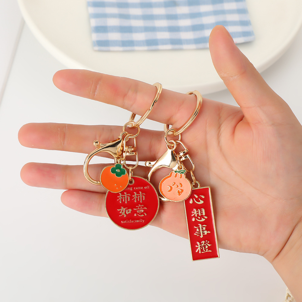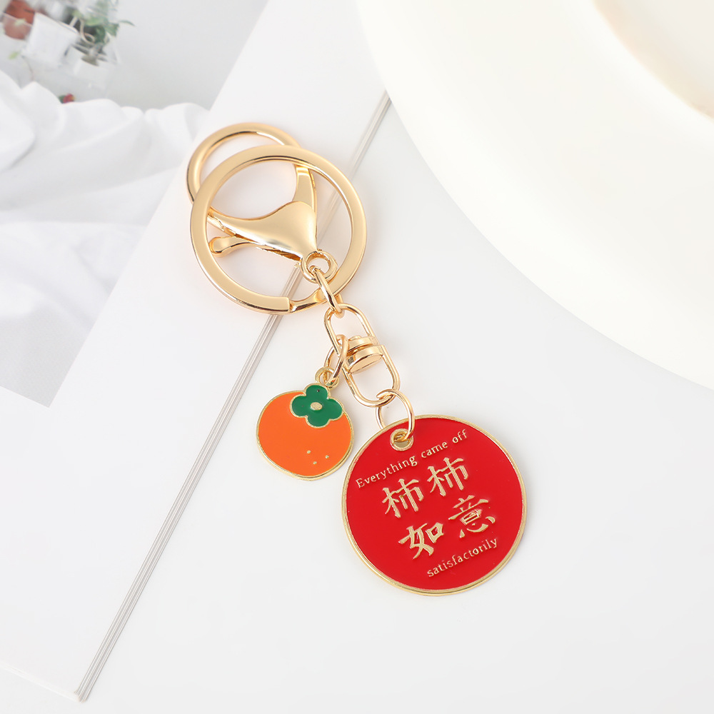 柿柿如意 열쇠고리 창의적인 과일 모양 합금 오일 드립 펜던트 중국풍 영감 축복 문구 가방 장식스토어 가기