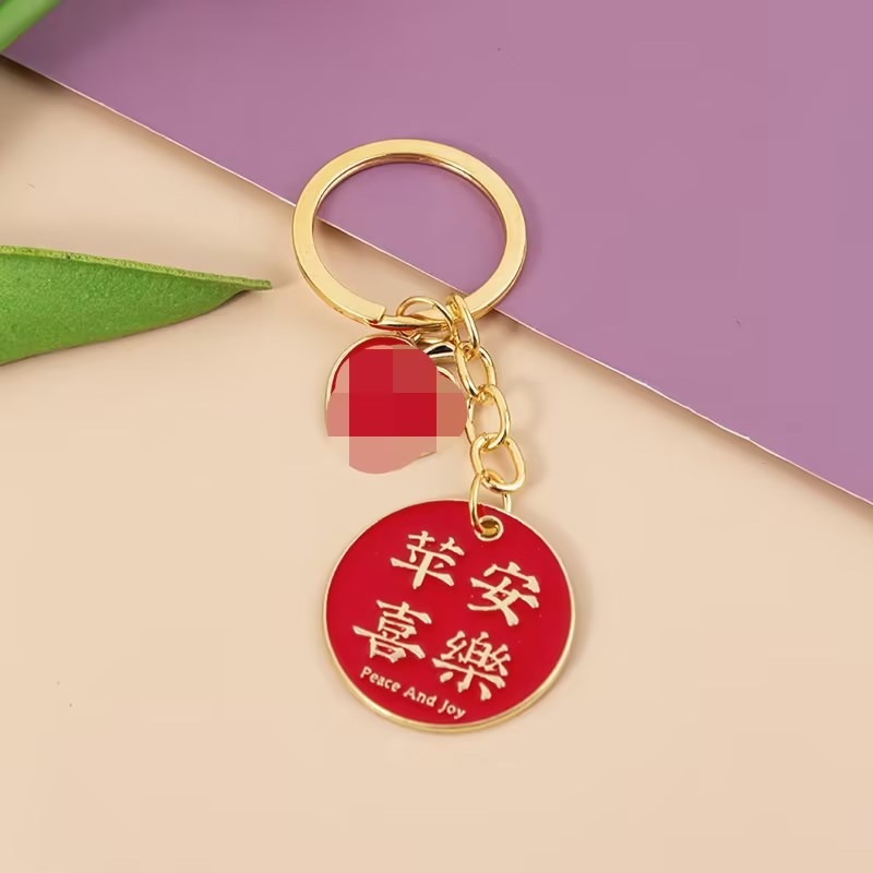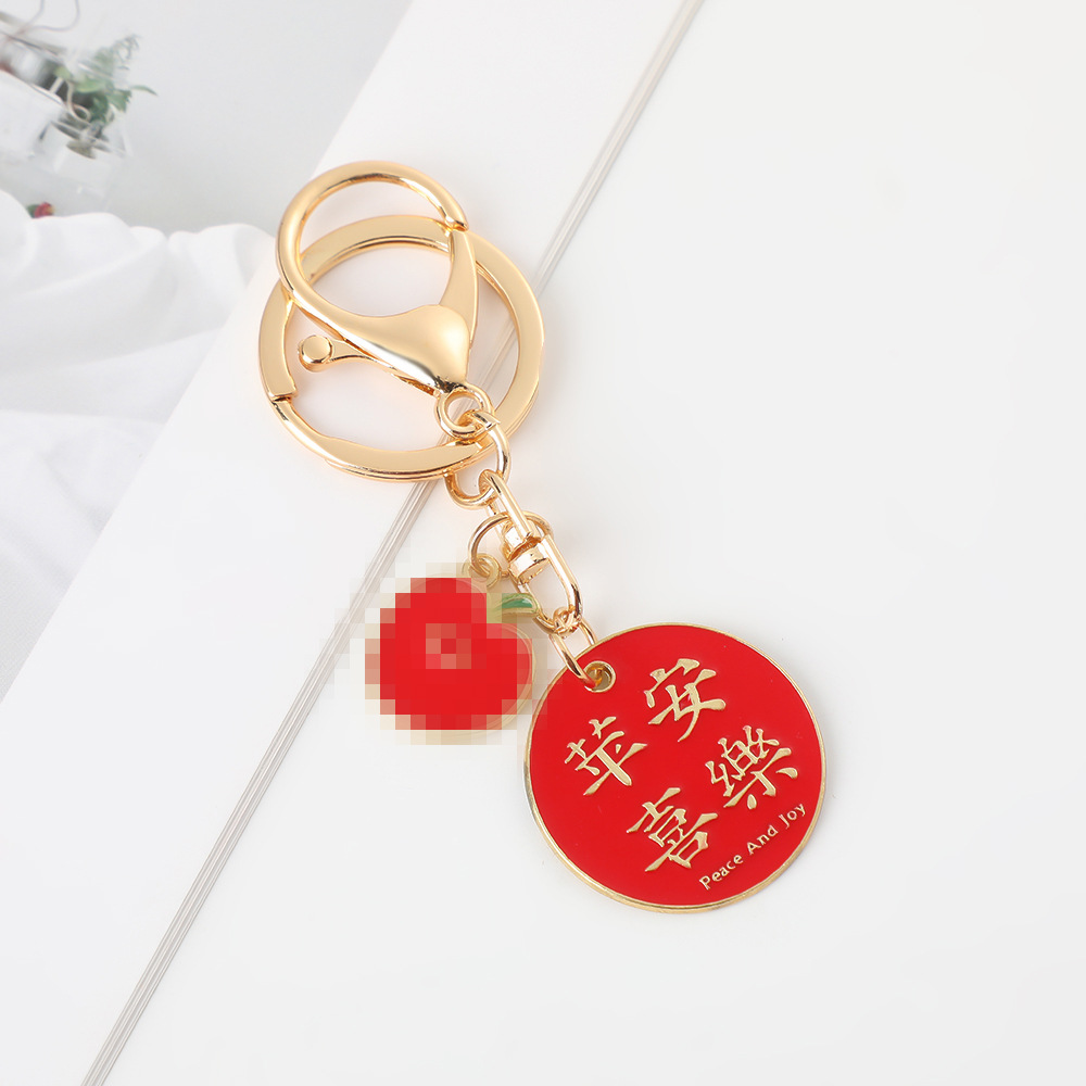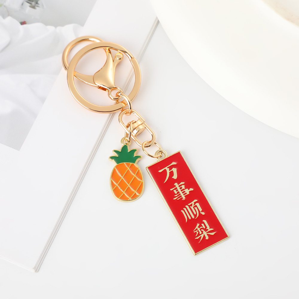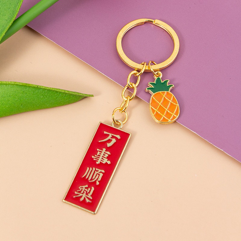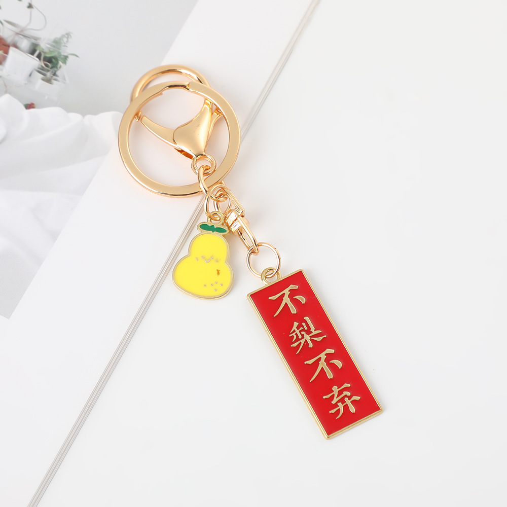 柿柿如意 열쇠고리 창의적인 과일 모양 합금 오일 드립 펜던트 중국풍 영감 축복 문구 가방 장식스토어 가기