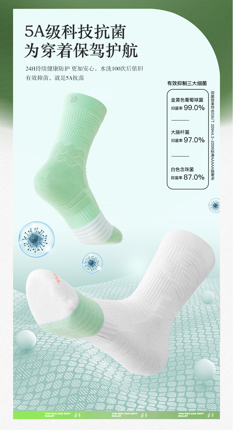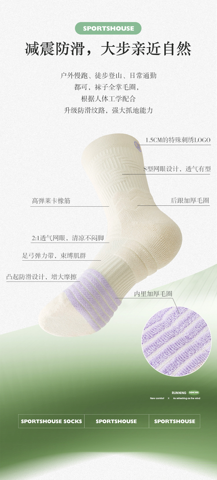 5A 등급 항균 및 탈취 여성용 종아리 중간 하이킹 양말, 통기성 땀 흡수 수건 바닥 스포츠 양말, 미끄럼 방지 쿠셔닝 하이킹 양말
